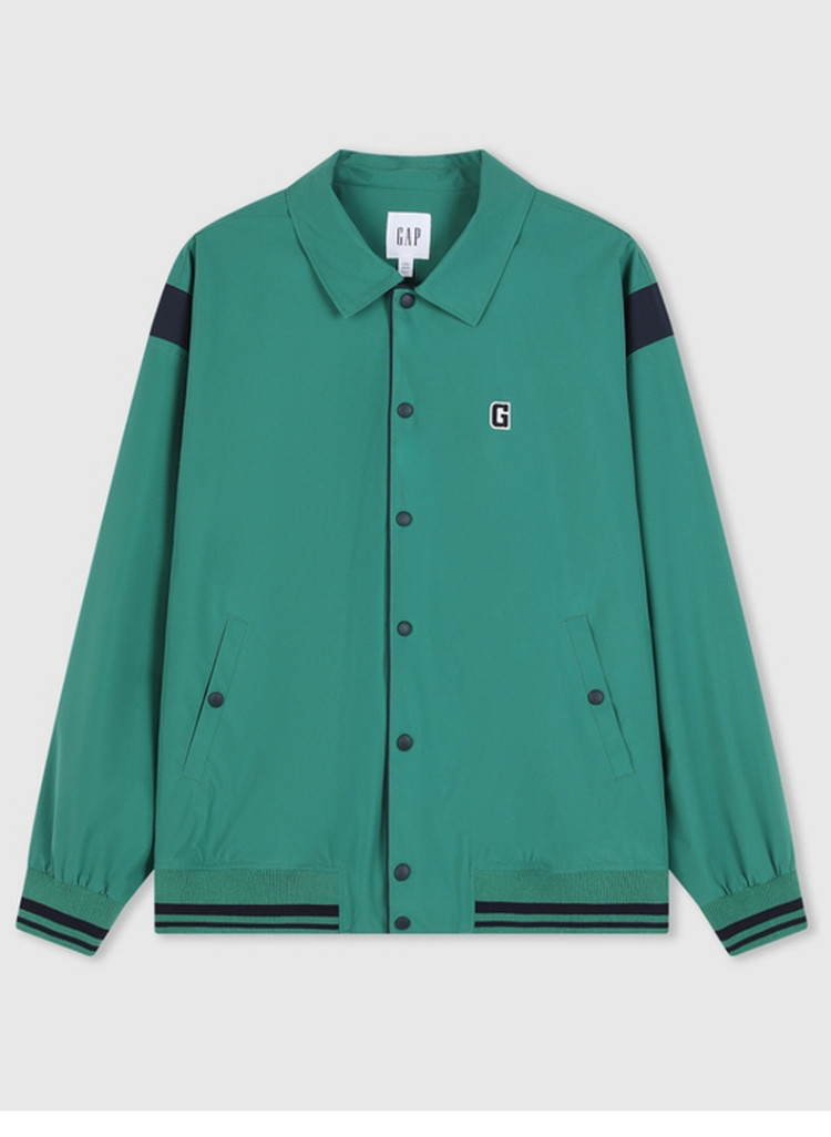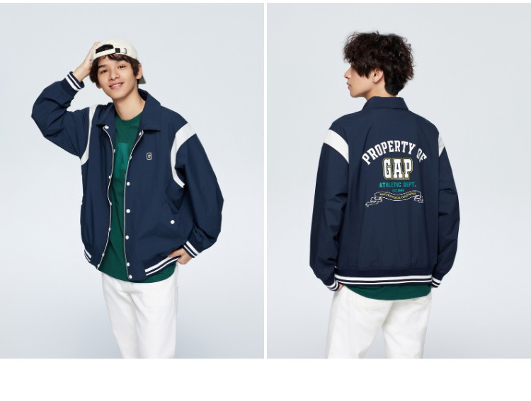 Gap男女装春季LOGO条纹复古夹克宽松翻领情侣外套877507 968922
