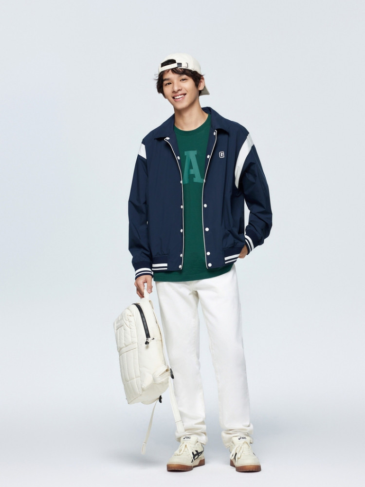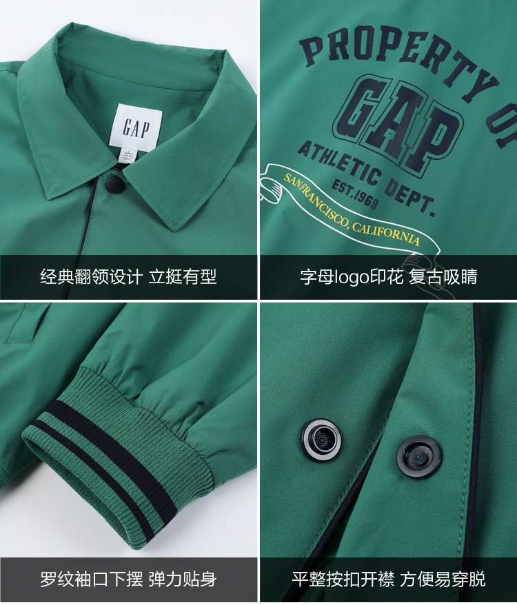 商品名称:Gap男女装春季LOGO条纹复古夹克宽松翻领情侣外套877507 968922