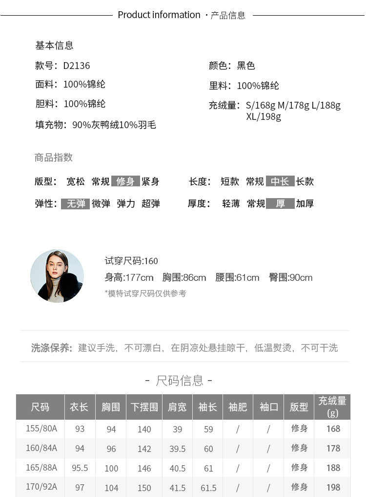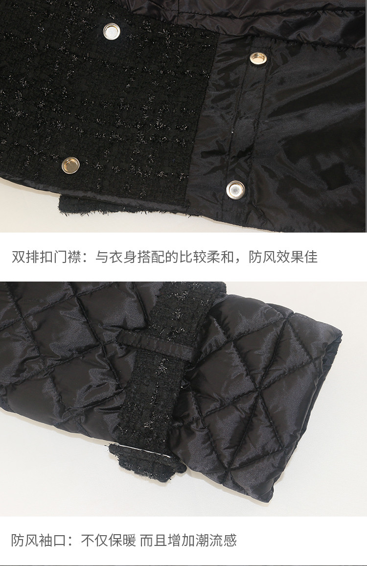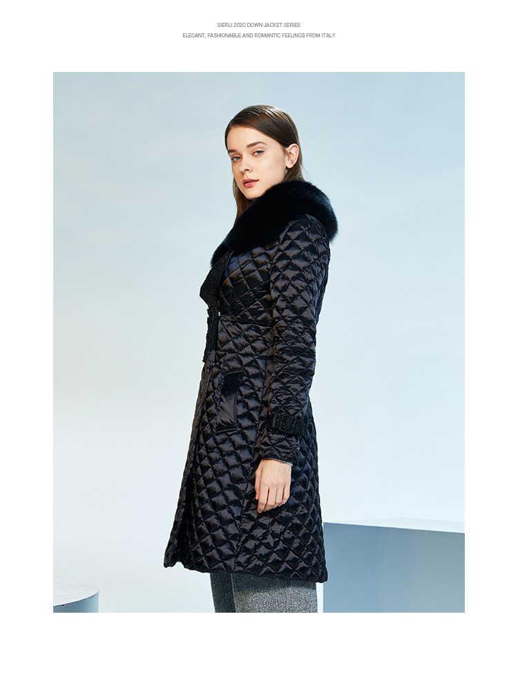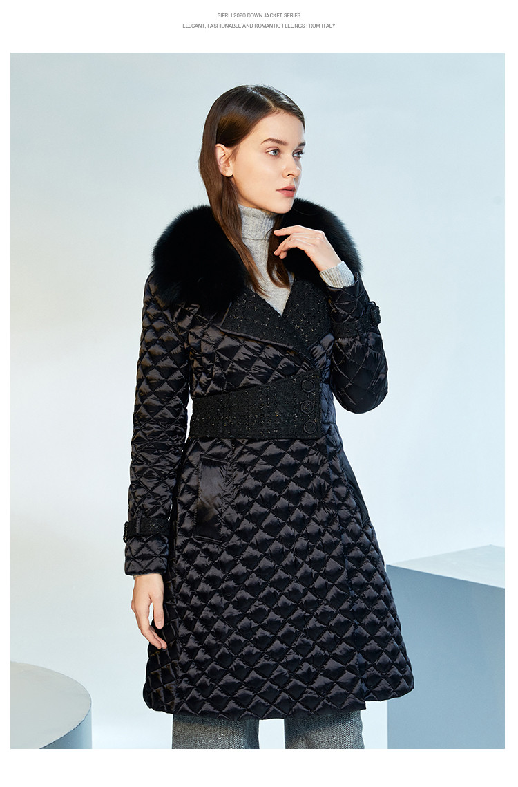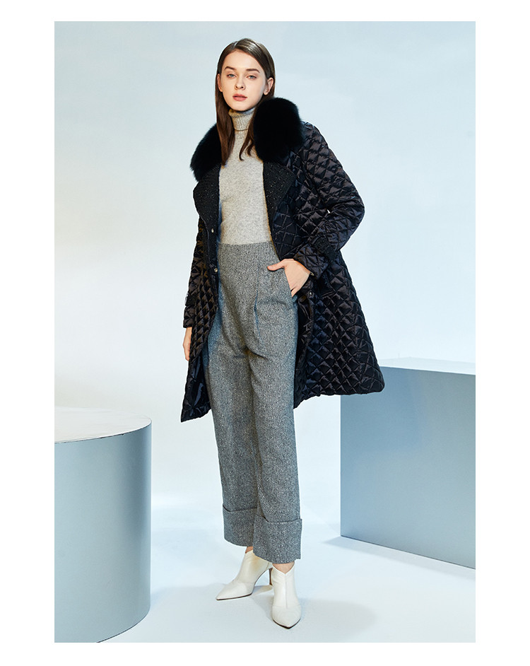 商品名称:小香风狐狸毛领菱形格纹收腰显瘦中长款女士羽绒服 361695