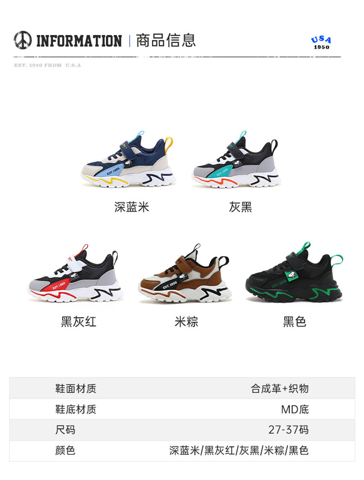商品名称:【潮酷运动鞋】秋冬季男女童耐磨舒适中大童儿童运动鞋跑步鞋 629533