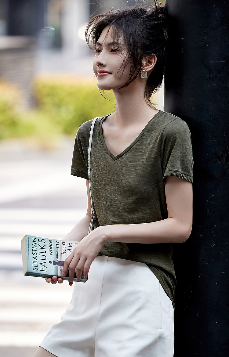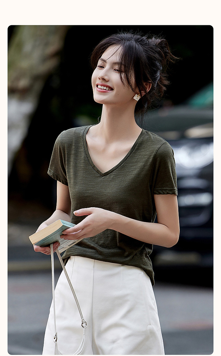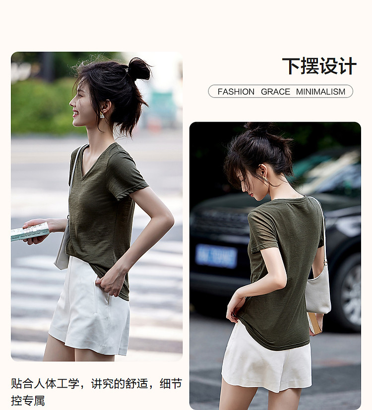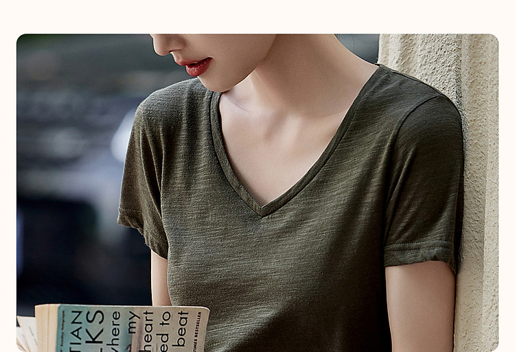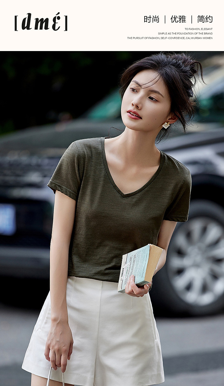 商品名称:【静奢风通勤】夏轻熟风桃心领清凉薄款短袖简约女式t恤 617281