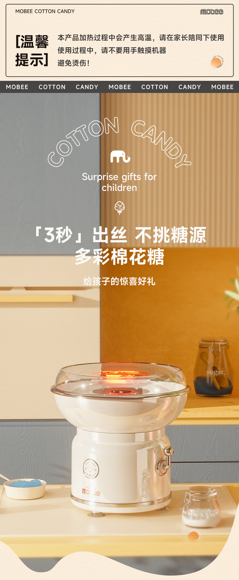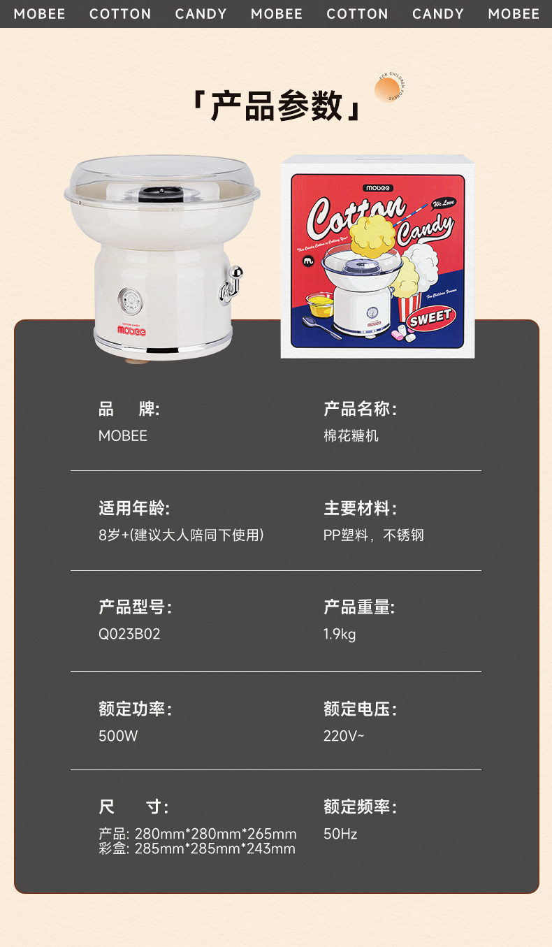 商品名称:mobee儿童棉花糖机女孩男孩厨房过家家套装