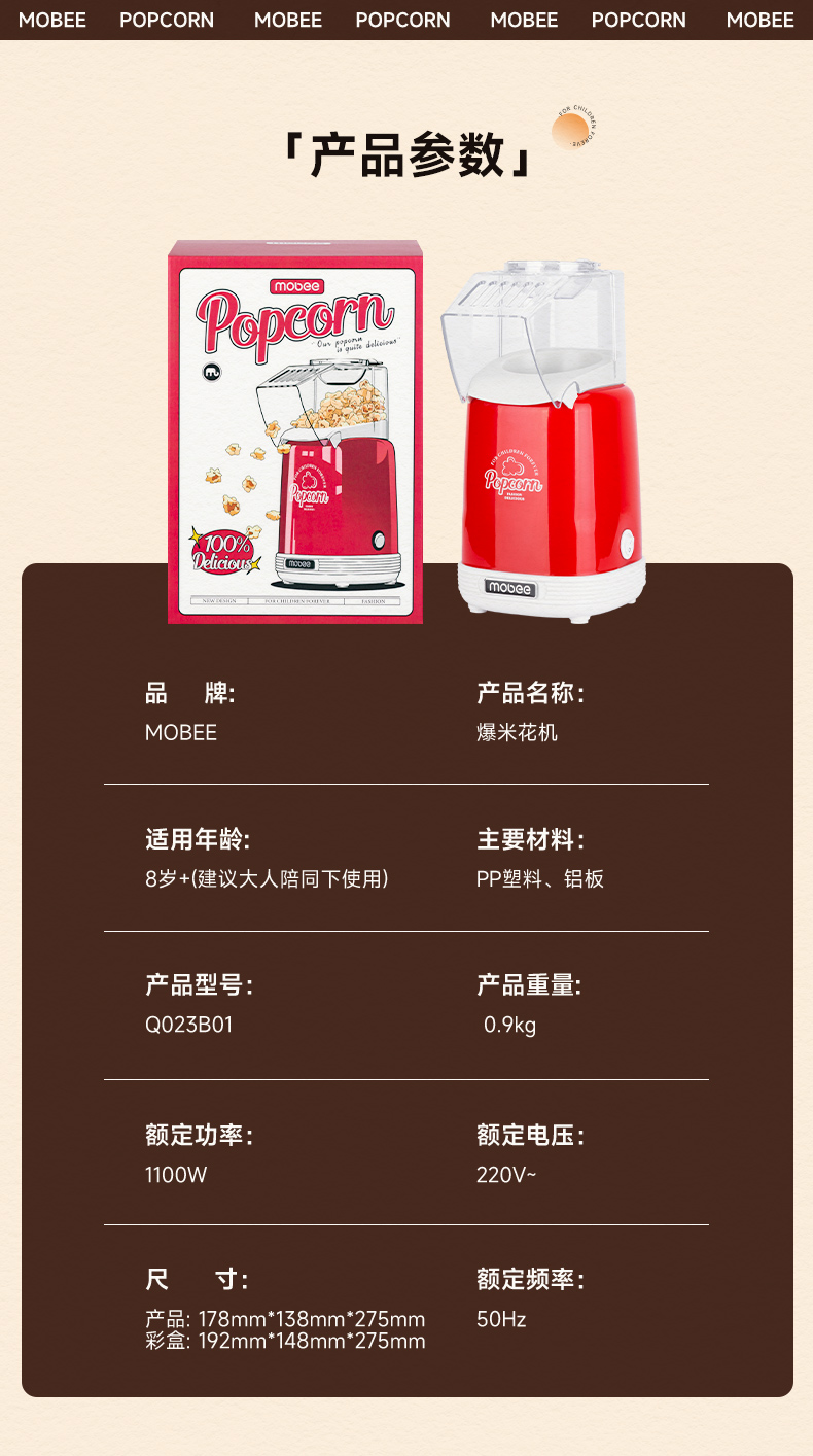商品名称:mobee爆米花机儿童女孩男孩厨房过家家套装