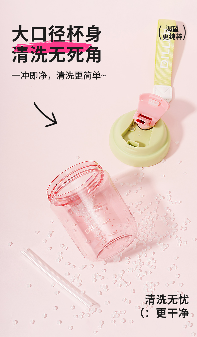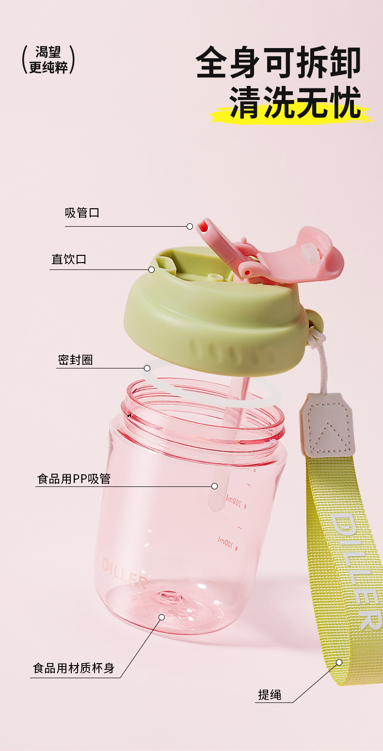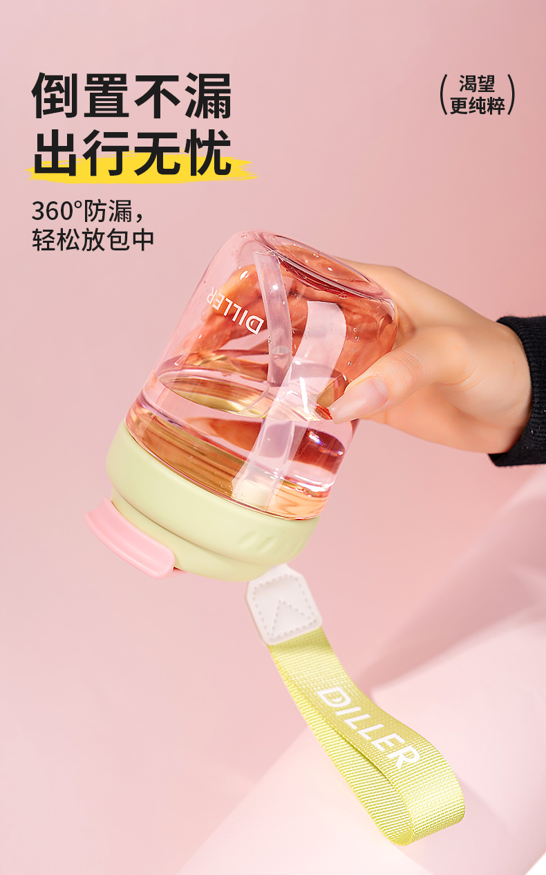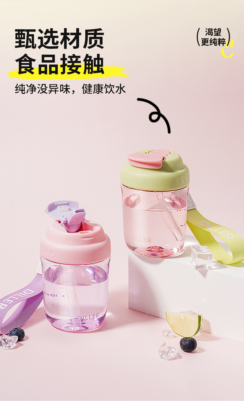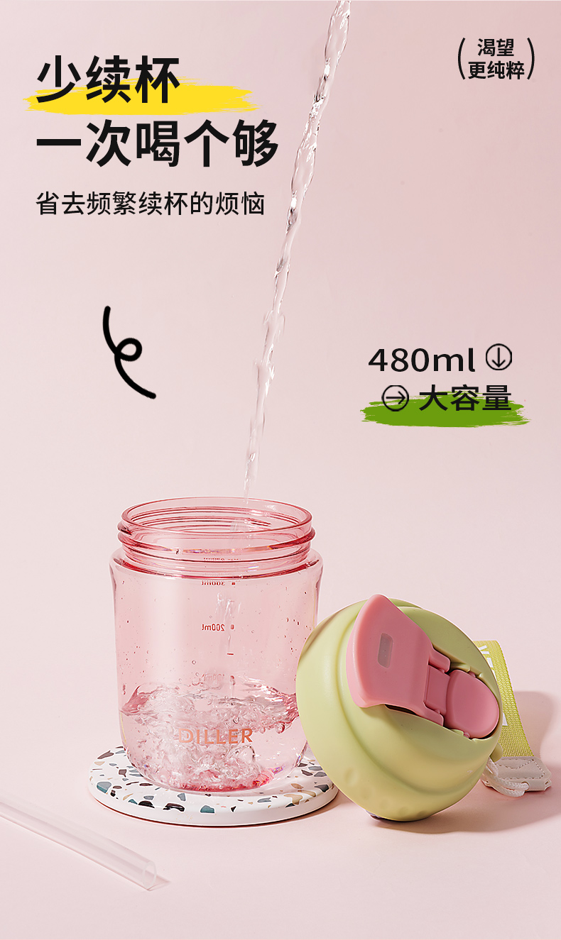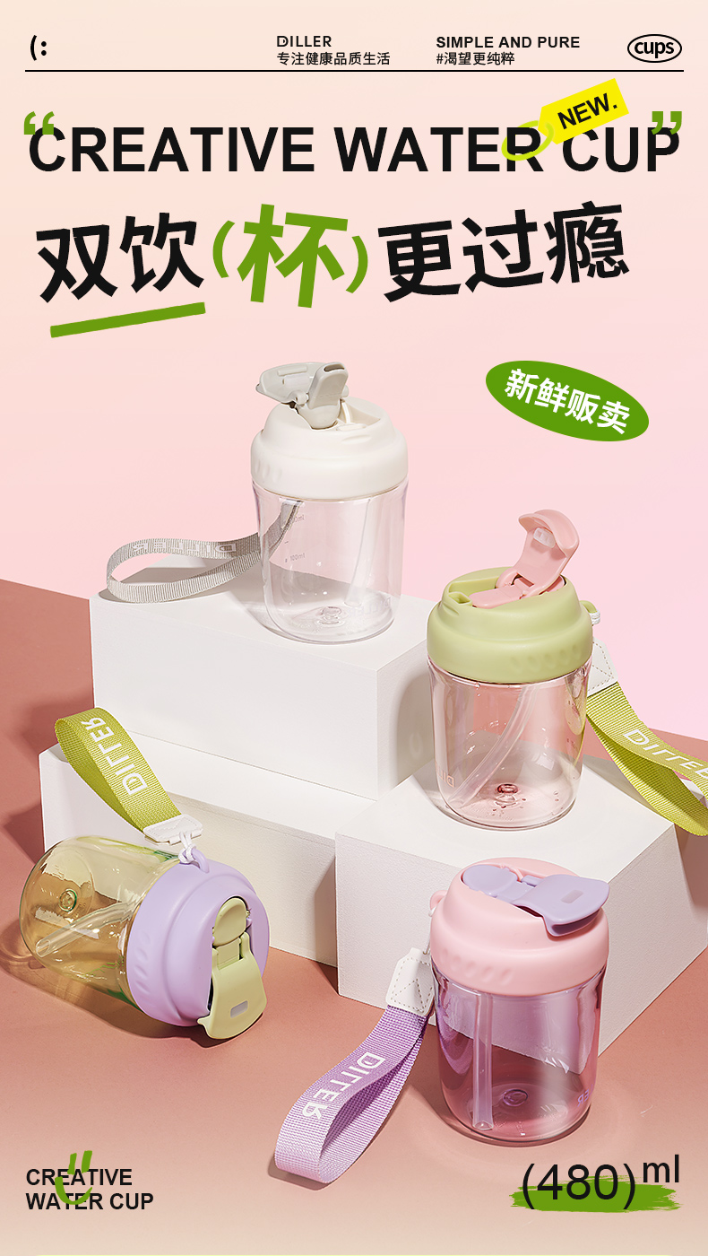 迪乐贝尔新品咖啡杯双饮杯成人吸管杯夏天水杯随行杯高颜值塑料杯耐高温学生杯子480ML