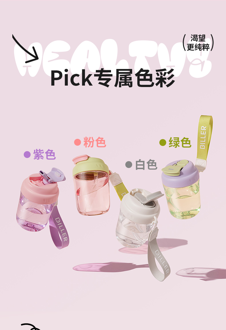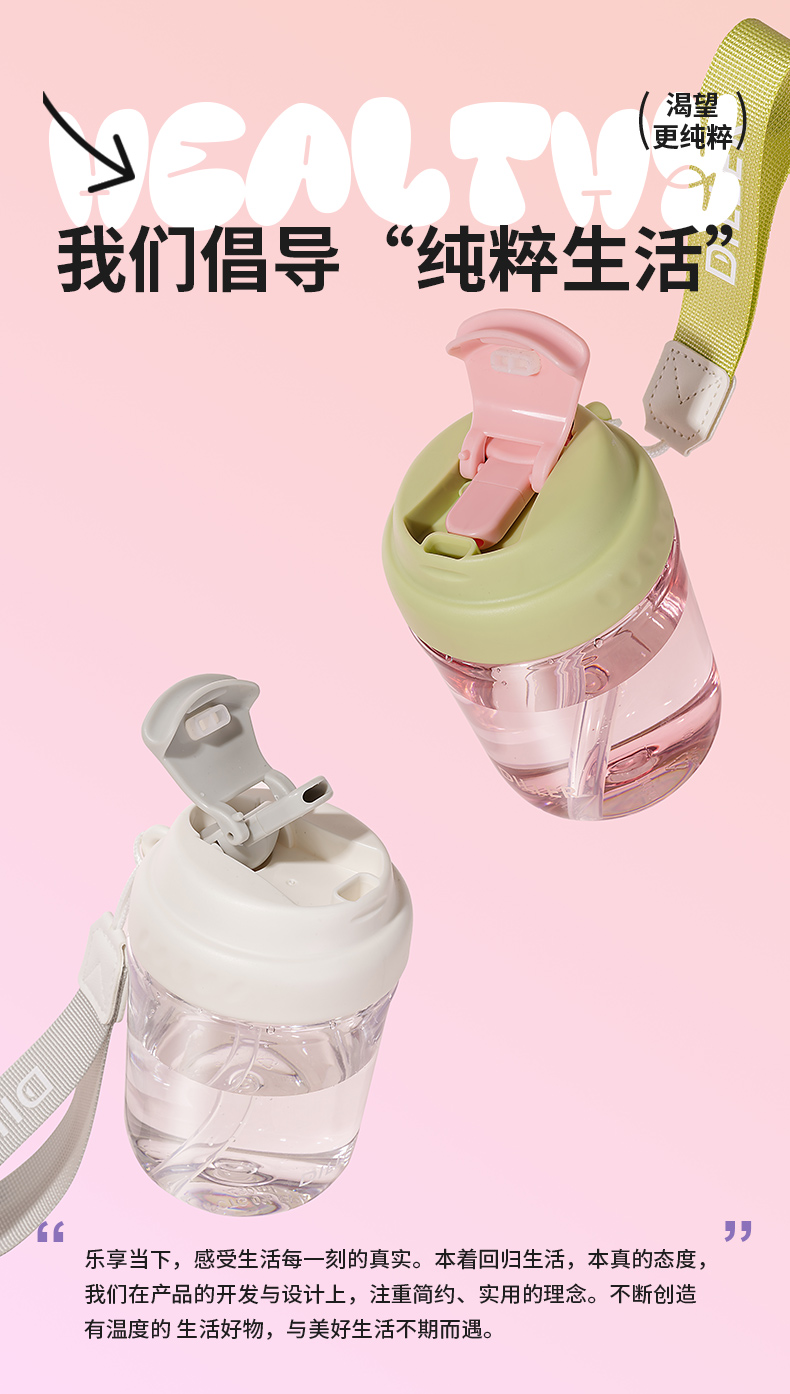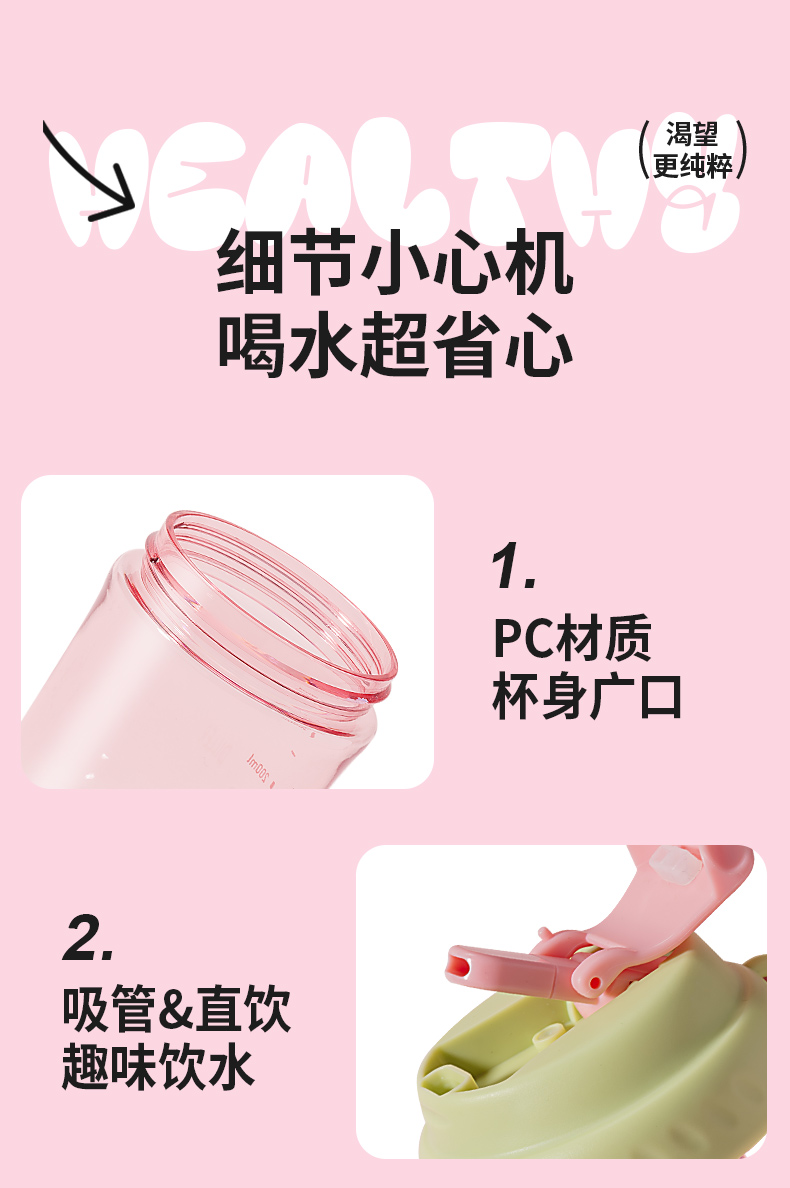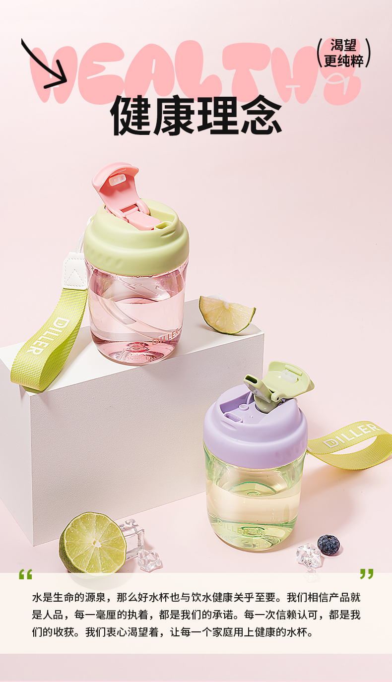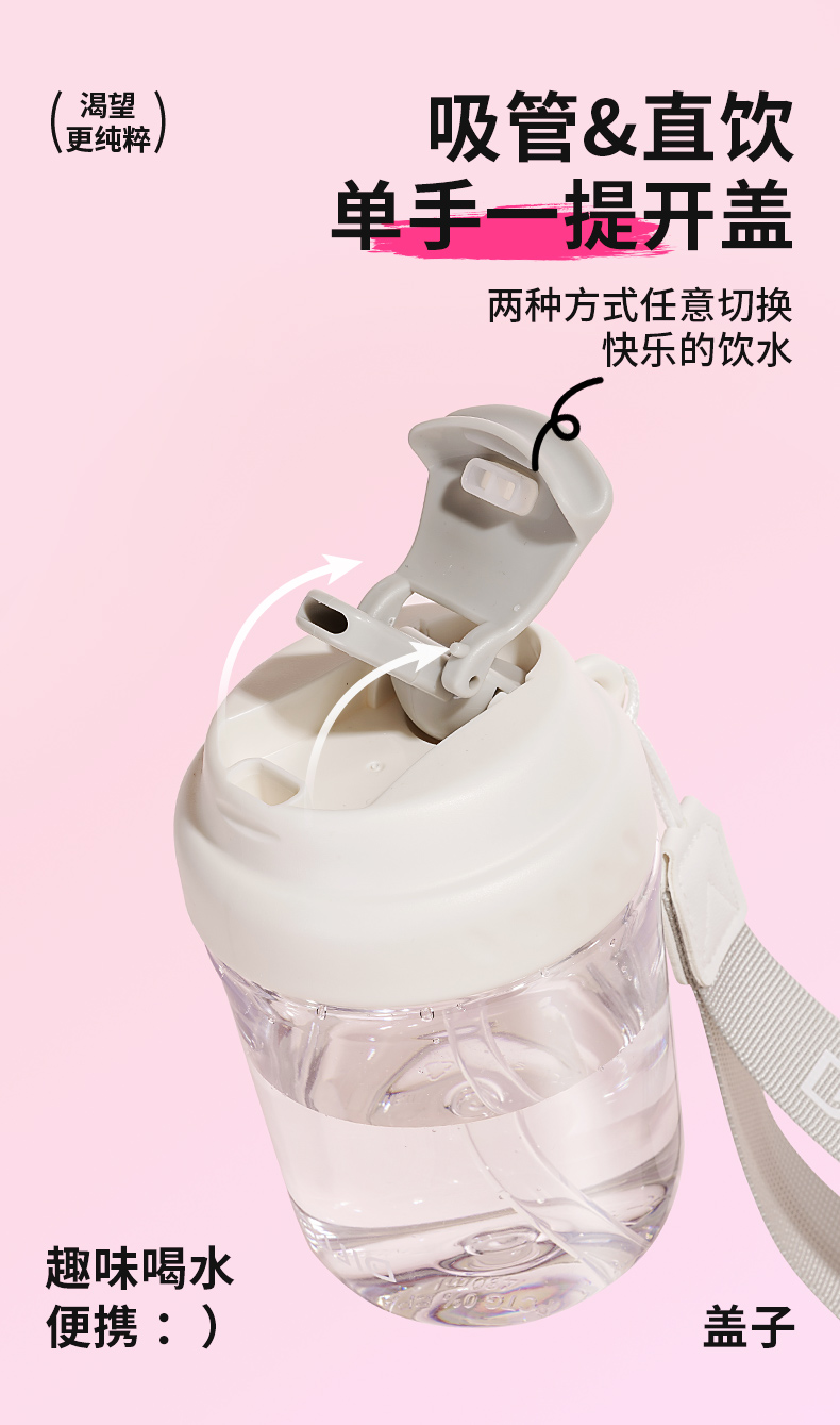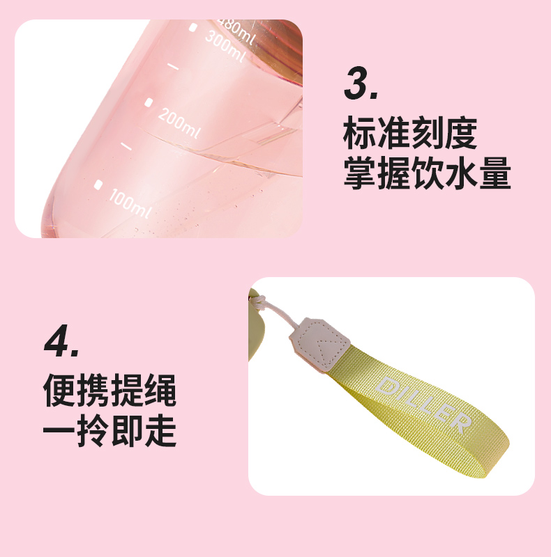 迪乐贝尔新品咖啡杯双饮杯成人吸管杯夏天水杯随行杯高颜值塑料杯耐高温学生杯子480ML