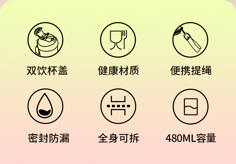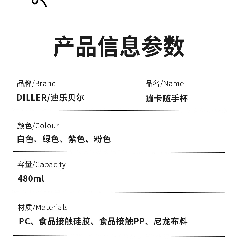 商品名称:迪乐贝尔新品咖啡杯双饮杯成人吸管杯夏天水杯随行杯高颜值塑料杯耐高温学生杯子480ML