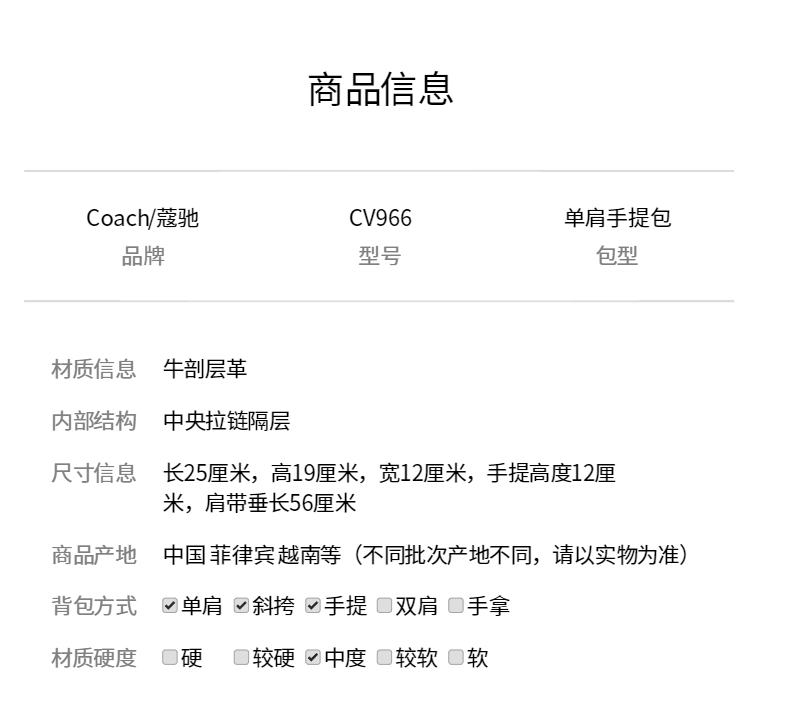 商品名称:COACH 奥莱款女士皮质单肩斜挎手提包 CV966SVHA
