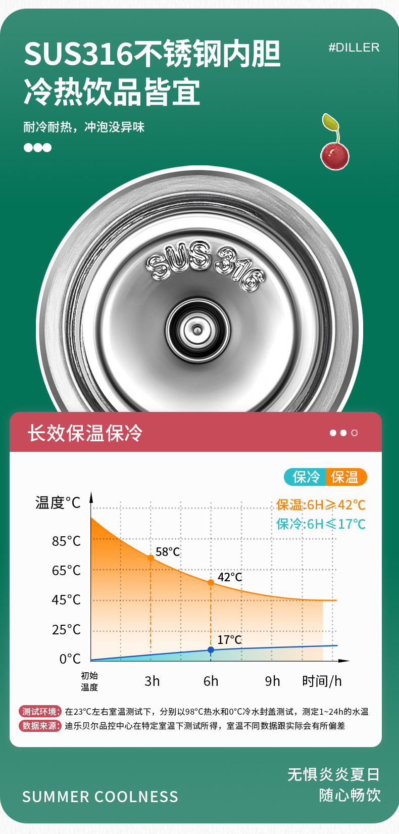 商品名称:迪乐贝尔新款樱桃小熊系列成人保温杯可爱学生创意便携杯子316不锈钢水杯女士直饮杯