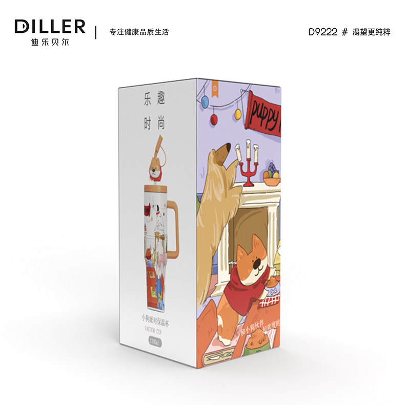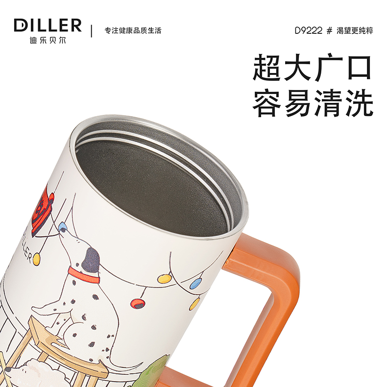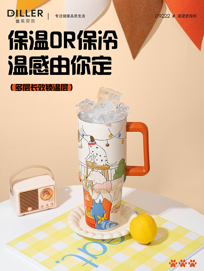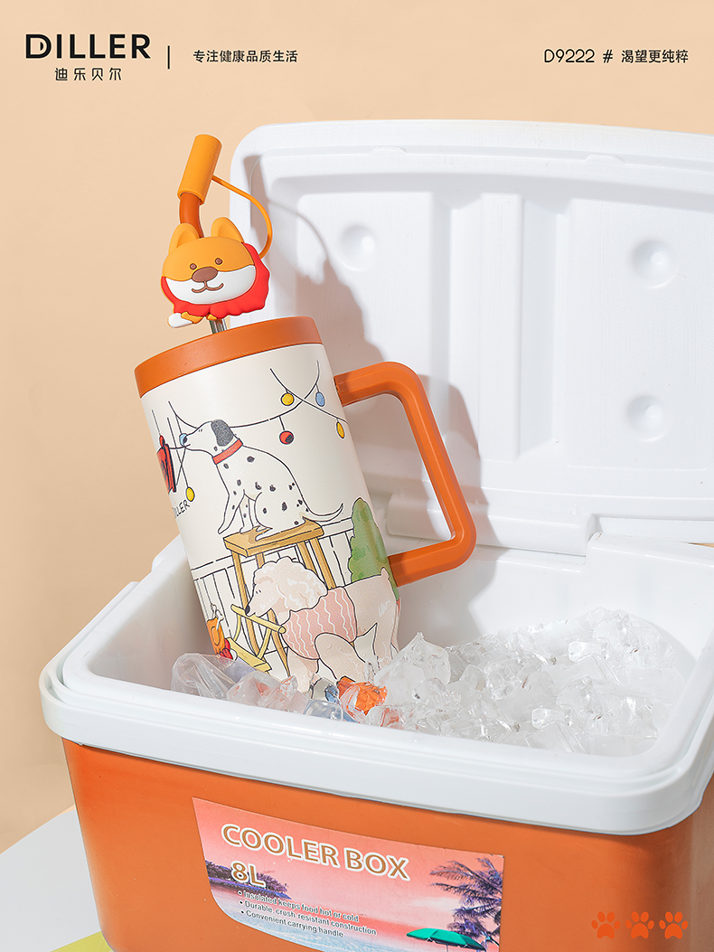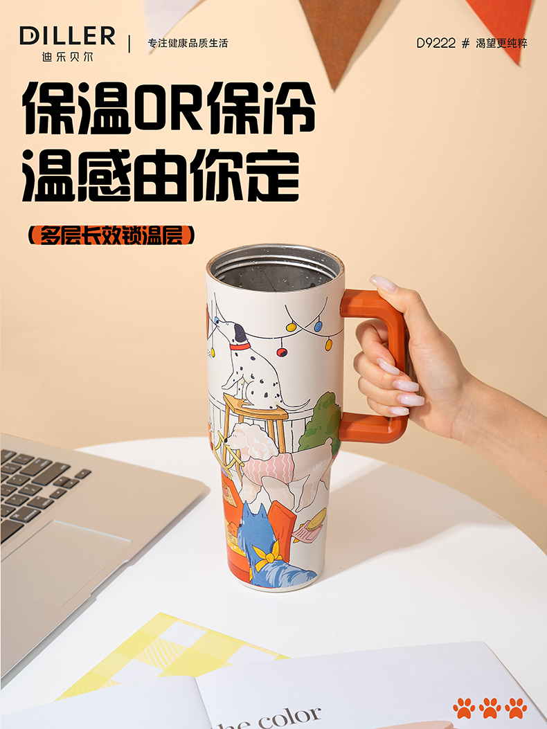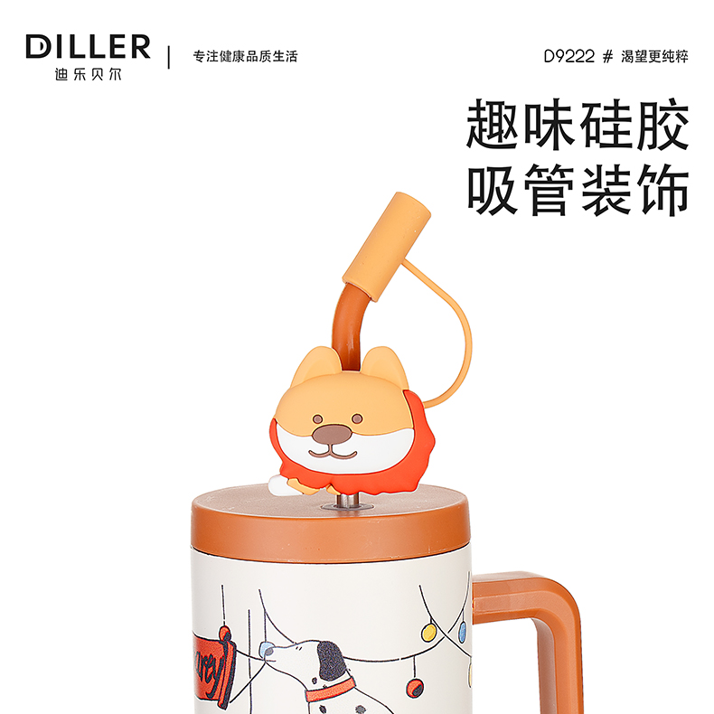 迪乐贝尔新款修狗系列巨无霸吸管杯女士保温杯大容量车载304不锈钢水杯保冷冰霸杯
