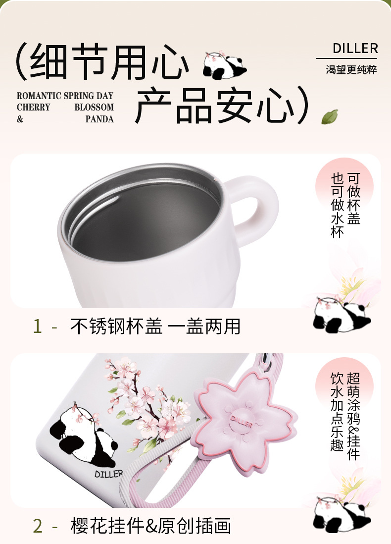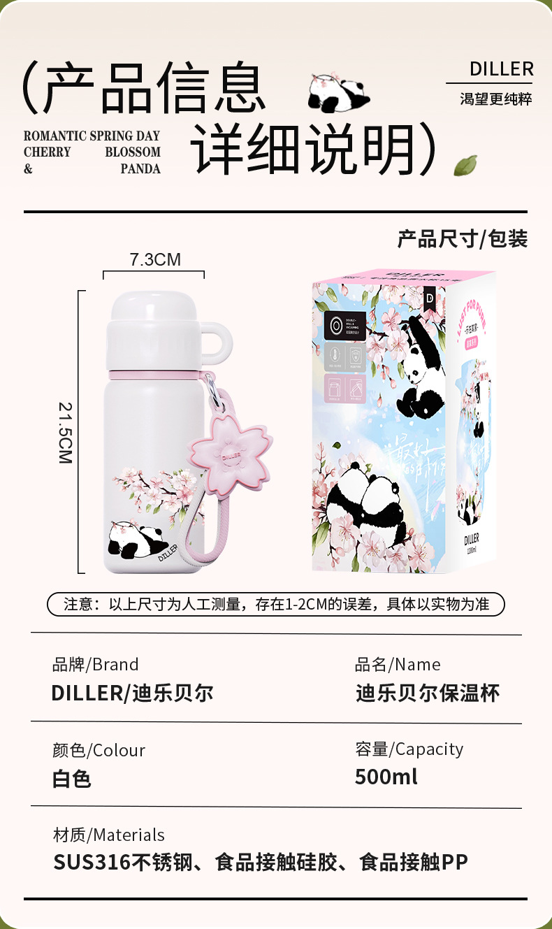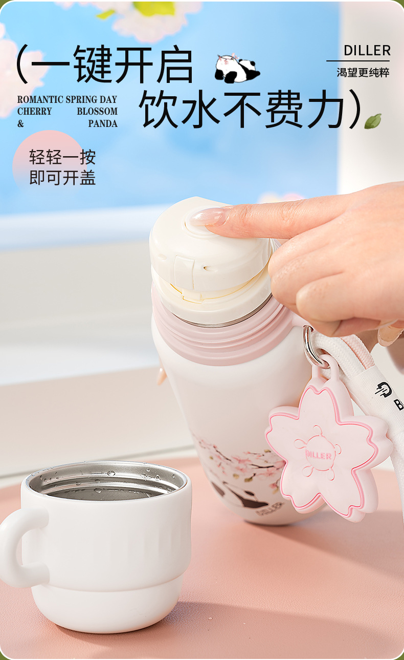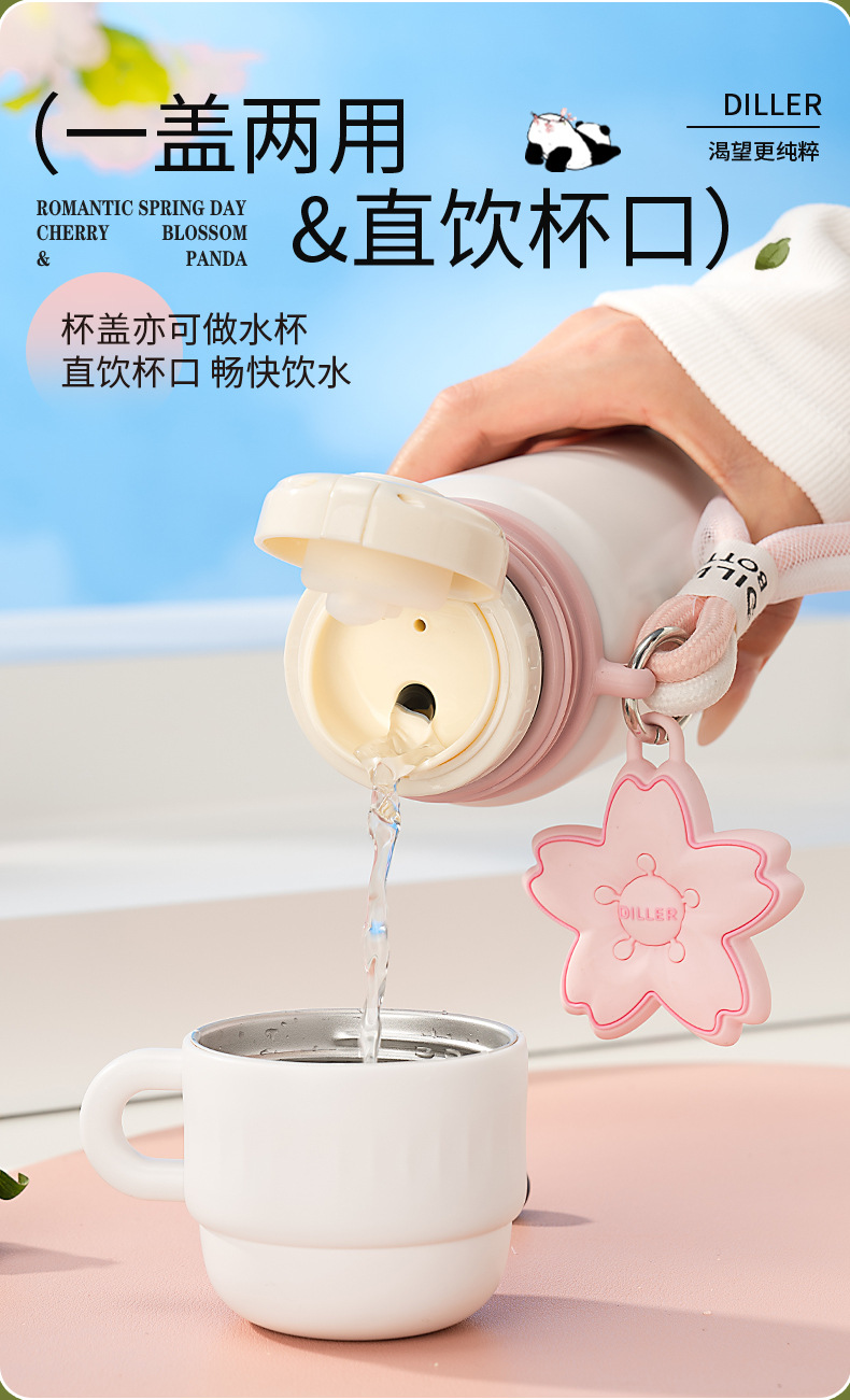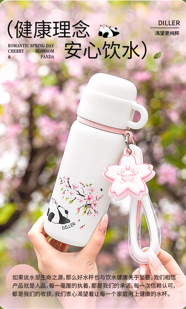 商品名称:迪乐贝尔新款樱花系列保温杯316不锈钢成人水杯大容量水壶便携女生高颜值吸管杯喝水杯
