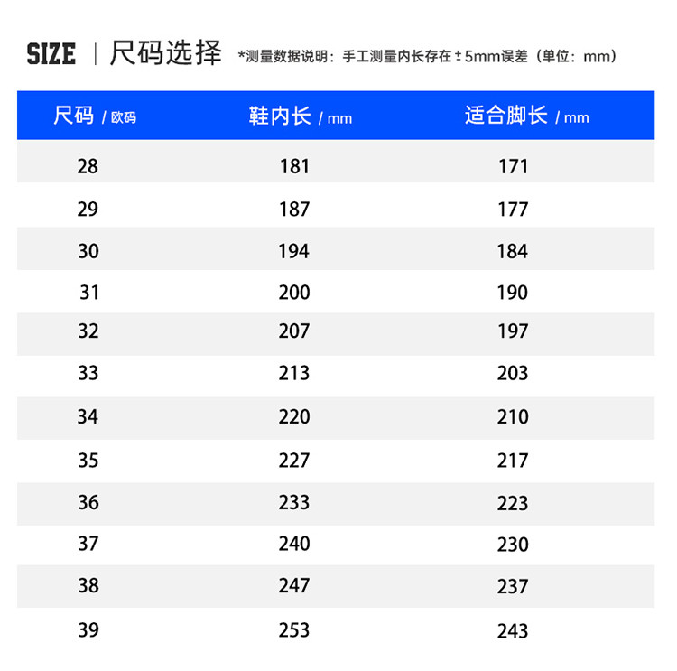 鞋内长(mm)