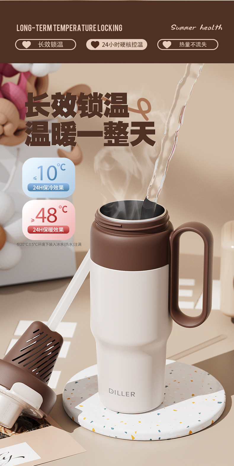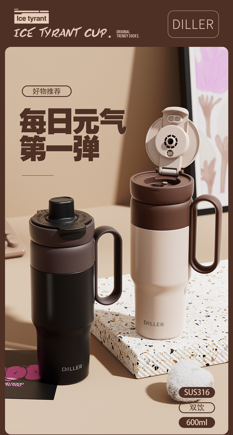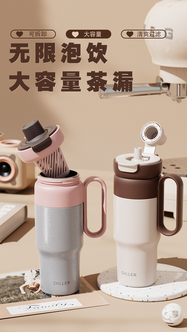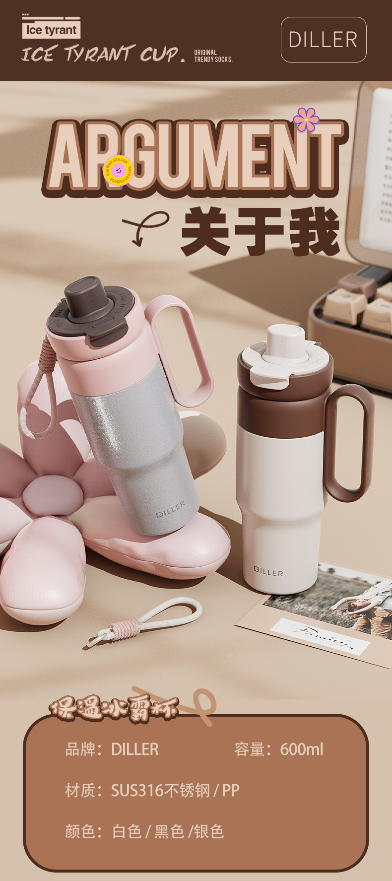 迪乐贝尔新品巨无霸吸管保温杯女士花茶杯大容量茶隔水壶网红吨吨杯子保冷冰霸杯600ML