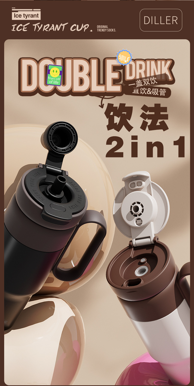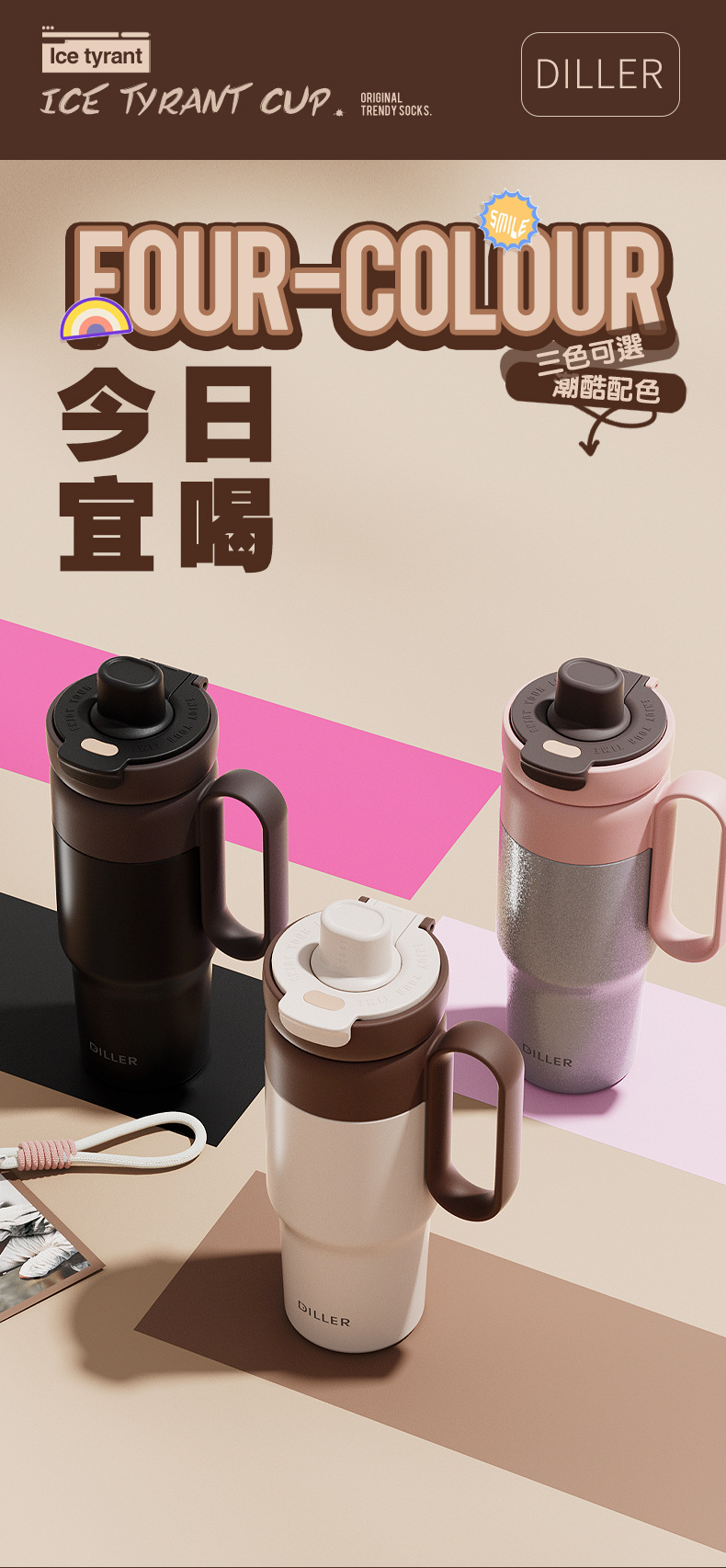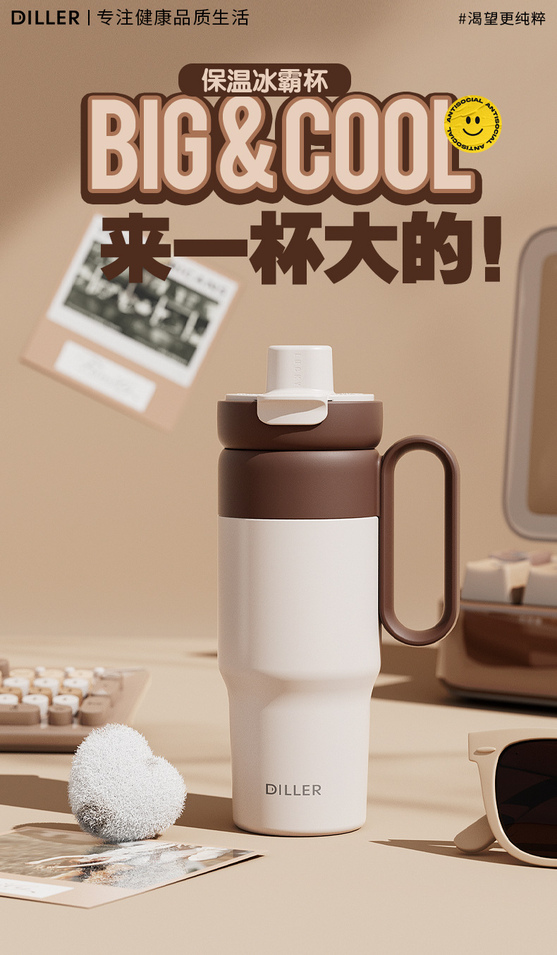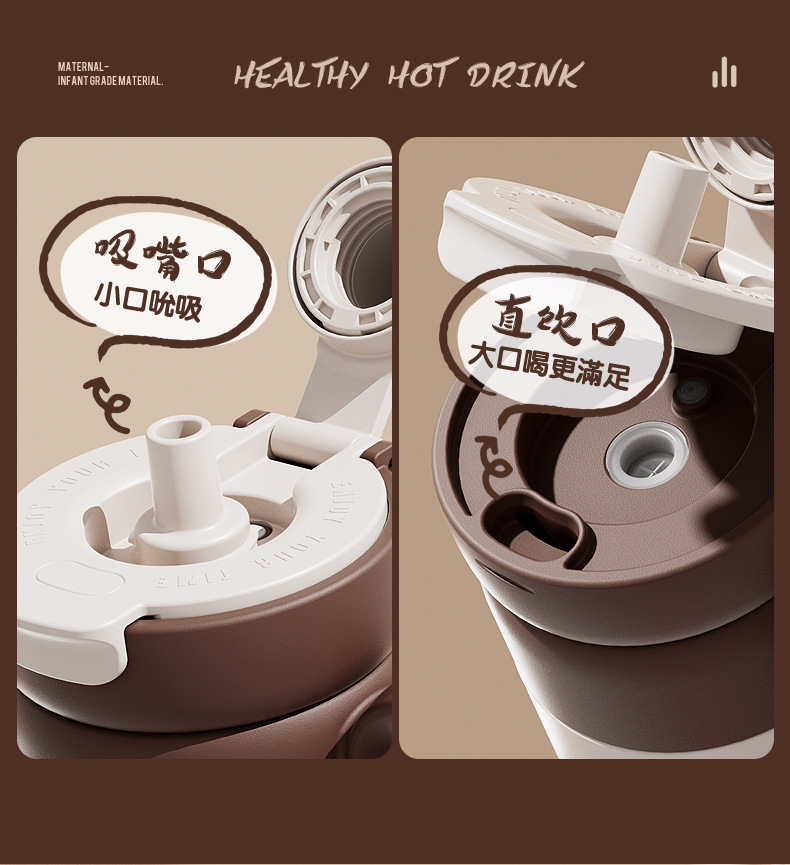 迪乐贝尔新品巨无霸吸管保温杯女士花茶杯大容量茶隔水壶网红吨吨杯子保冷冰霸杯600ML