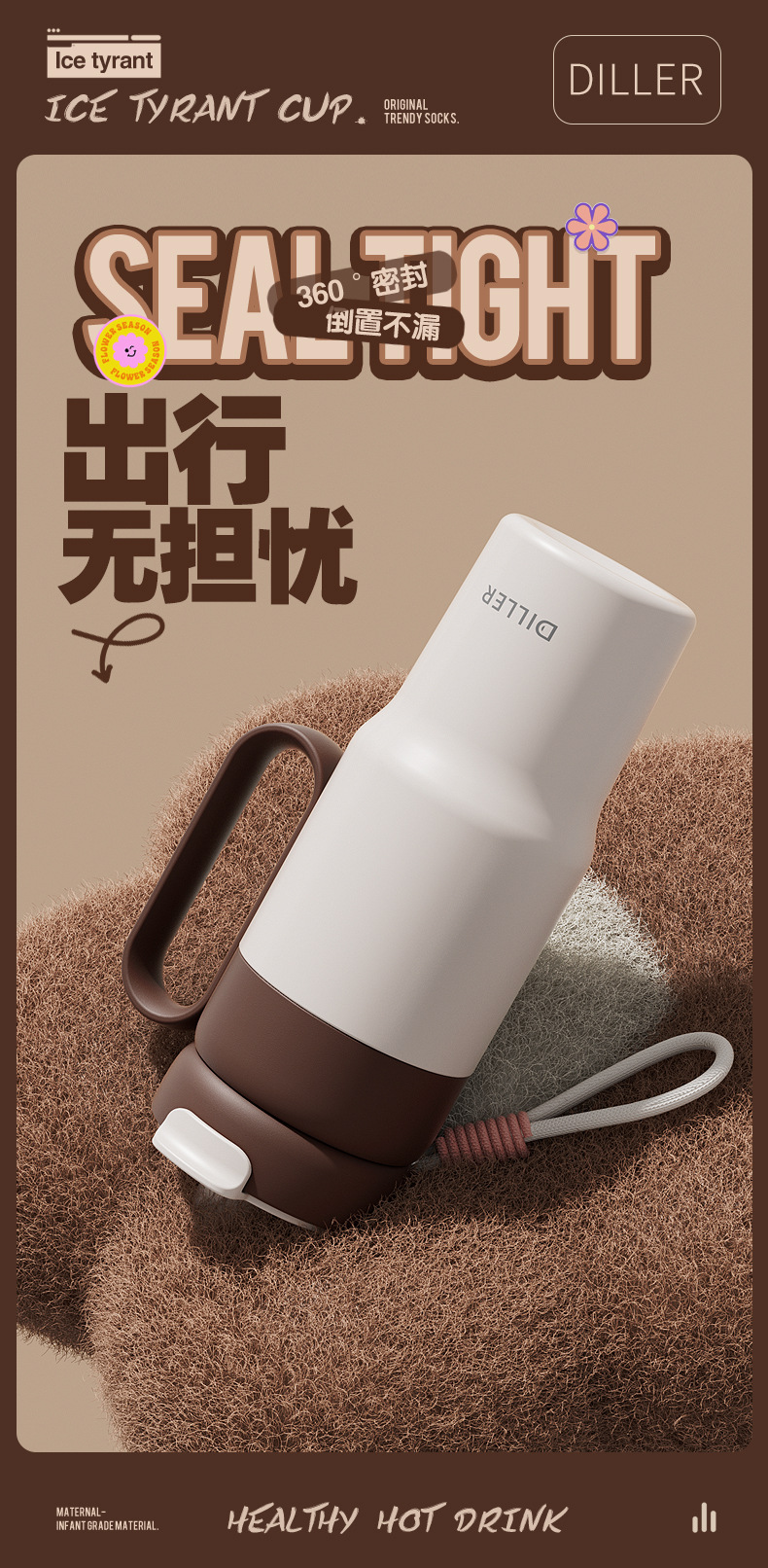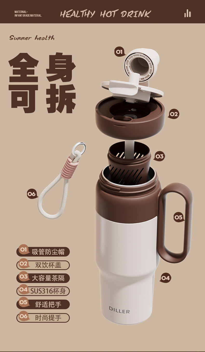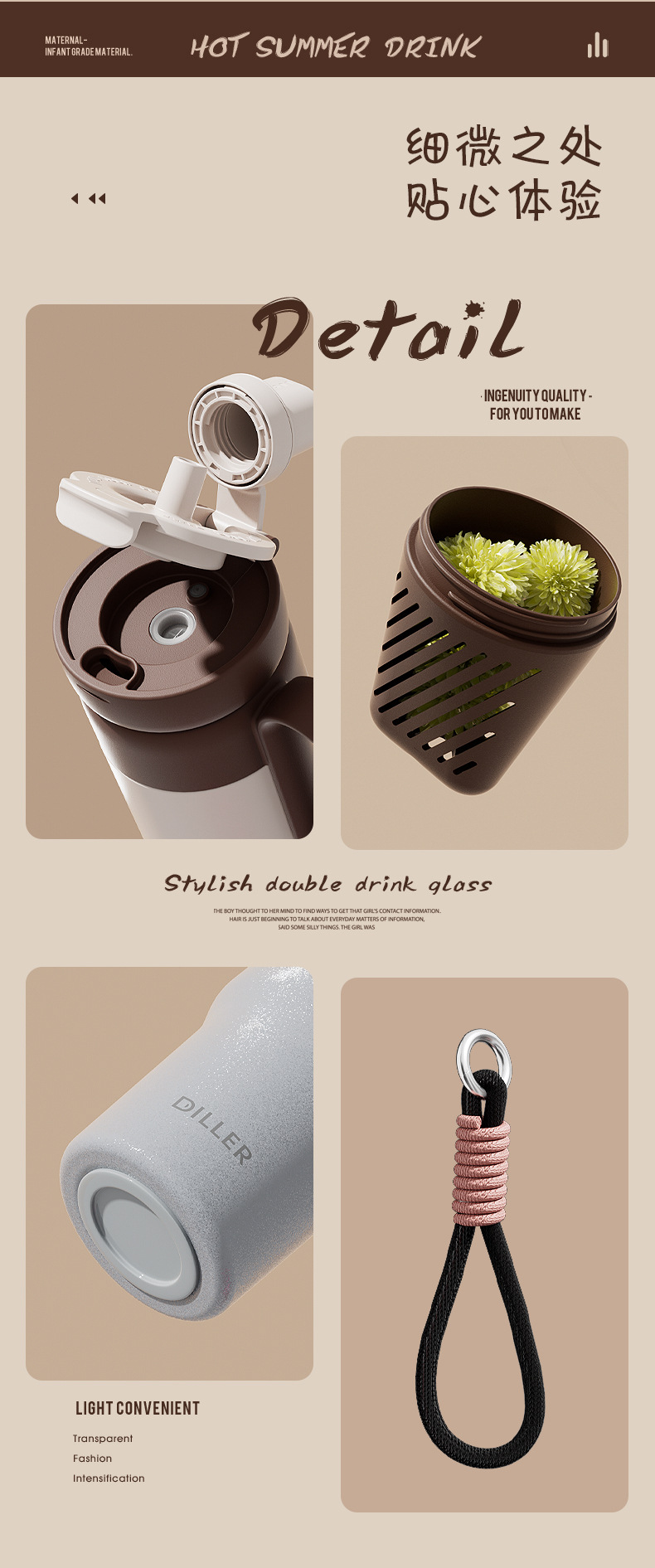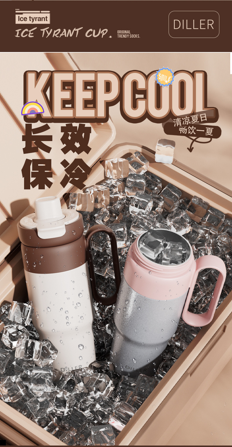 迪乐贝尔新品巨无霸吸管保温杯女士花茶杯大容量茶隔水壶网红吨吨杯子保冷冰霸杯600ML