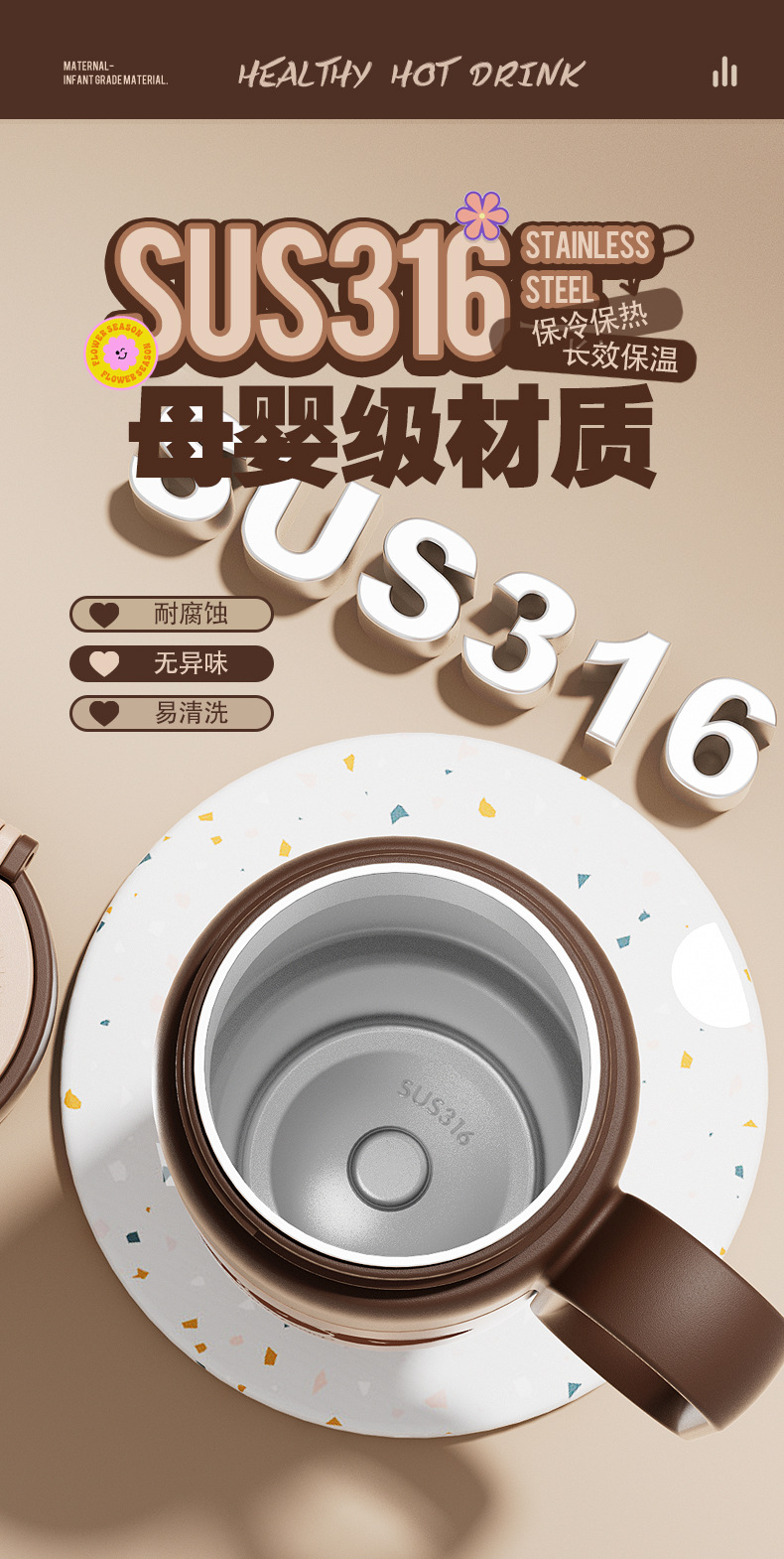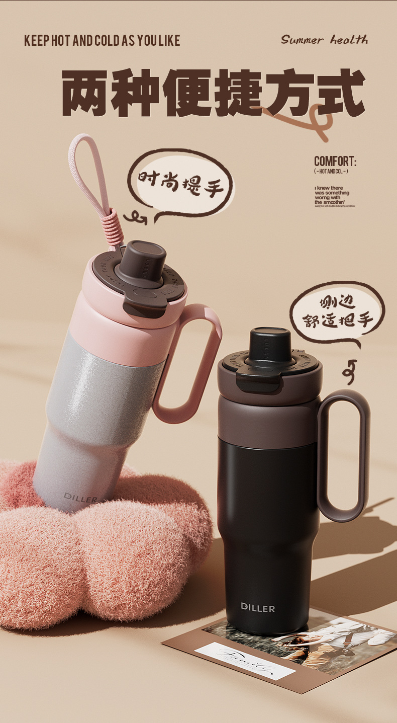 迪乐贝尔新款樱花系列保温杯316不锈钢成人水杯大容量水壶便携女生高颜值吸管杯喝水杯