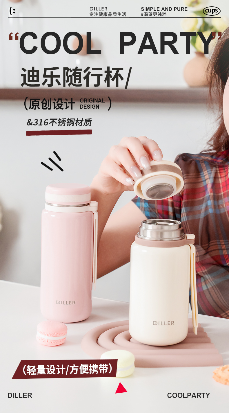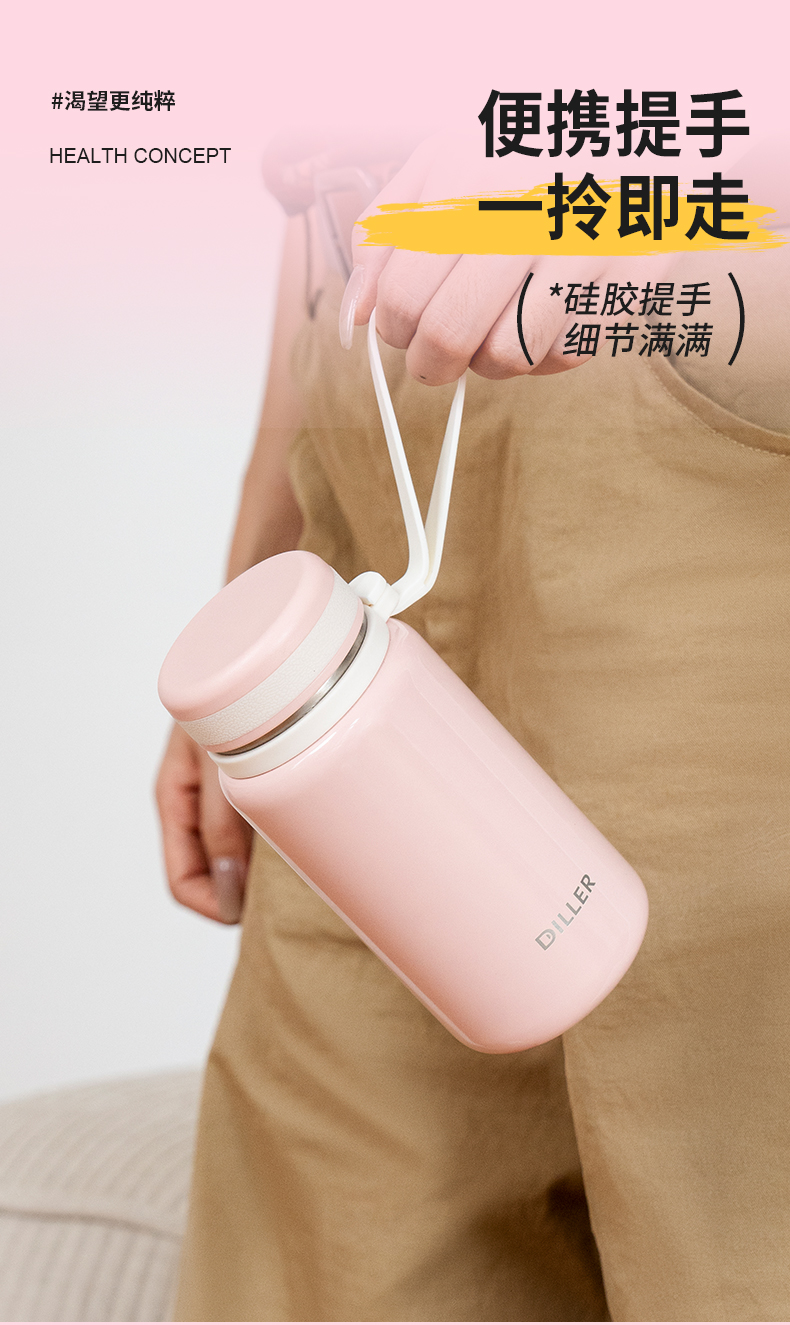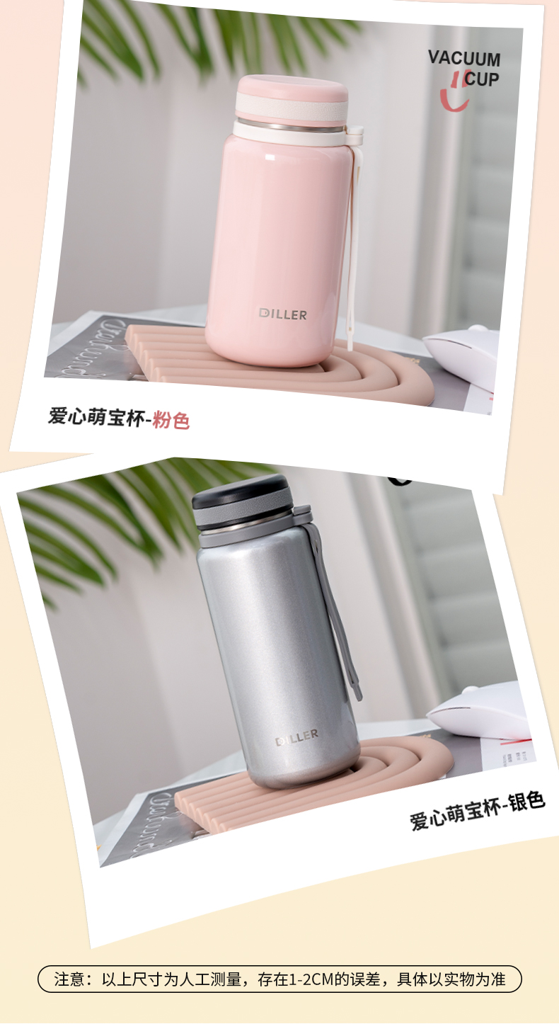 迪乐贝尔新品带茶隔随行杯保温杯迷你小巧口袋直饮杯成人便携水杯户外学生运动杯260ML