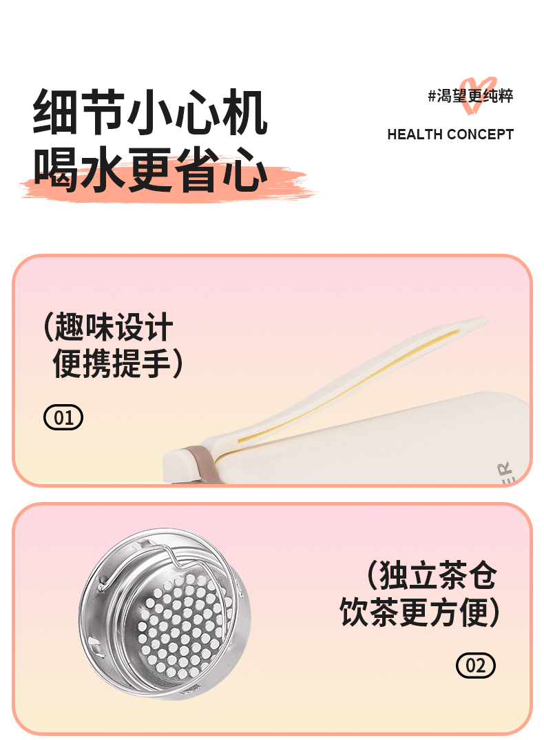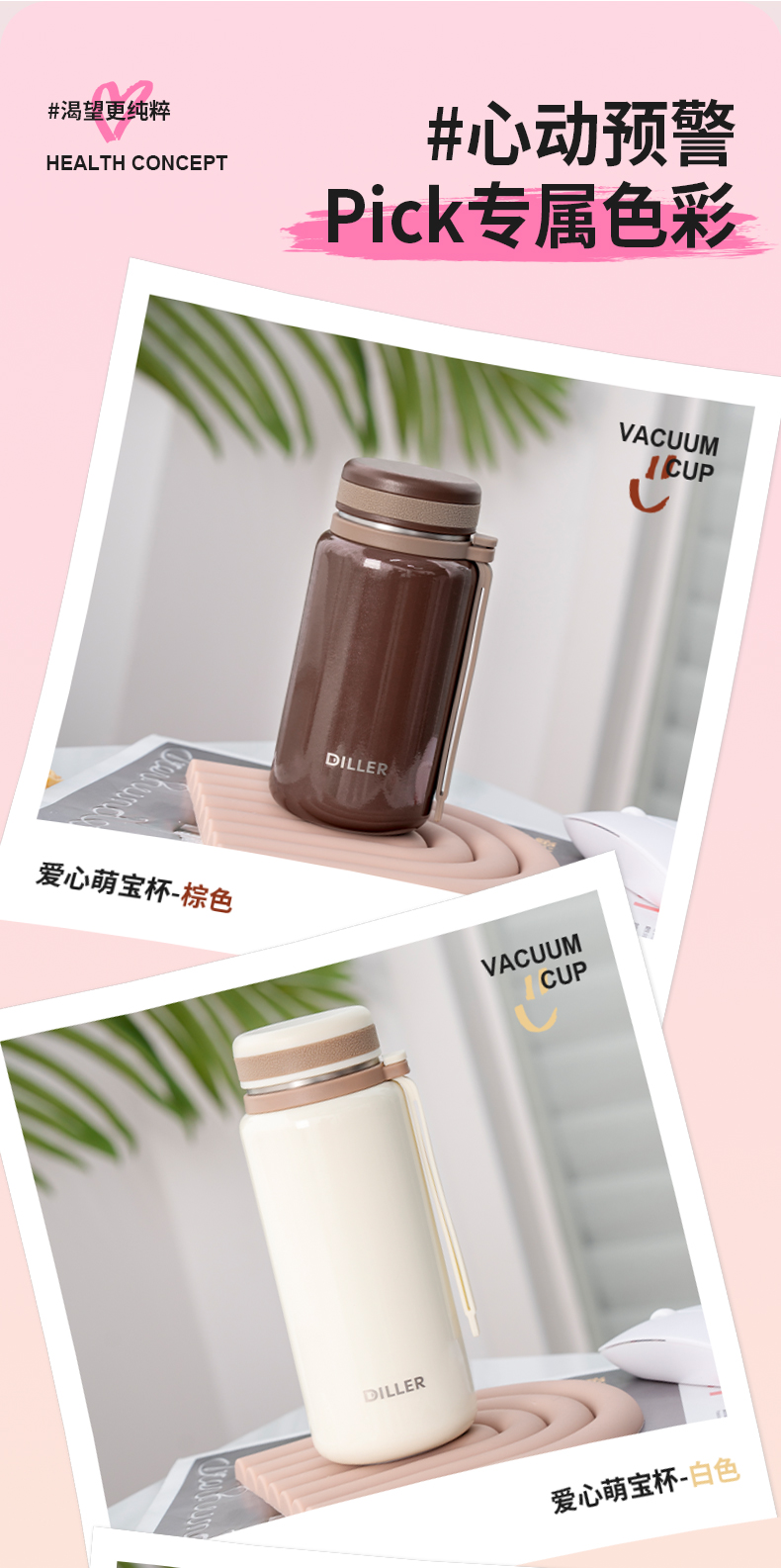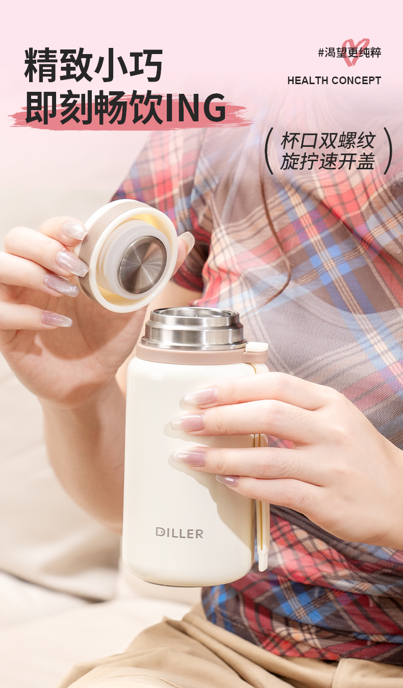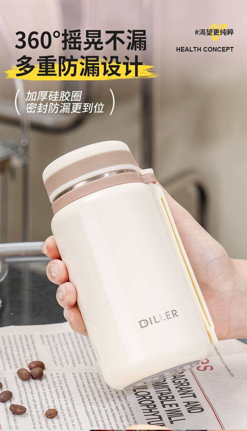 迪乐贝尔新品带茶隔随行杯保温杯迷你小巧口袋直饮杯成人便携水杯户外学生运动杯260ML