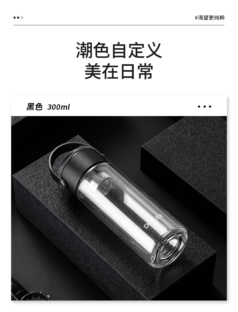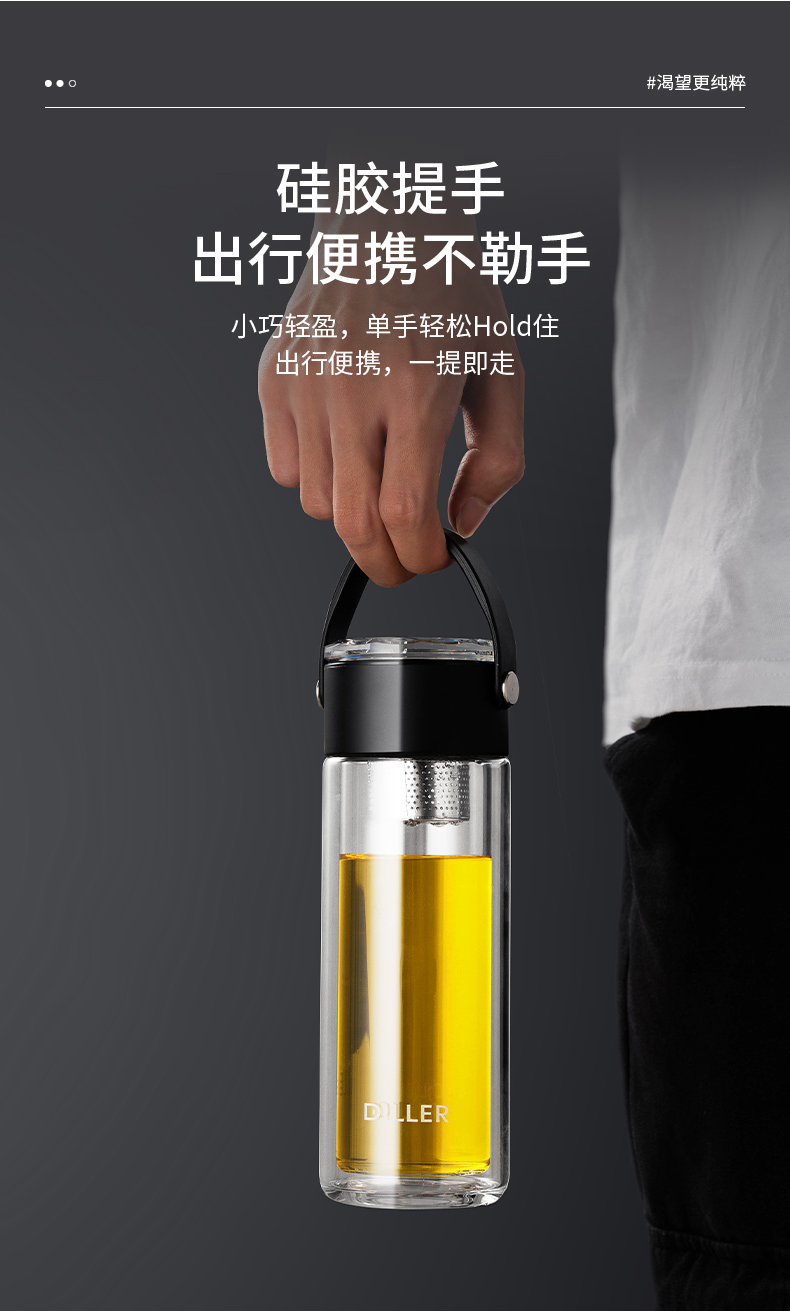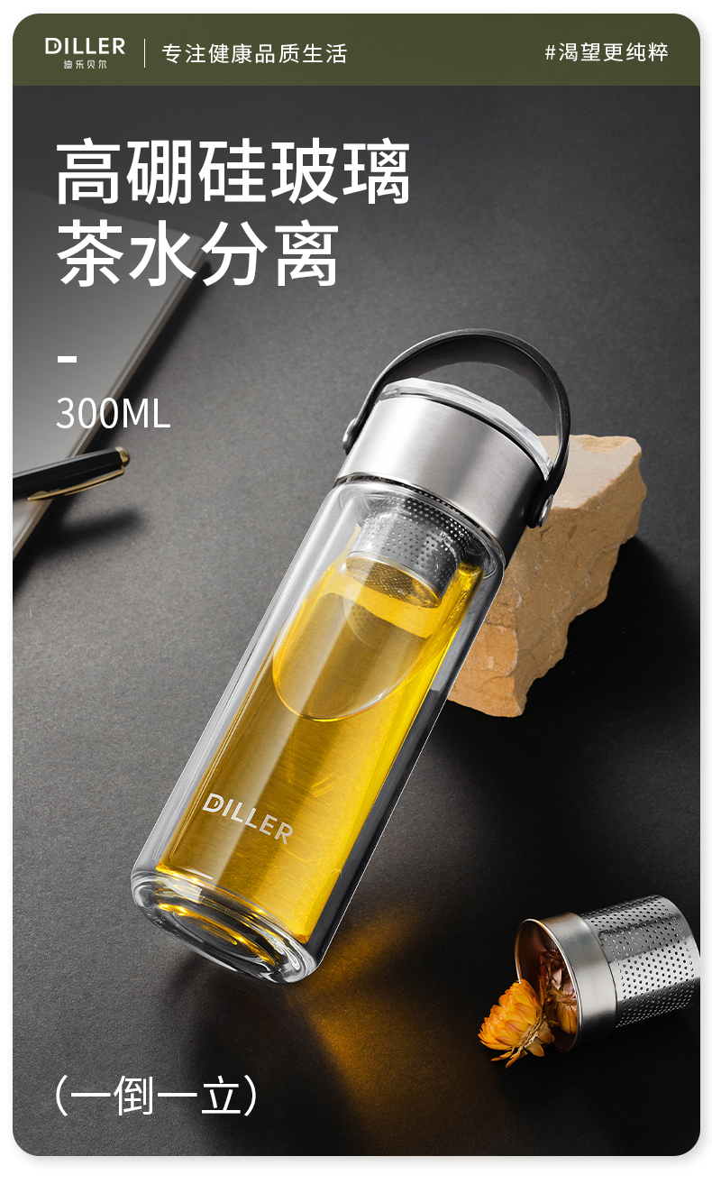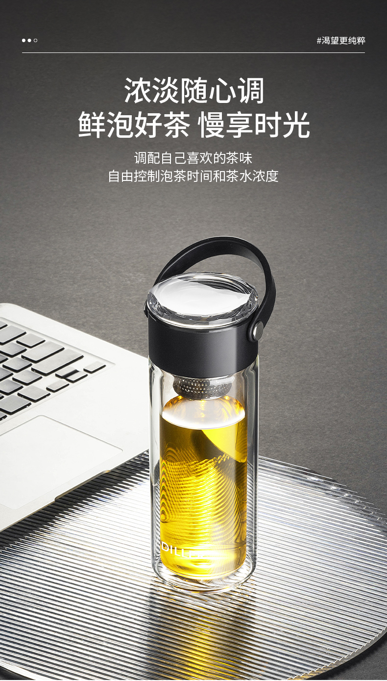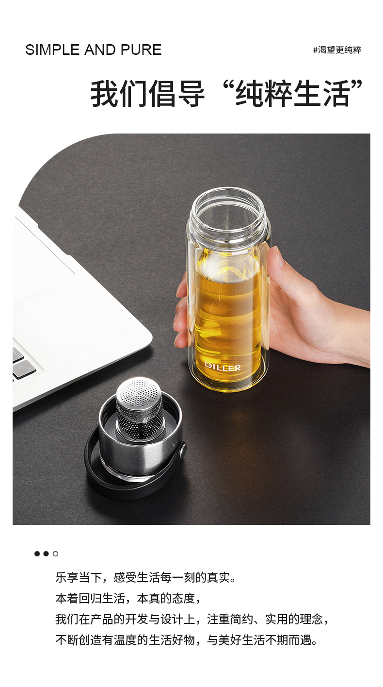 迪乐贝尔成人双层玻璃杯茶水分离男士泡茶杯女士花茶杯子商务办公便携水杯300ML