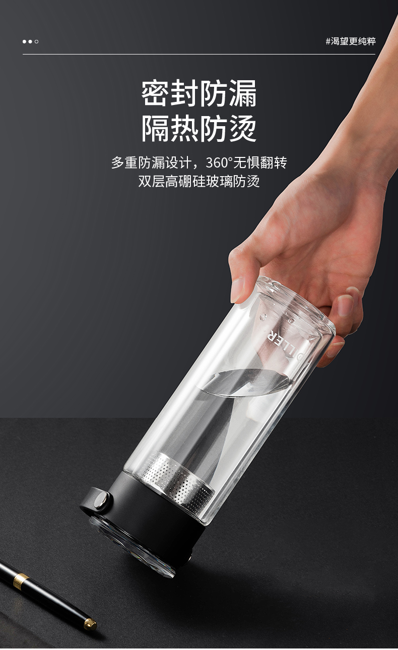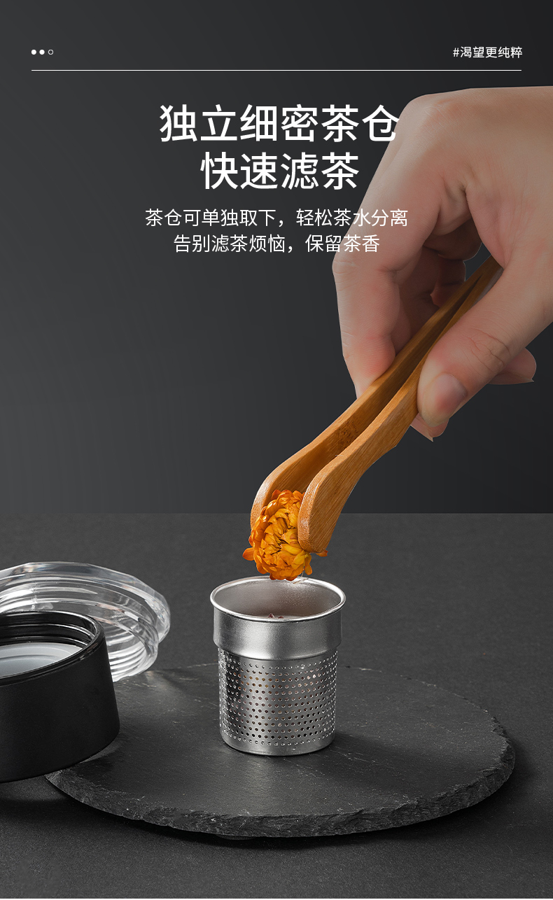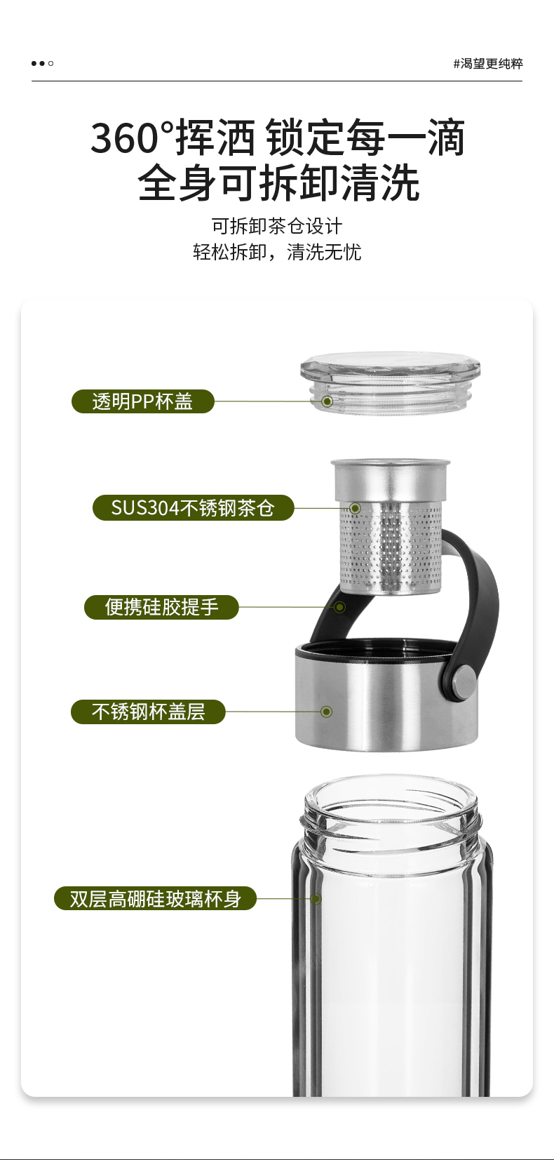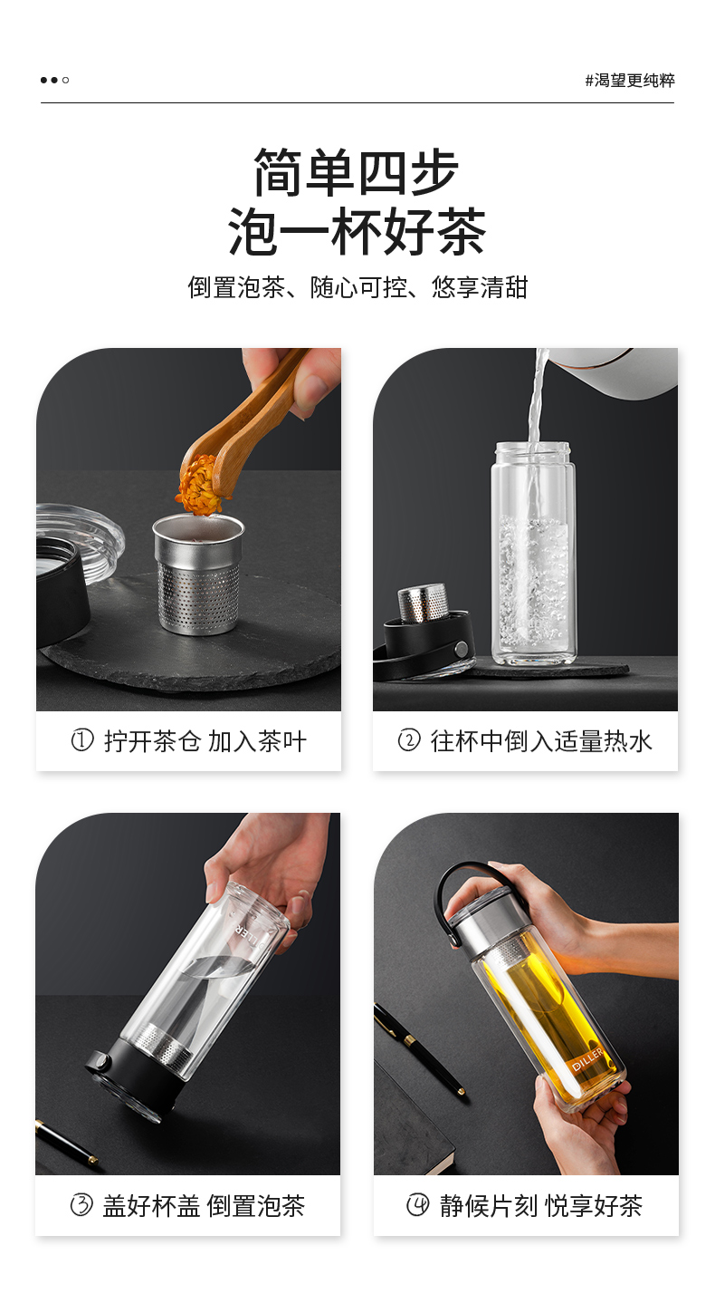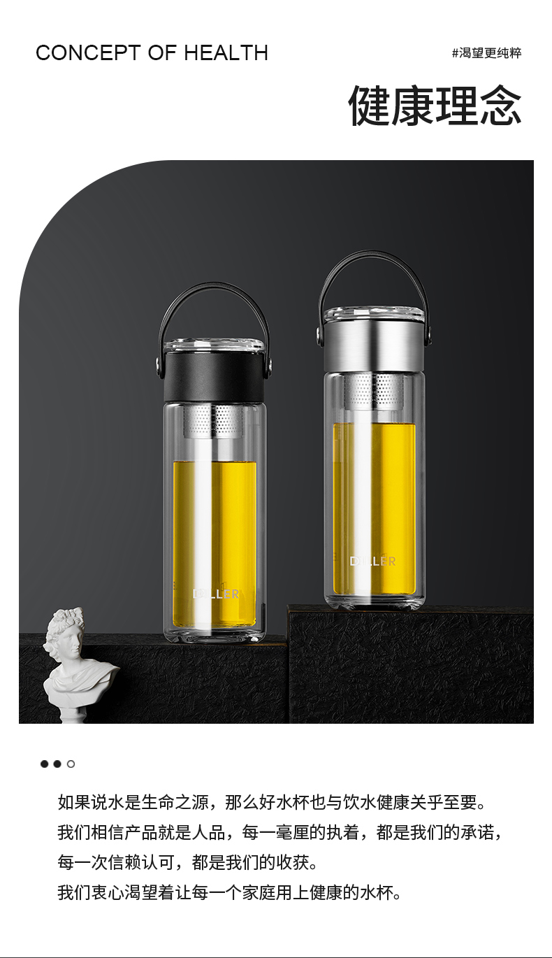 迪乐贝尔成人双层玻璃杯茶水分离男士泡茶杯女士花茶杯子商务办公便携水杯300ML