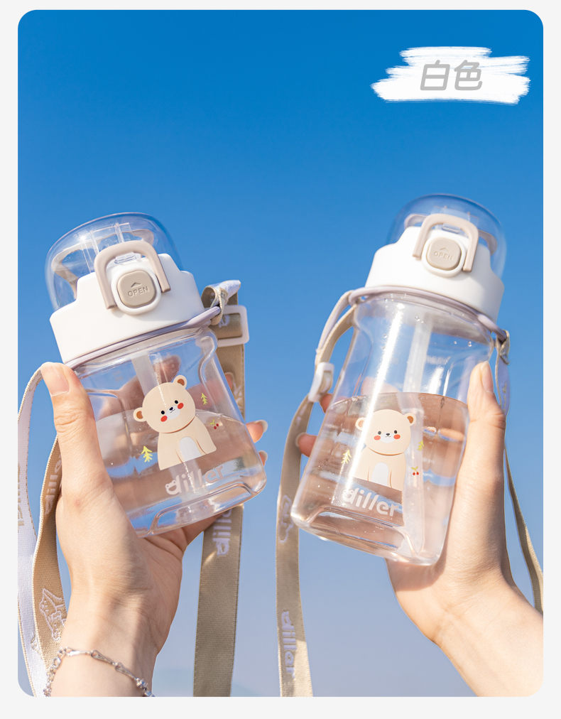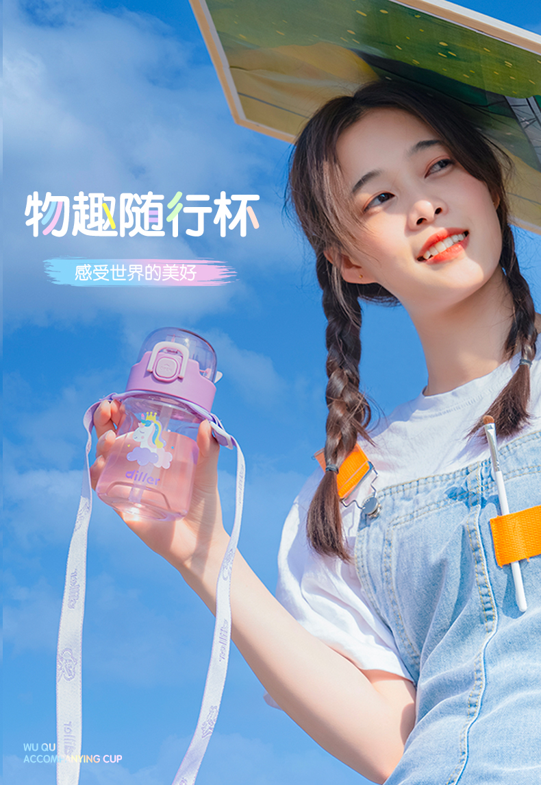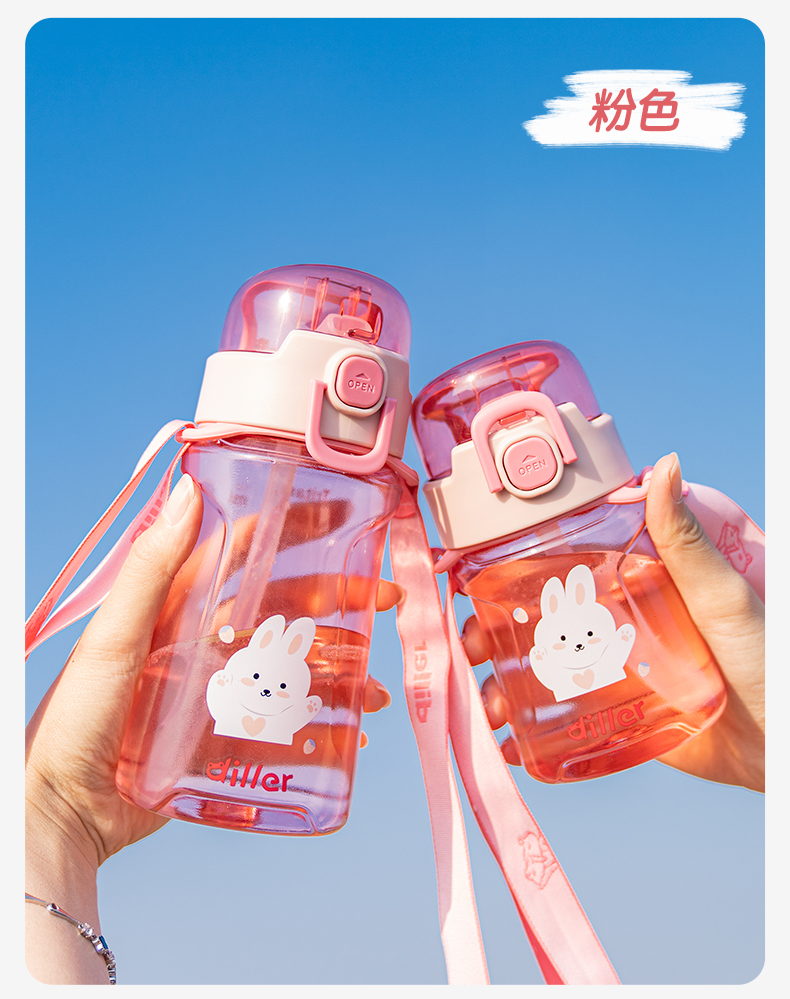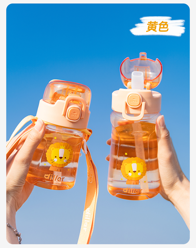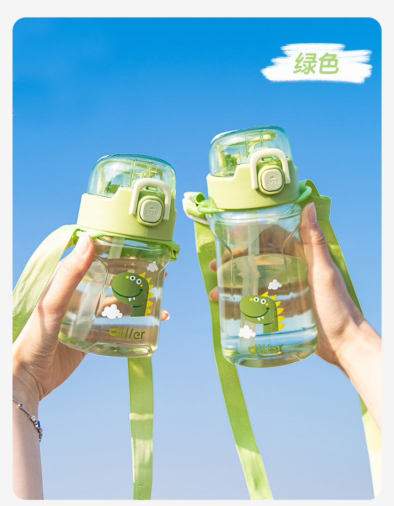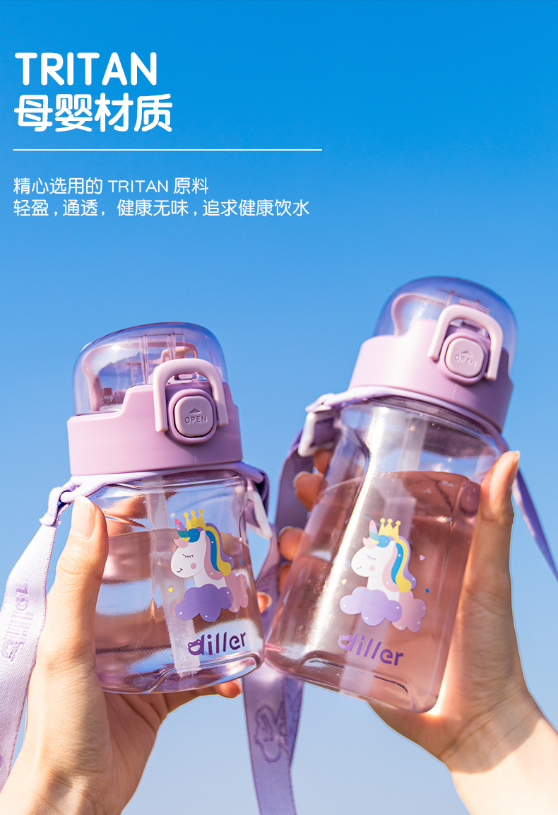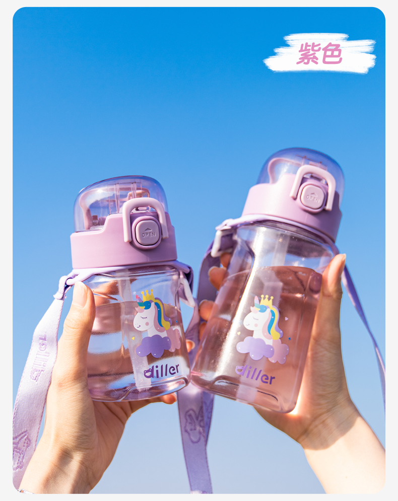 迪乐贝尔儿童吸管杯卡通男女生tritan塑料杯便携户外运动杯背带大容量水壶学生水杯550ML