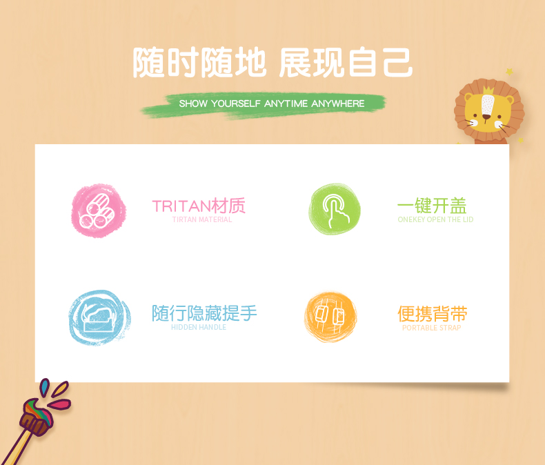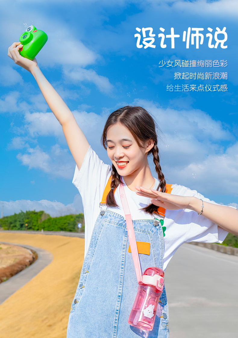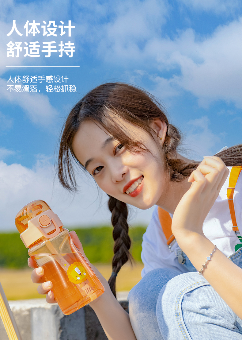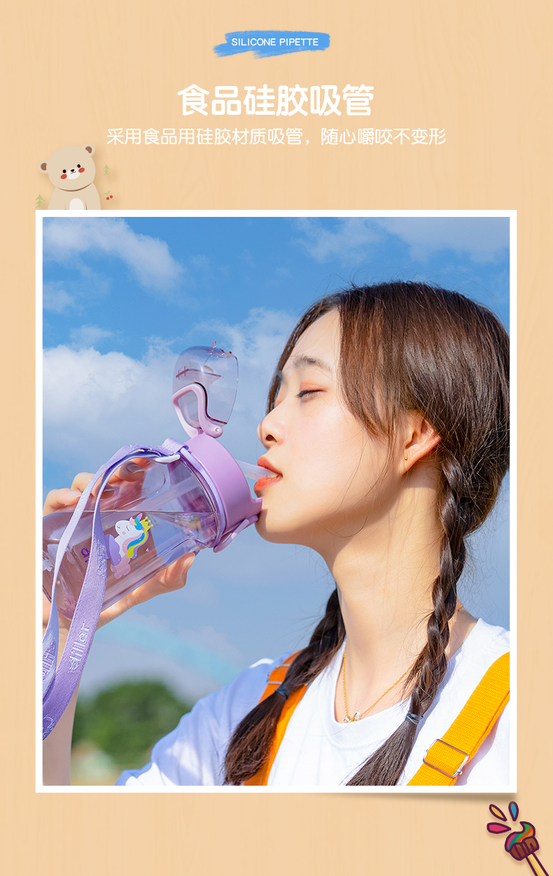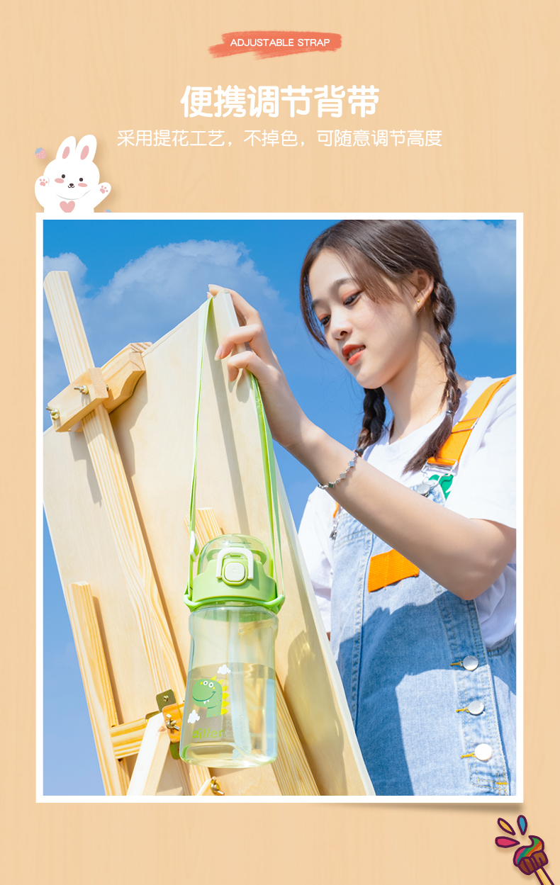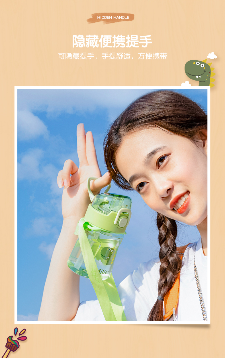 迪乐贝尔儿童吸管杯卡通男女生tritan塑料杯便携户外运动杯背带大容量水壶学生水杯550ML