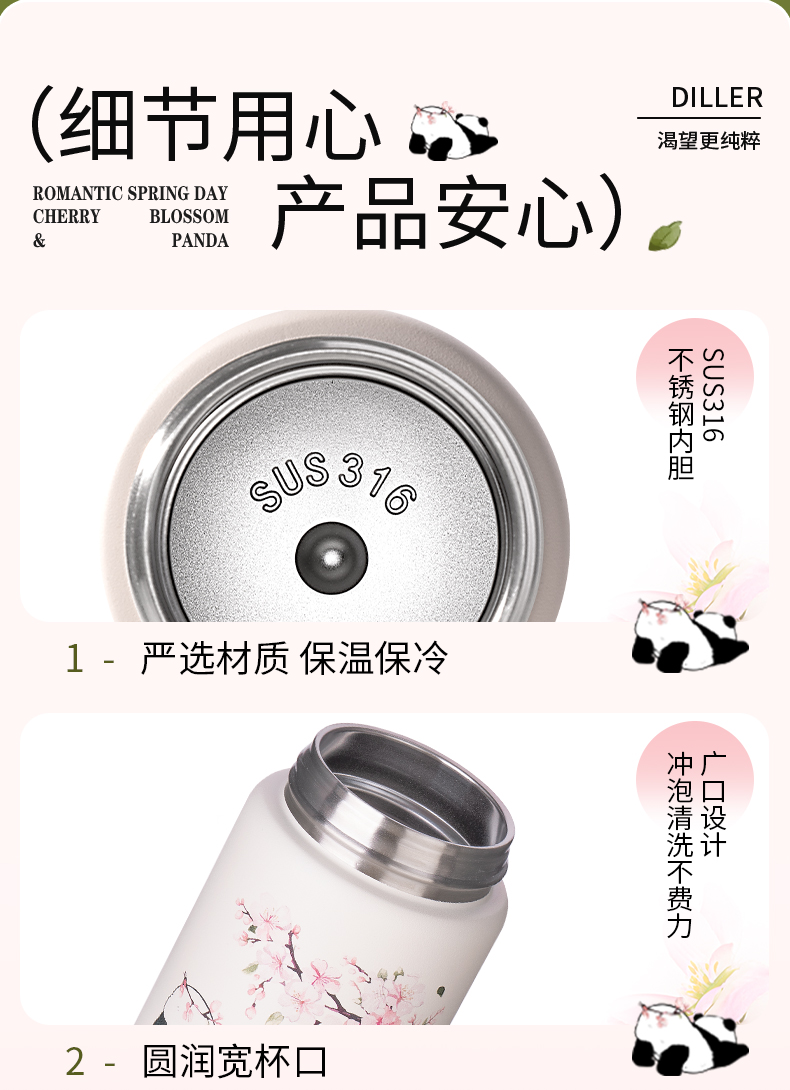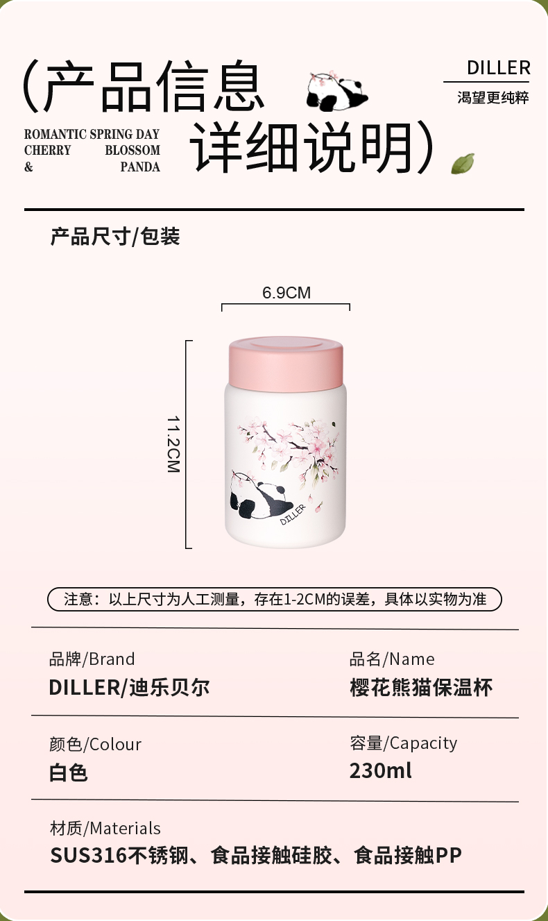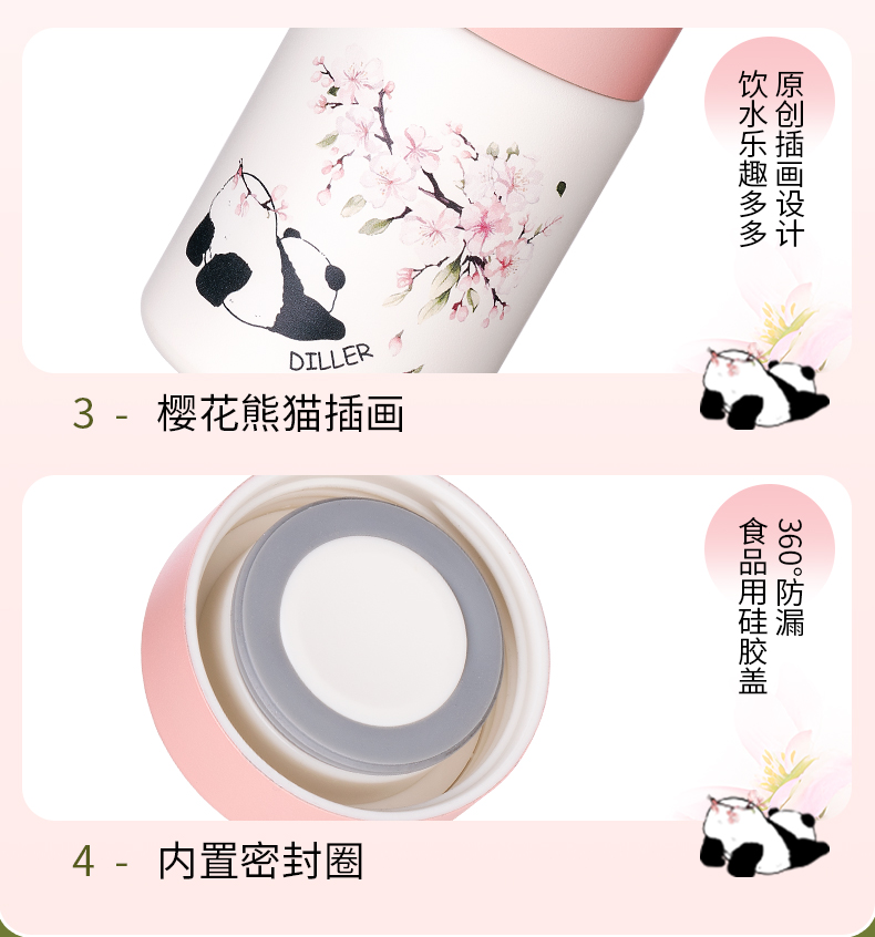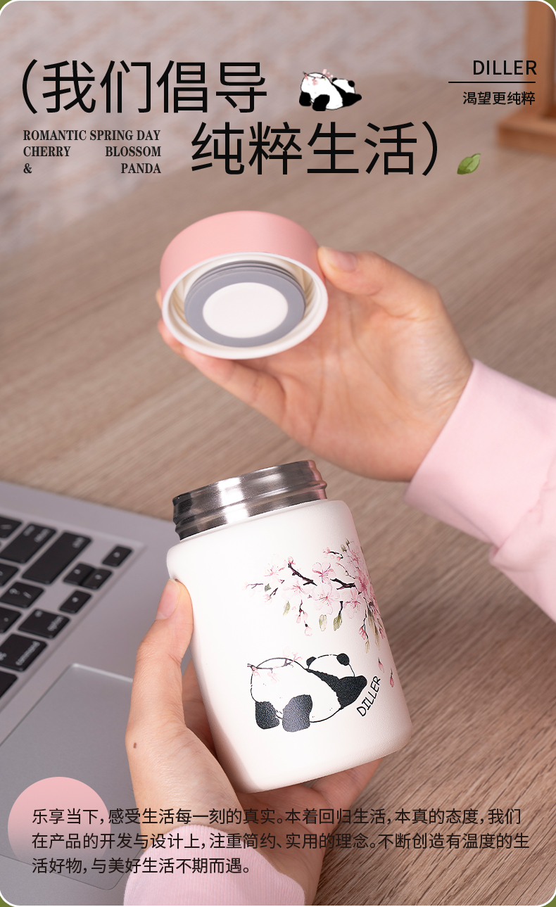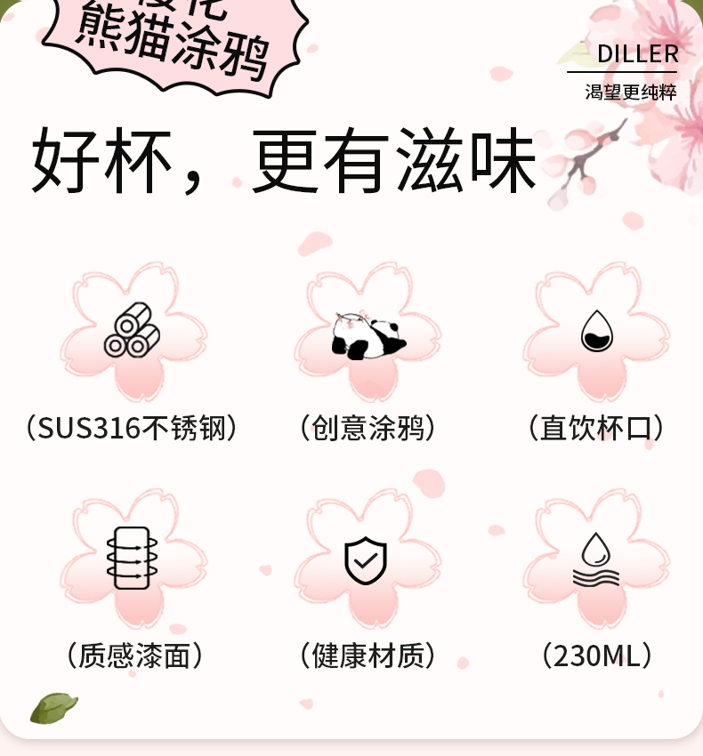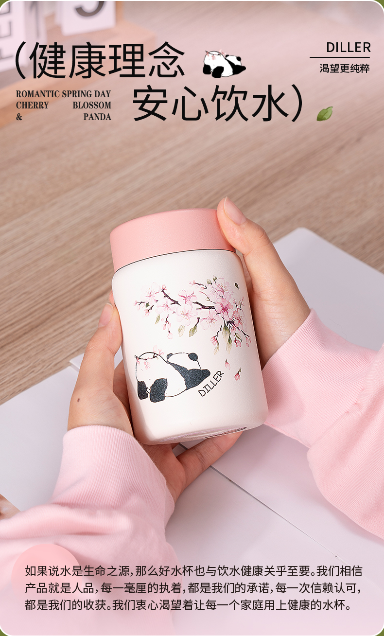 商品名称:迪乐贝尔新款粉色保温杯成人直饮杯大肚杯女士便携小容量可爱樱花喝水杯230ML