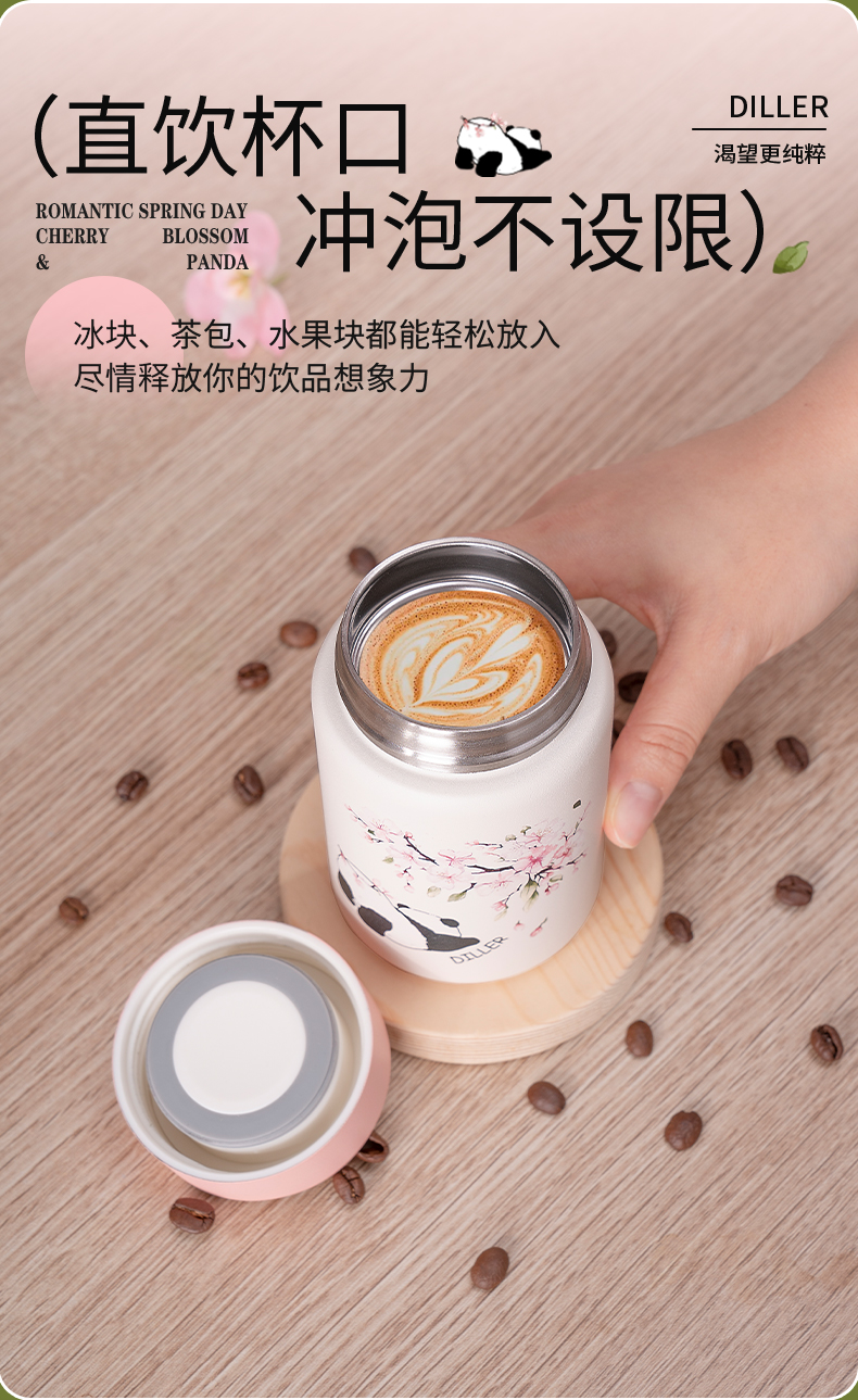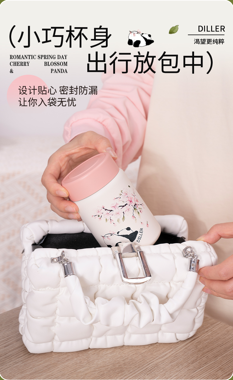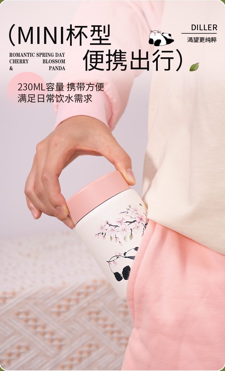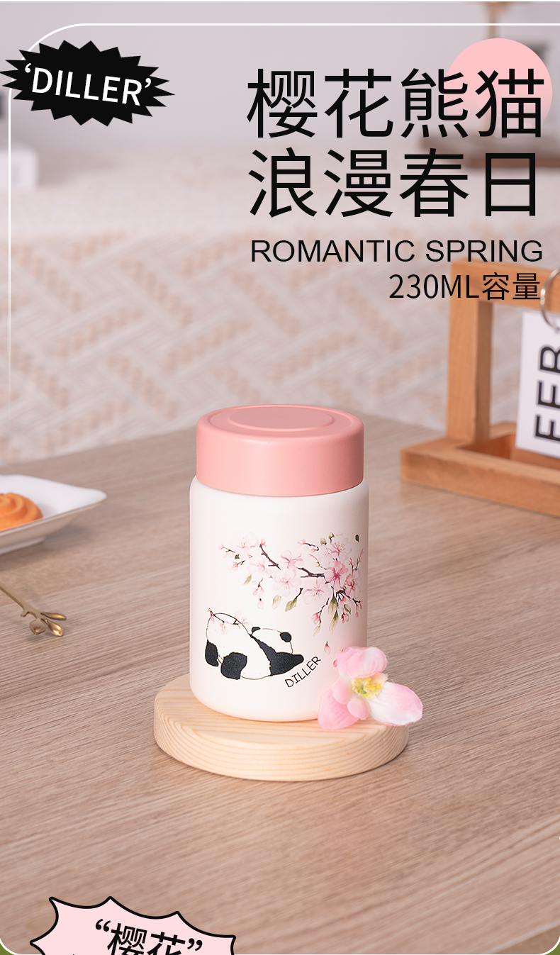 迪乐贝尔新款粉色保温杯成人直饮杯大肚杯女士便携小容量可爱樱花喝水杯230ML