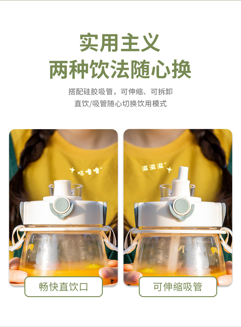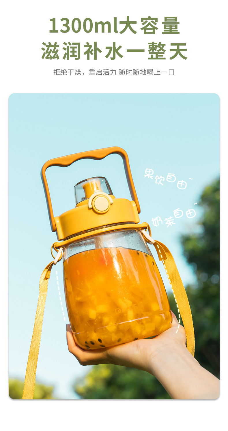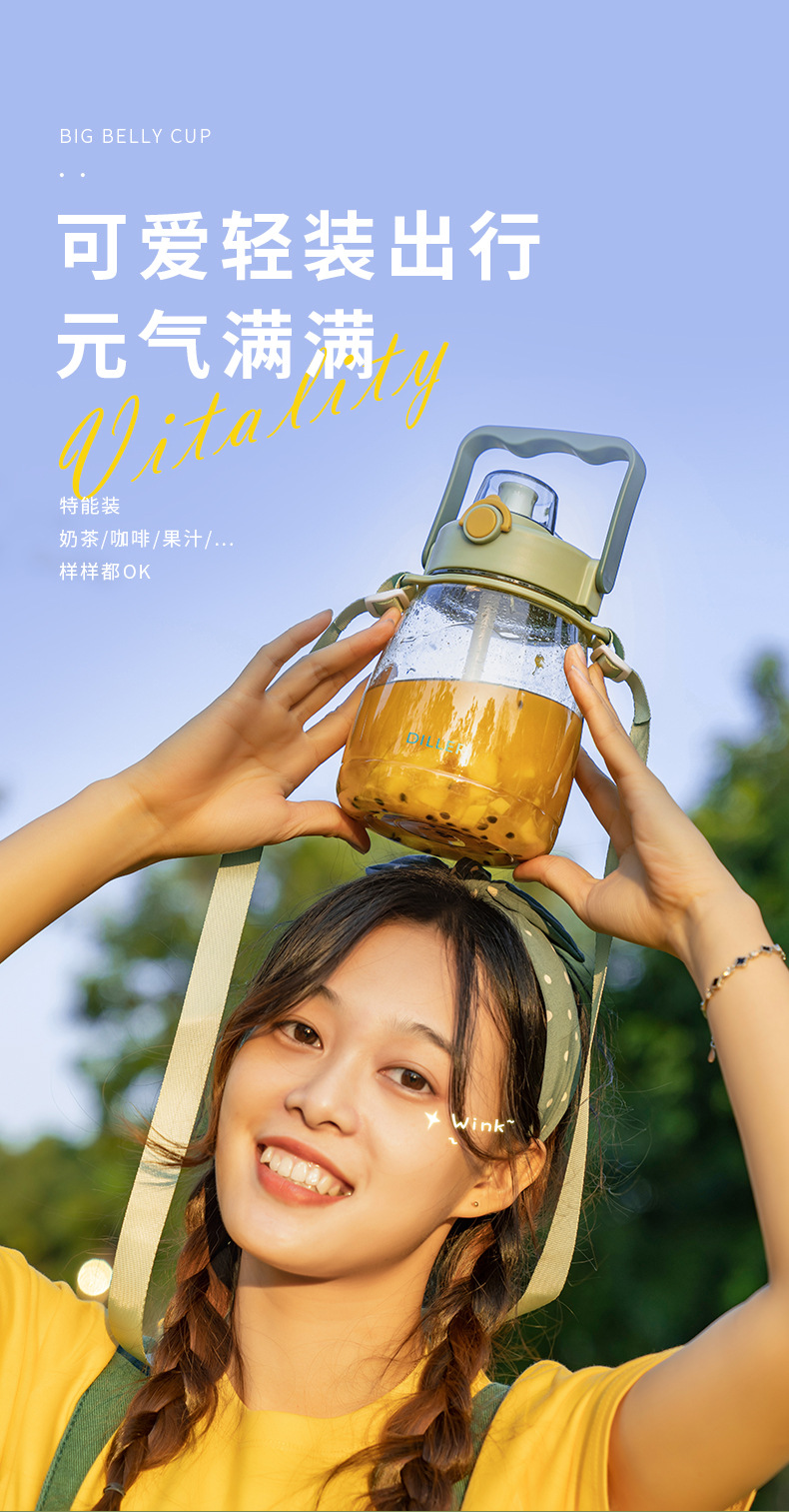 商品名称:迪乐贝尔网红大容量大肚杯吸管杯可爱高颜值成人PC水杯女便携背带水壶学生吸管杯子