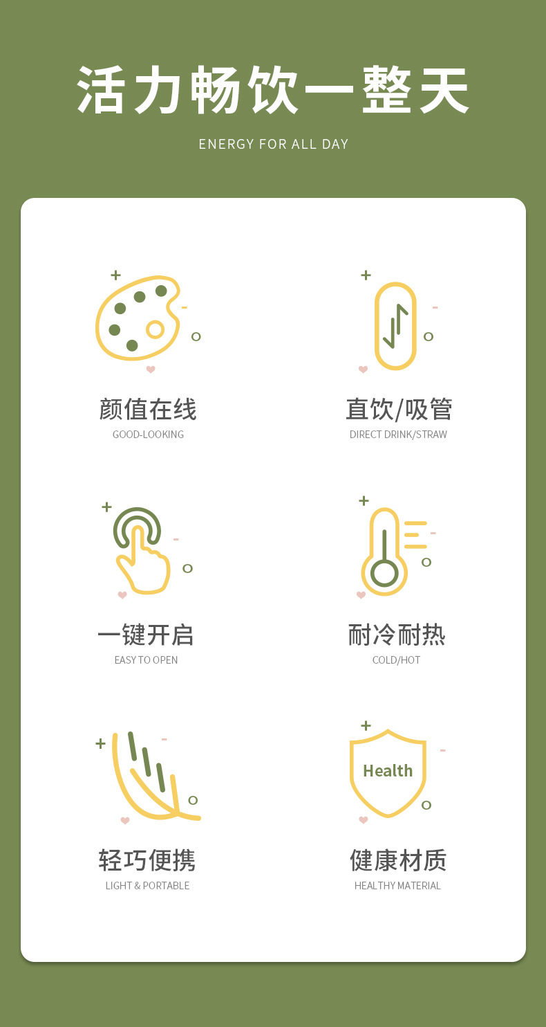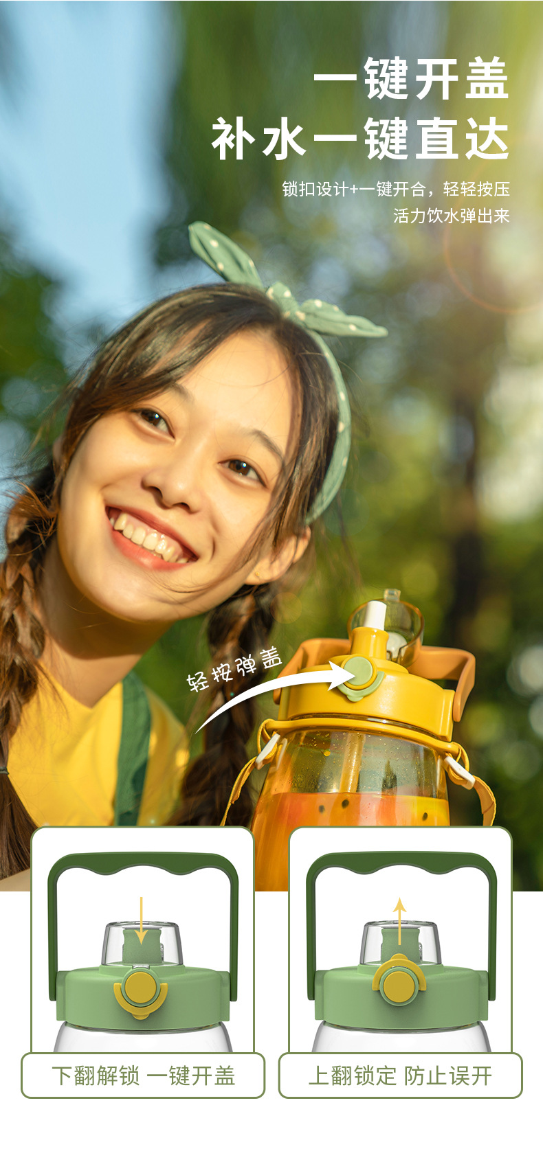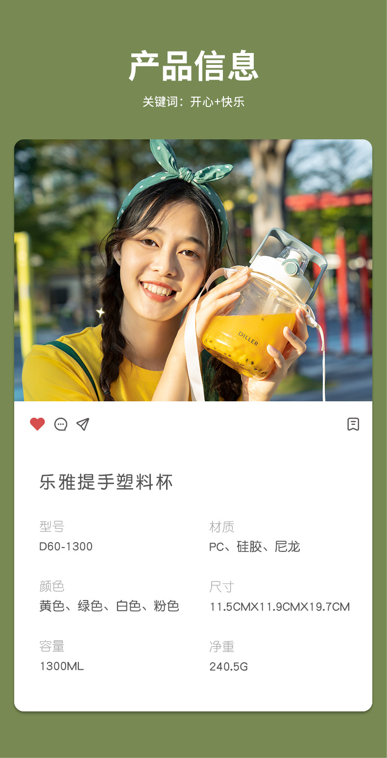商品名称:迪乐贝尔网红大容量大肚杯吸管杯可爱高颜值成人PC水杯女便携背带水壶学生吸管杯子