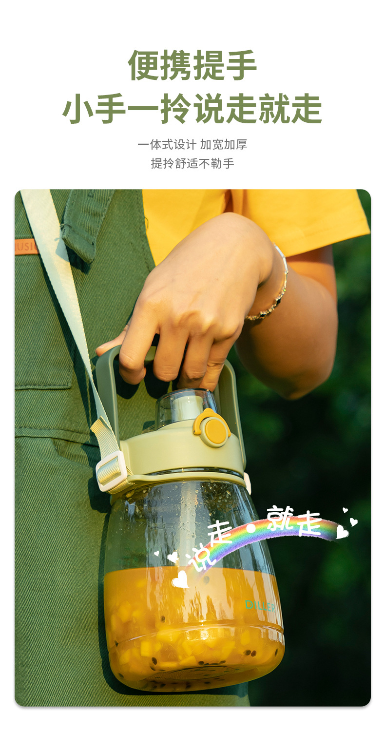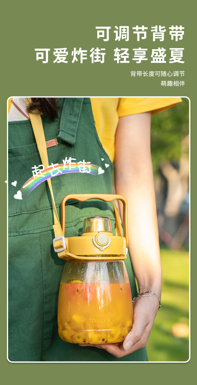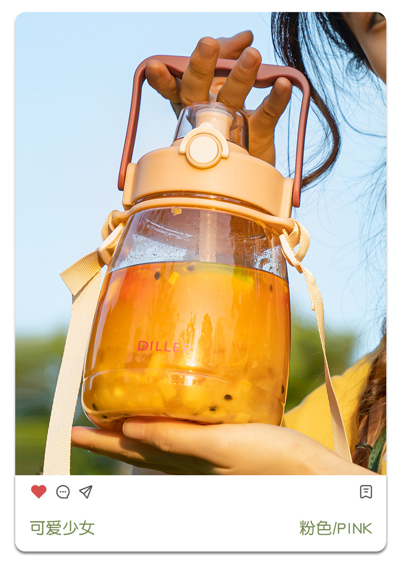 迪乐贝尔网红大容量大肚杯吸管杯可爱高颜值成人PC水杯女便携背带水壶学生吸管杯子