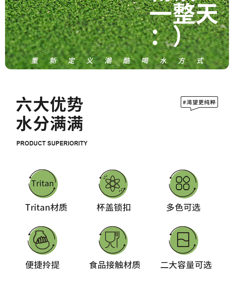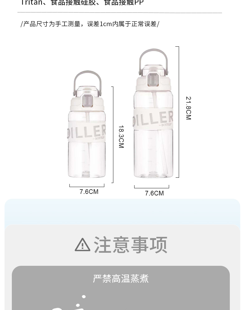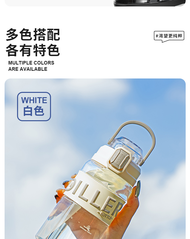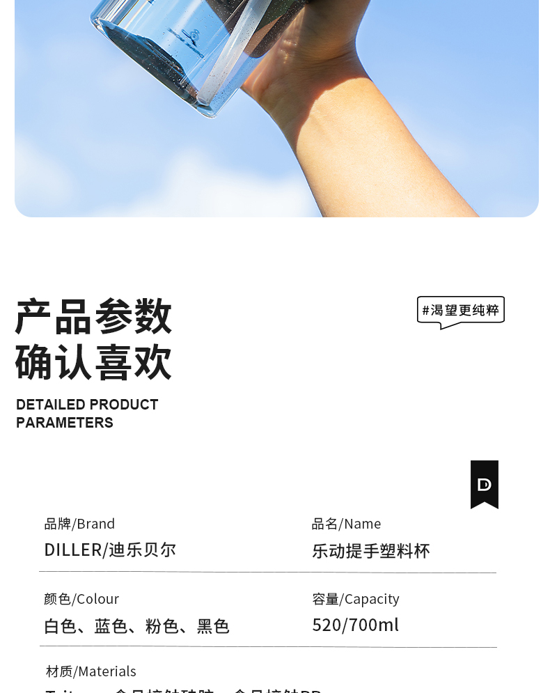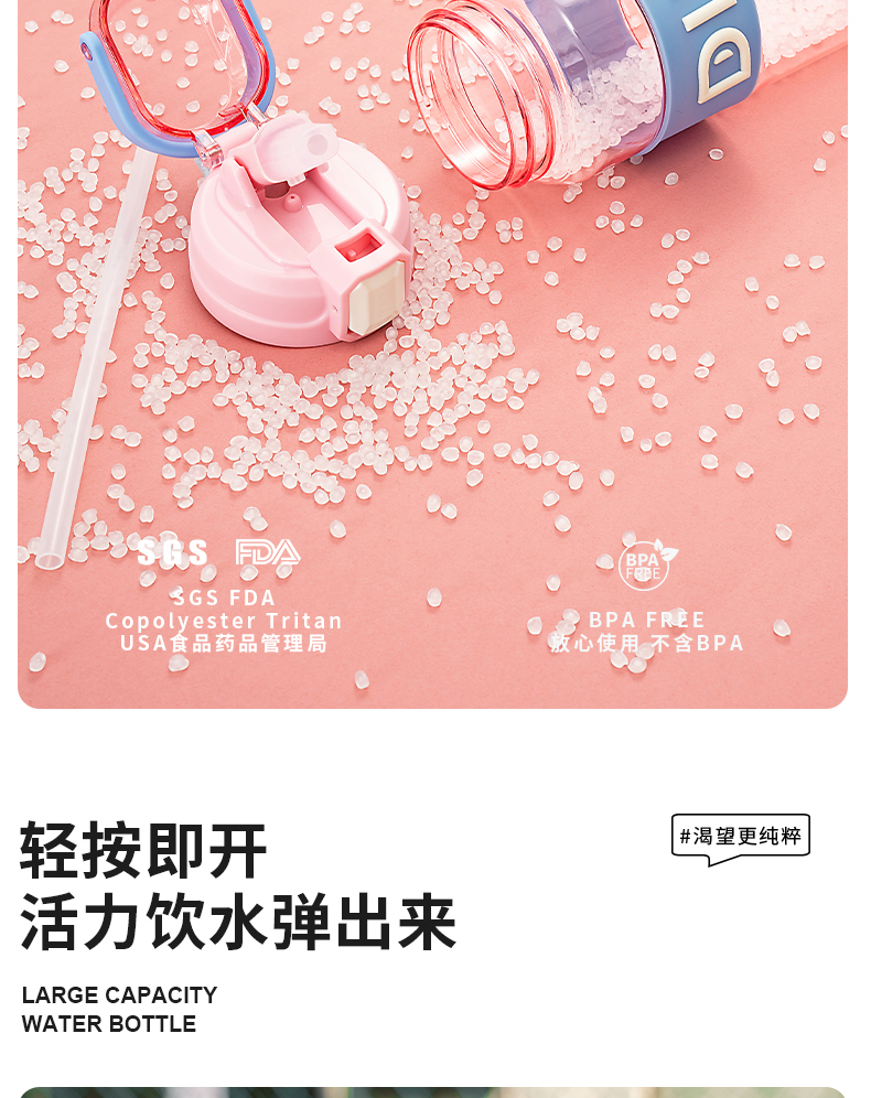 商品名称:迪乐贝尔成人运动吸管水杯tritan塑料杯女生大容量健身水壶夏天耐高温杯子男士健身杯