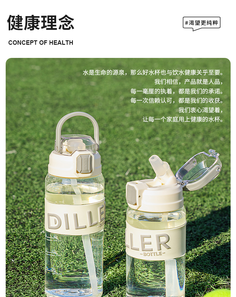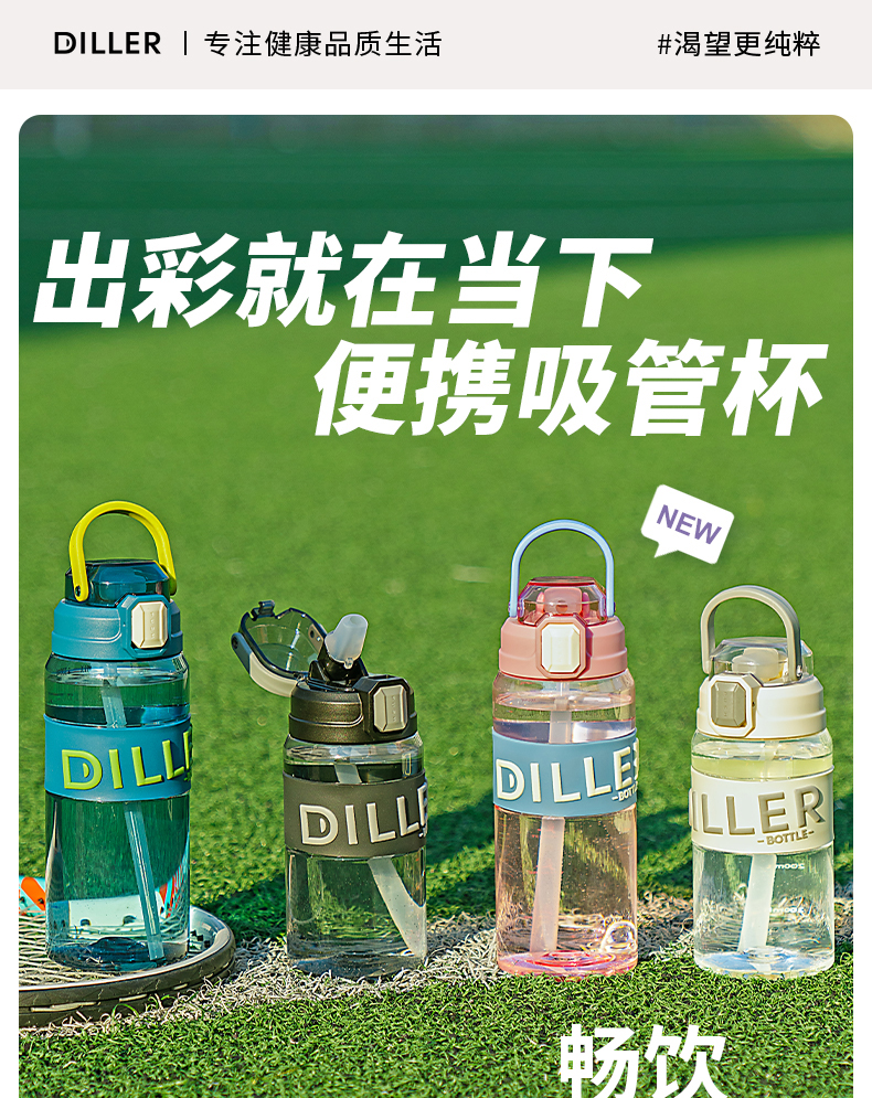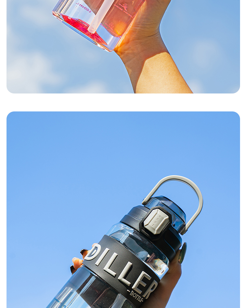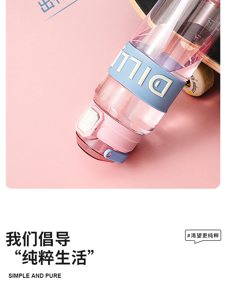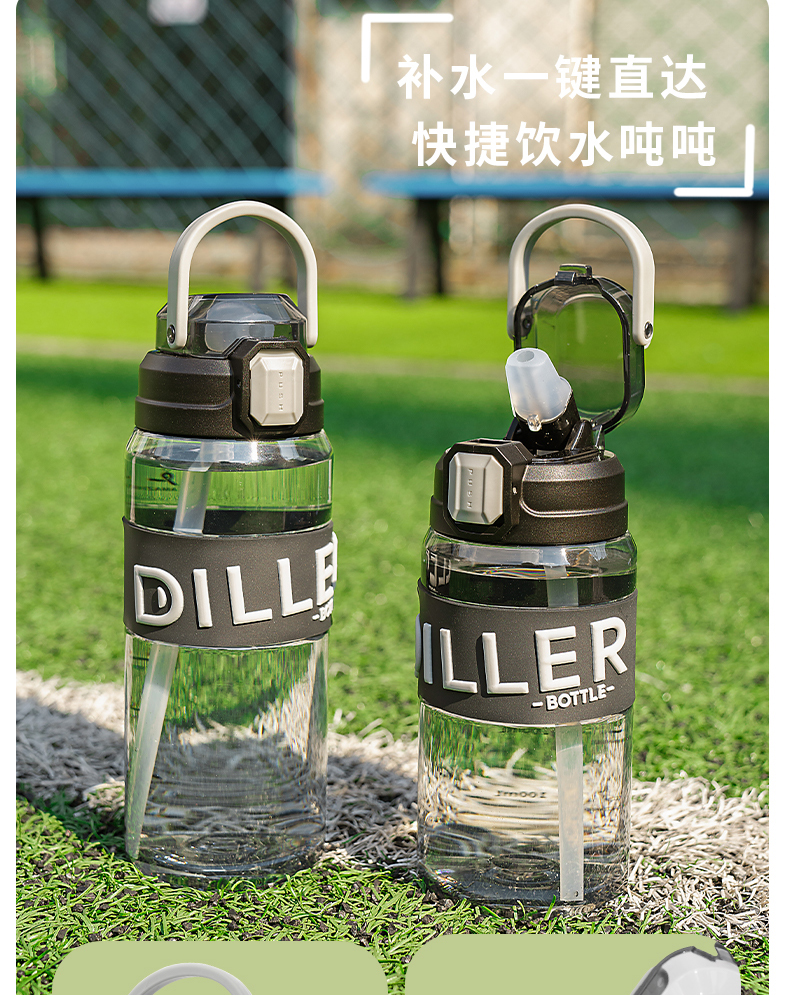 迪乐贝尔成人运动吸管水杯tritan塑料杯女生大容量健身水壶夏天耐高温杯子男士健身杯