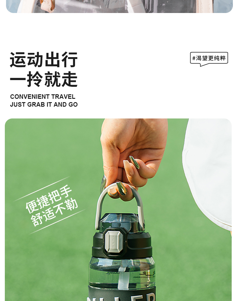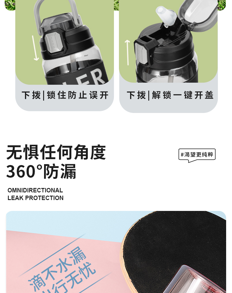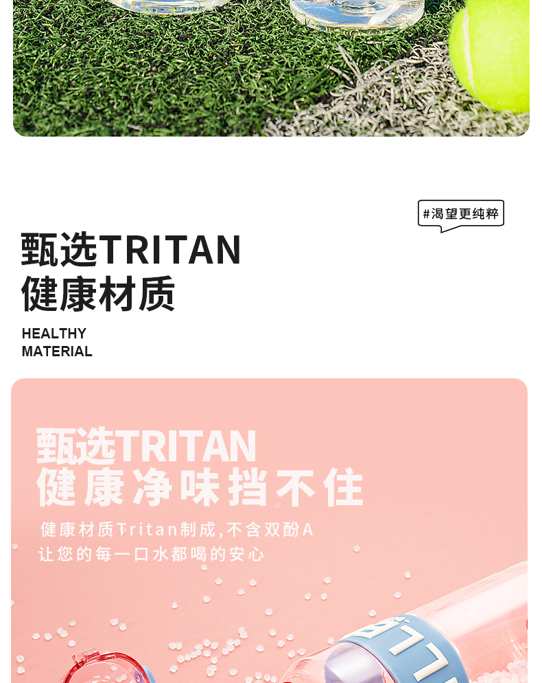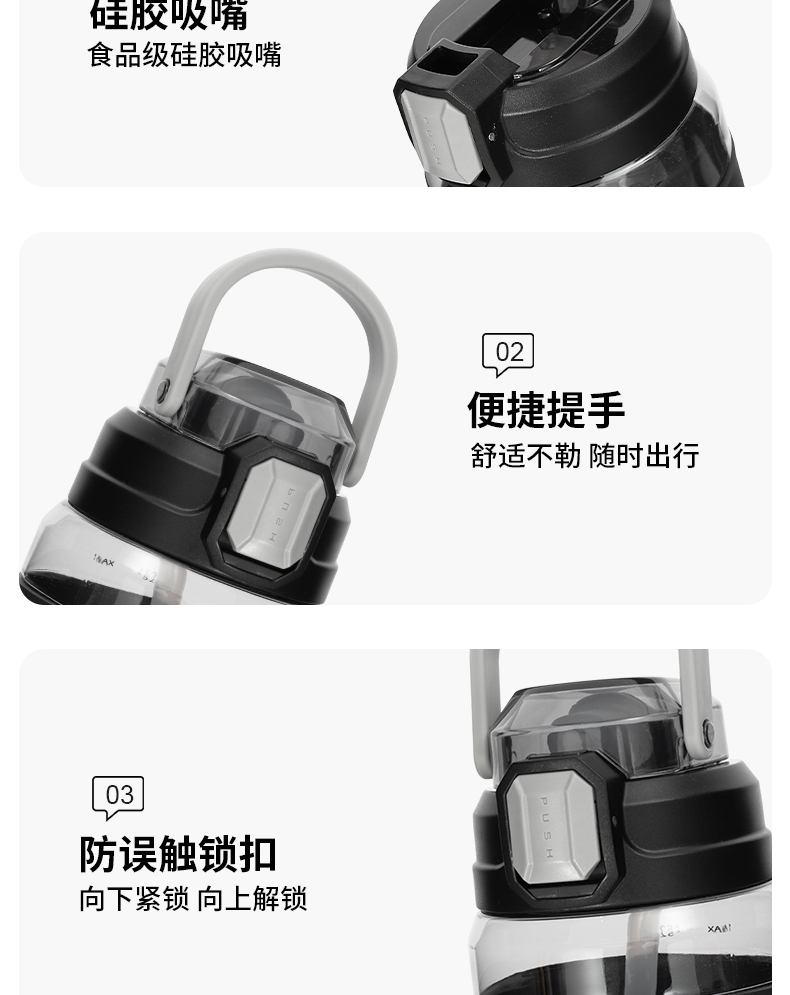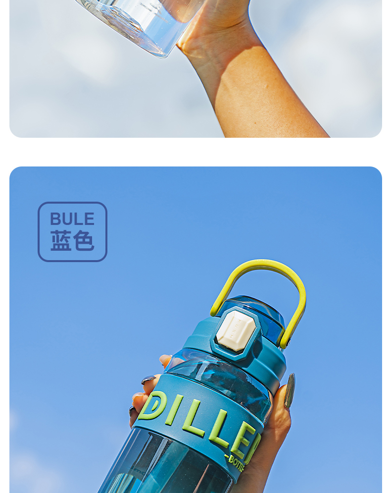 迪乐贝尔成人运动吸管水杯tritan塑料杯女生大容量健身水壶夏天耐高温杯子男士健身杯