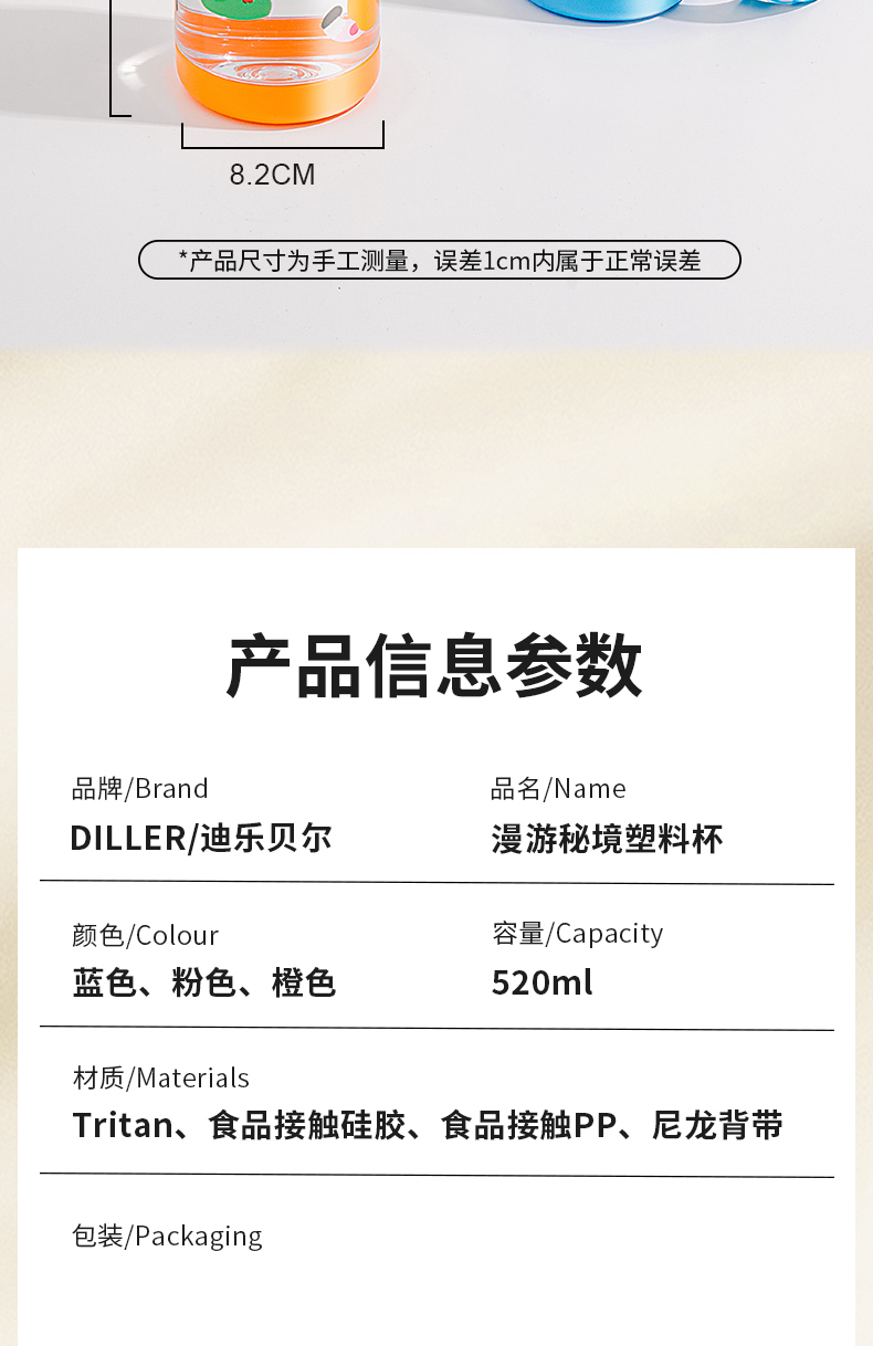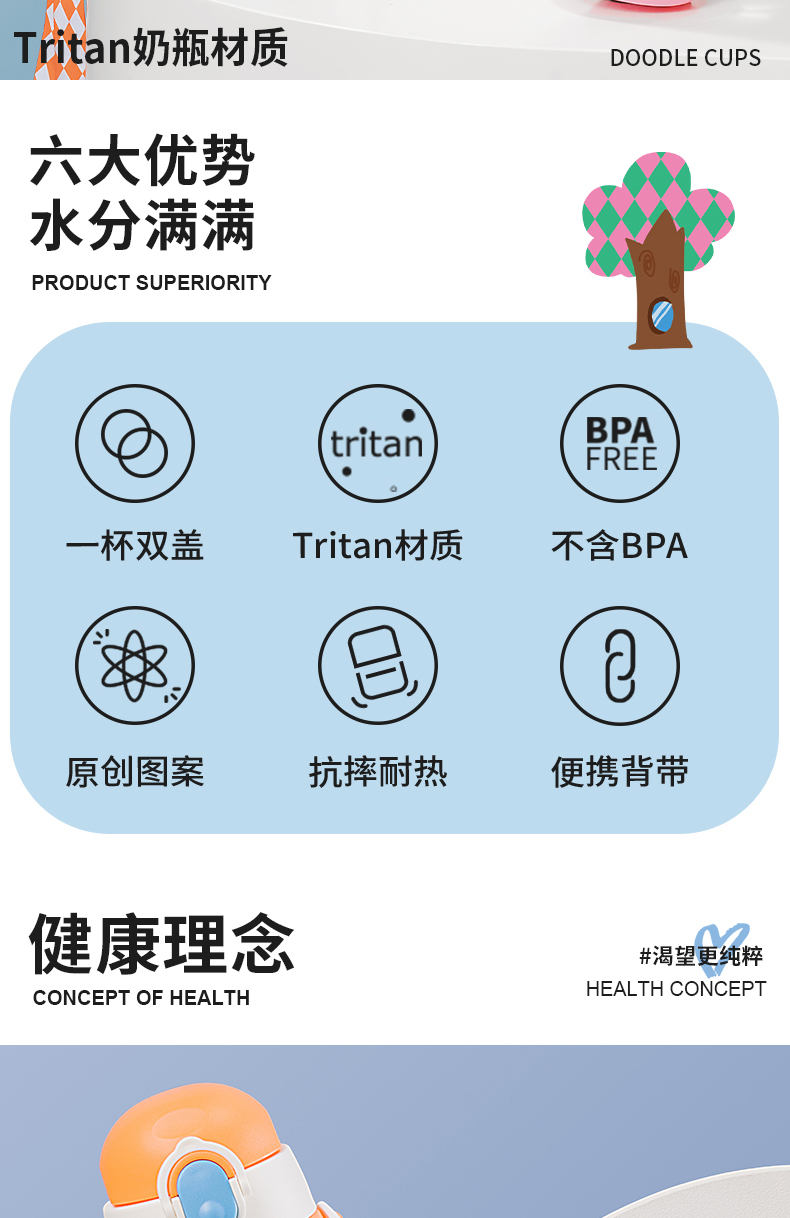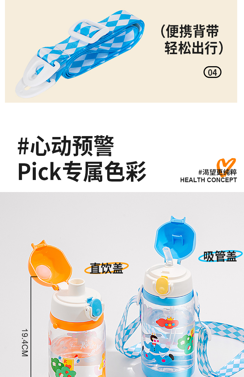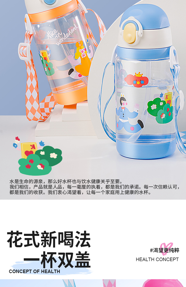 商品名称:迪乐贝尔新品双盖杯夏天儿童吸管杯小学生放书包直饮杯学校喝水杯饮水杯喝水壶塑料杯