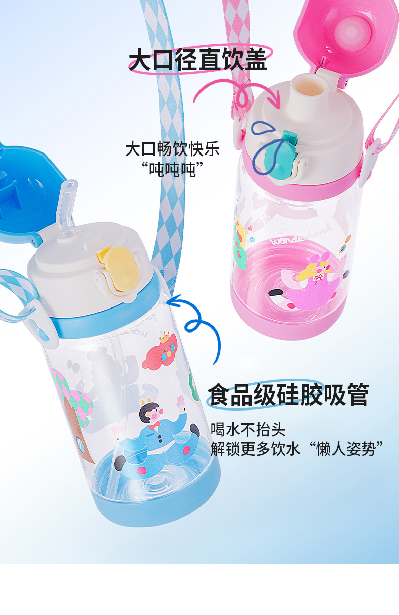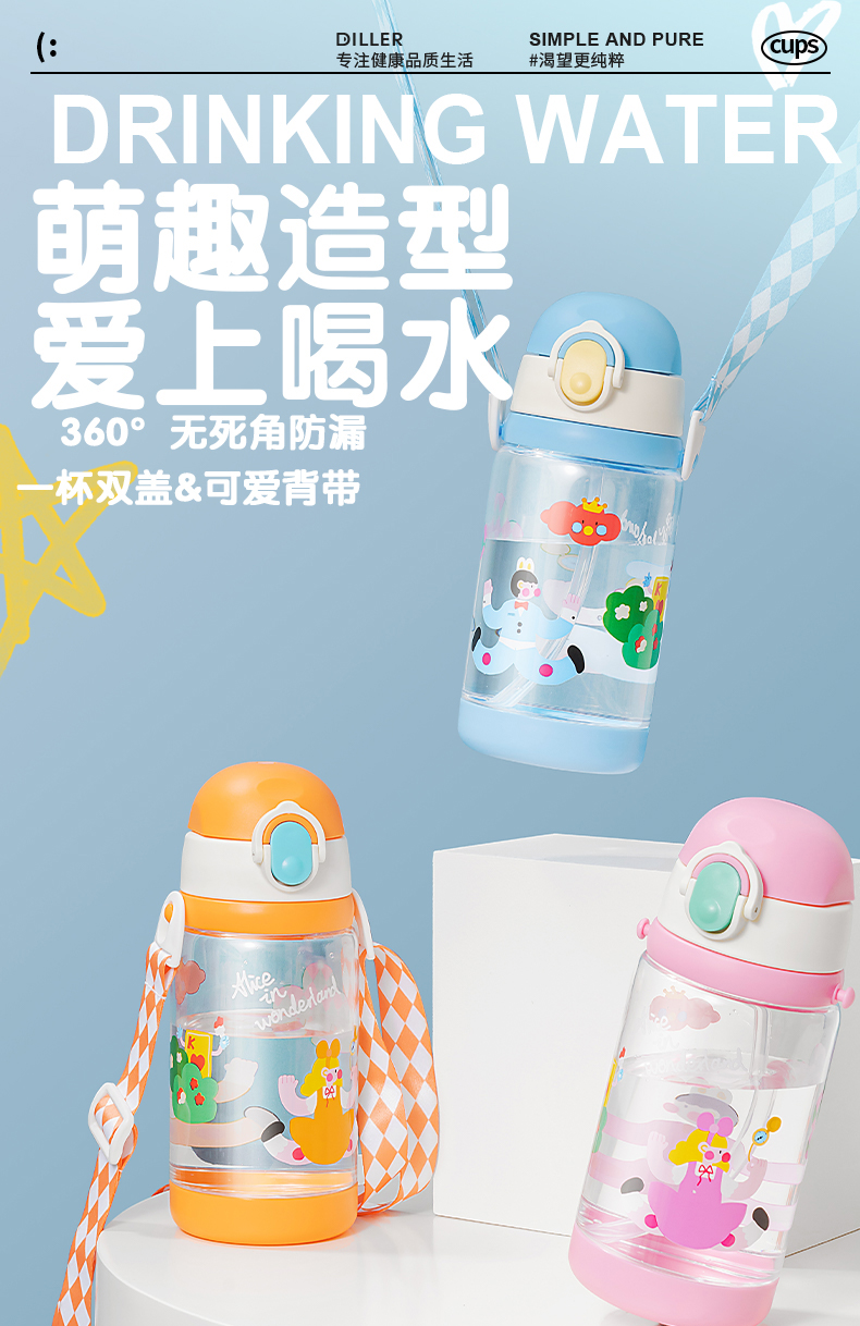 迪乐贝尔新品双盖杯夏天儿童吸管杯小学生放书包直饮杯学校喝水杯饮水杯喝水壶塑料杯
