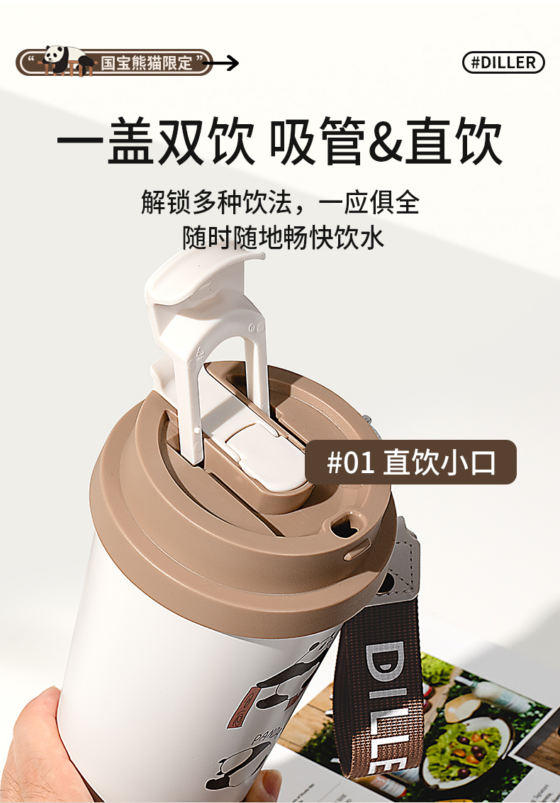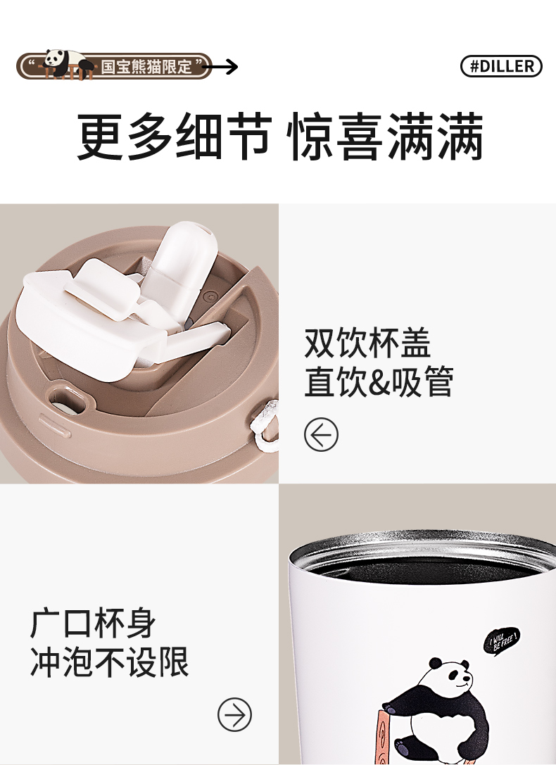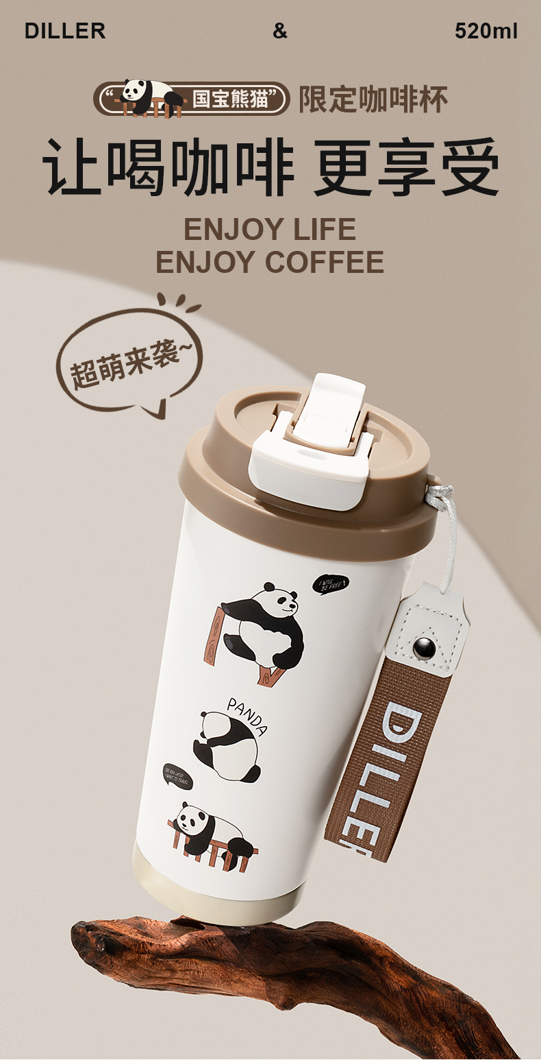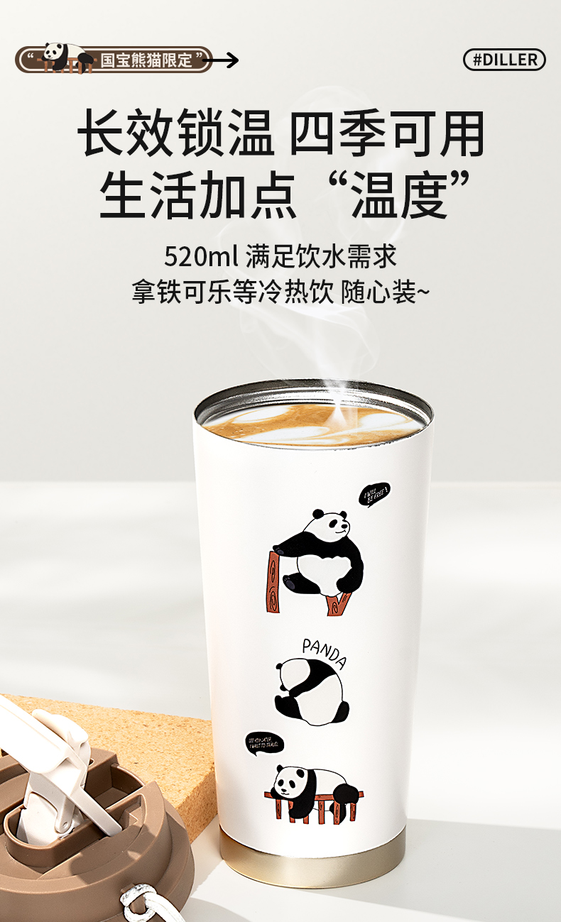 商品名称:迪乐贝尔新品美拉德熊猫保温杯男女生可爱水杯熊猫纪念品伴手礼杯子成人双饮杯咖啡杯