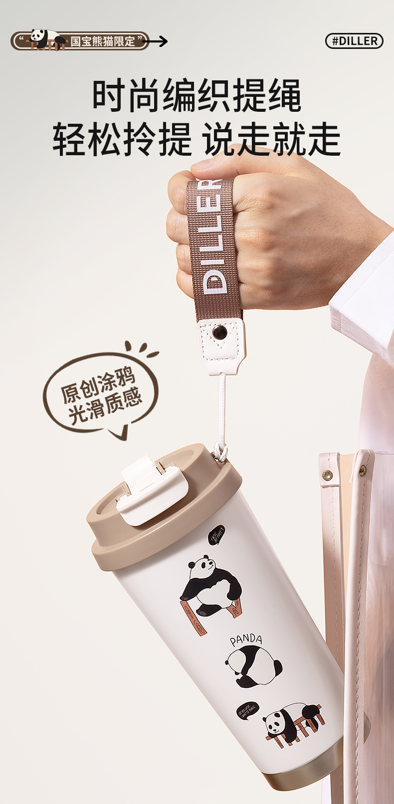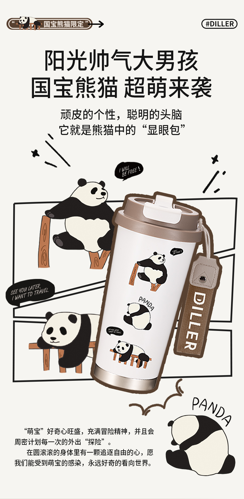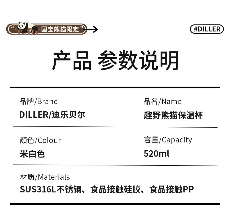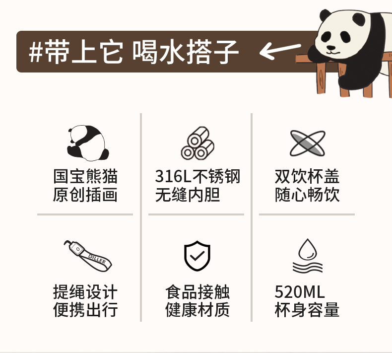 商品名称:迪乐贝尔新品美拉德熊猫保温杯男女生可爱水杯熊猫纪念品伴手礼杯子成人双饮杯咖啡杯