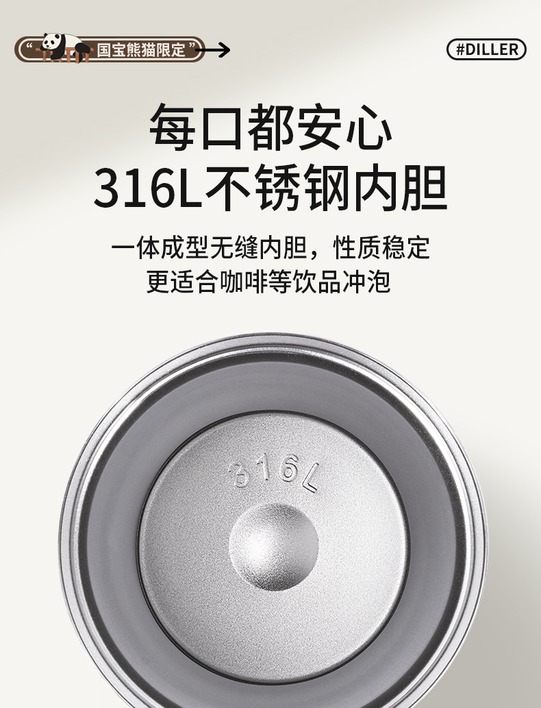 迪乐贝尔新品美拉德熊猫保温杯男女生可爱水杯熊猫纪念品伴手礼杯子成人双饮杯咖啡杯