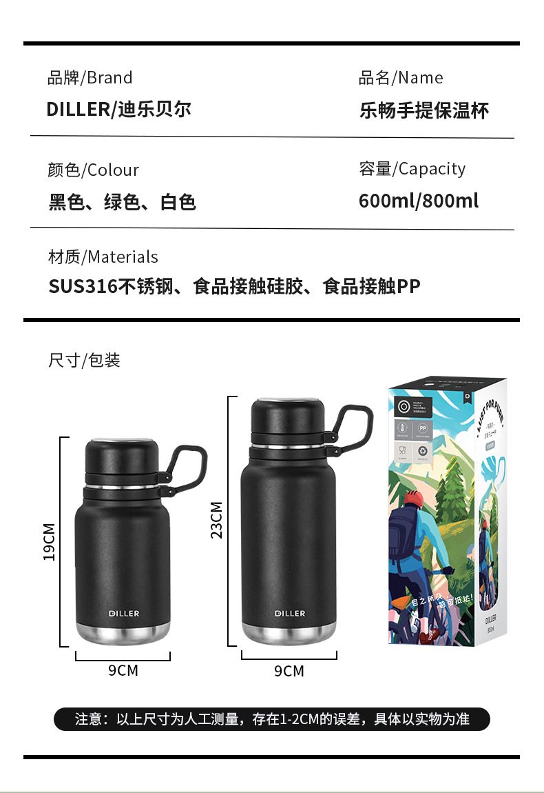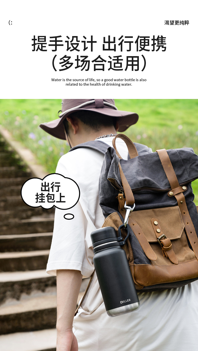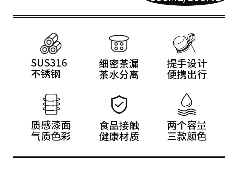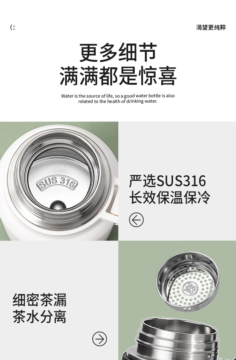 商品名称:迪乐贝尔成人316不锈钢直饮杯保温杯车载大容量户外运动水壶茶水分离泡茶杯子学生水杯