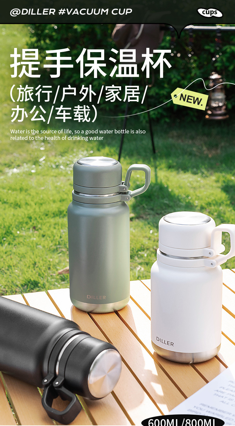 迪乐贝尔成人316不锈钢直饮杯保温杯车载大容量户外运动水壶茶水分离泡茶杯子学生水杯
