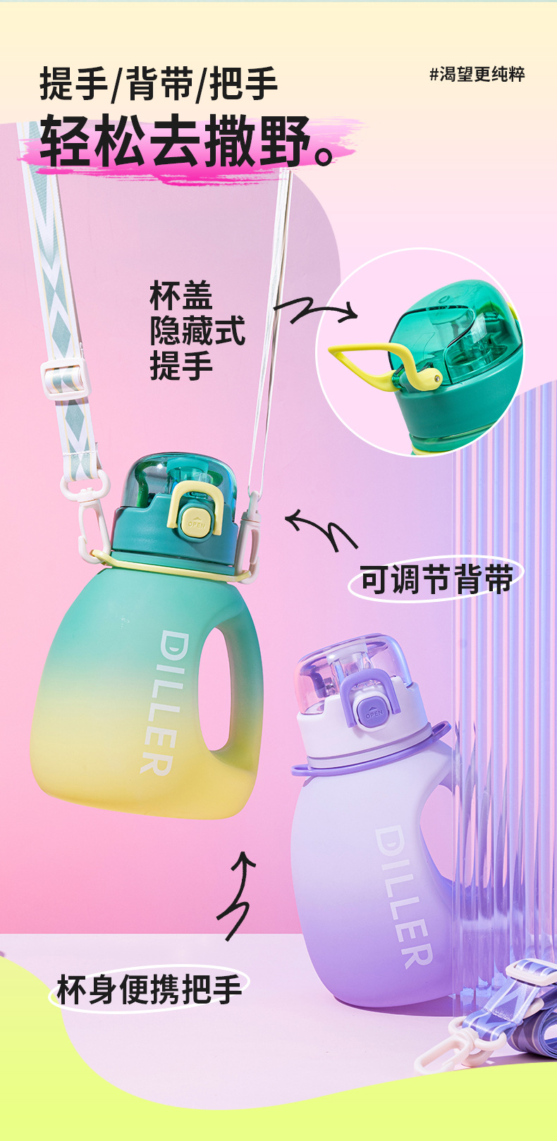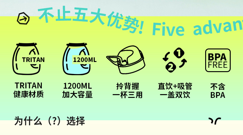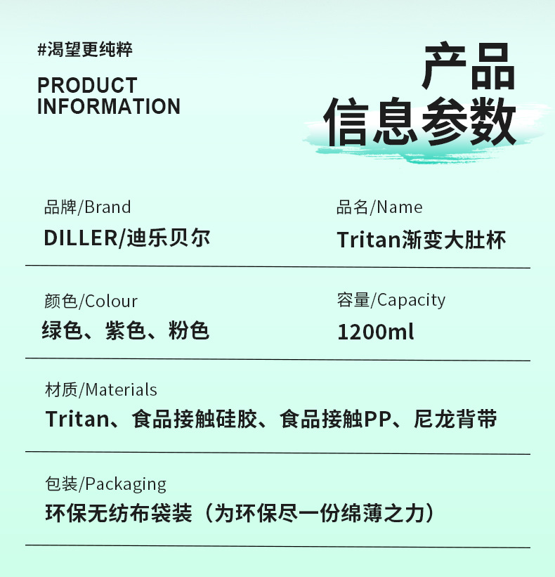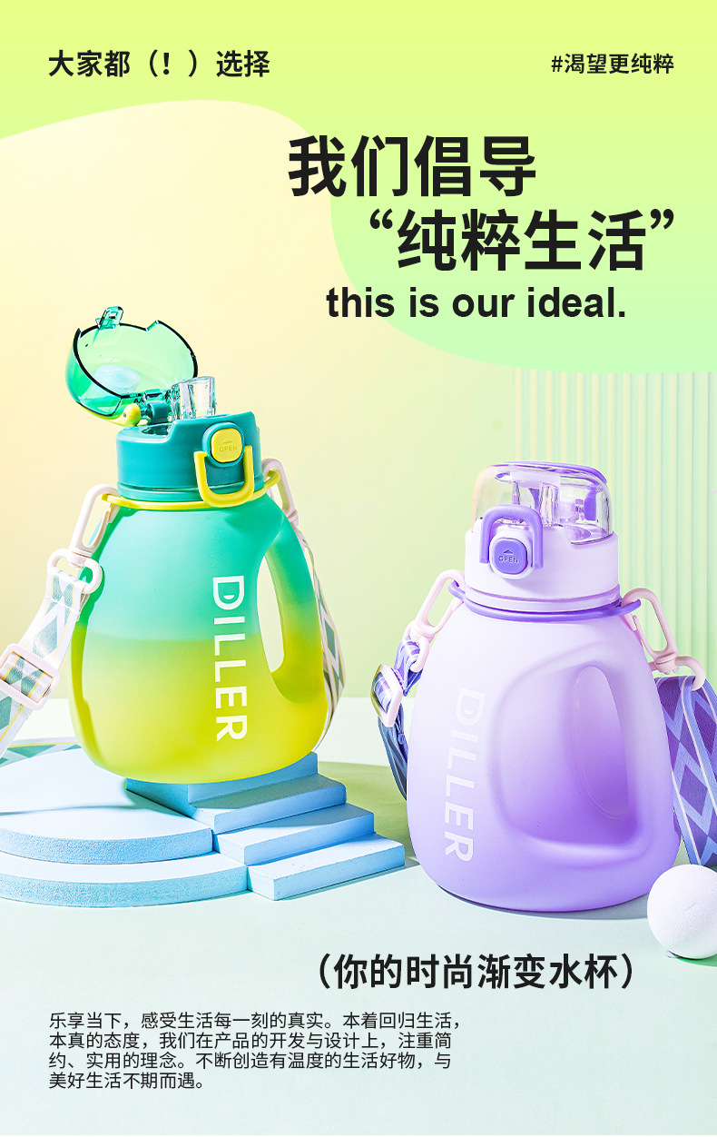 商品名称:迪乐贝尔成人大容量吸管水杯男生女生运动水壶便携tritan太空杯夏季健身顿顿桶1200ML
