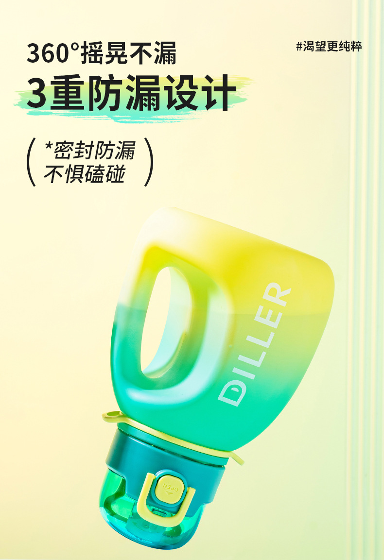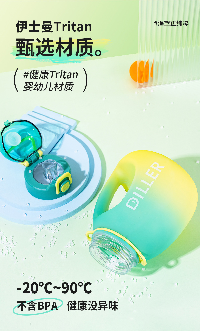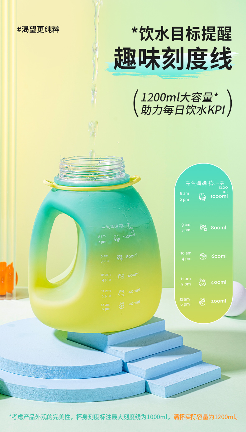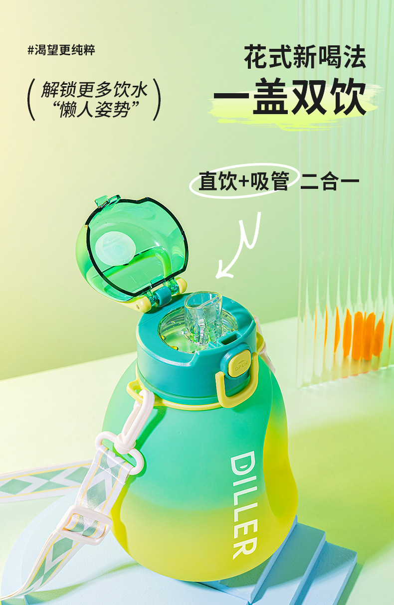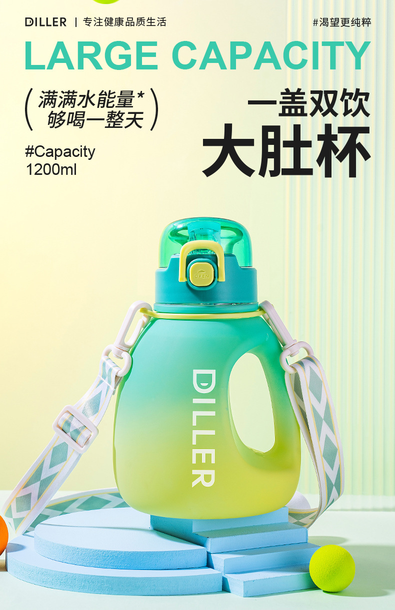 迪乐贝尔成人大容量吸管水杯男生女生运动水壶便携tritan太空杯夏季健身顿顿桶1200ML