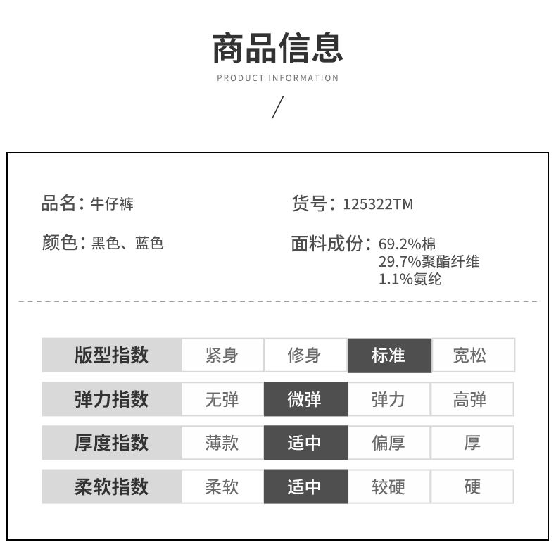 商品名称:曼西尔奴男士中腰弹力显瘦修身百搭日常通勤牛仔裤125322TM