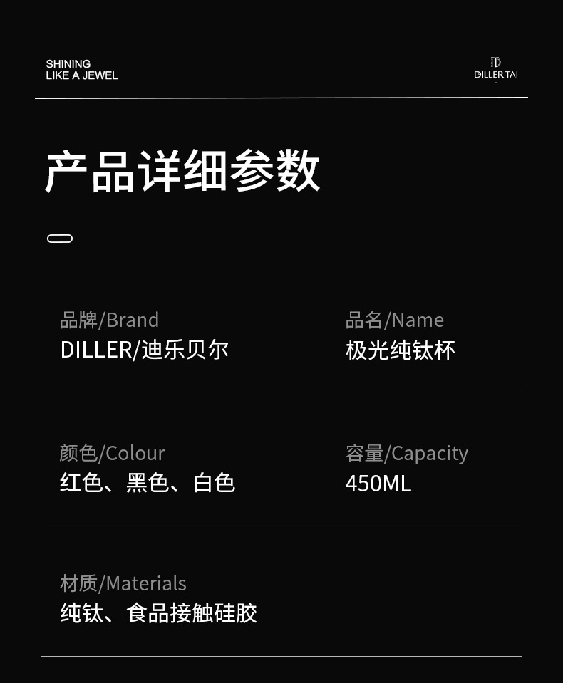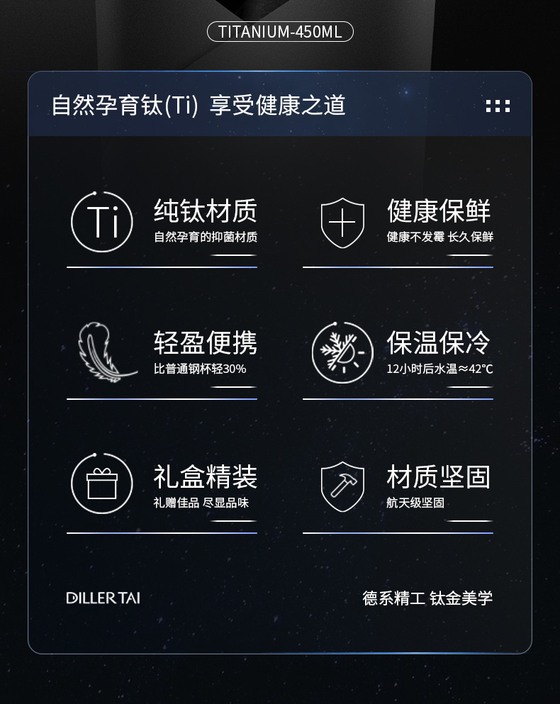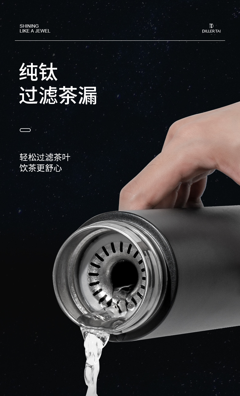 商品名称:【礼盒装】迪乐贝尔新款纯钛保温杯茶杯高端商务水杯新年送礼品礼物男士泡茶杯450ML