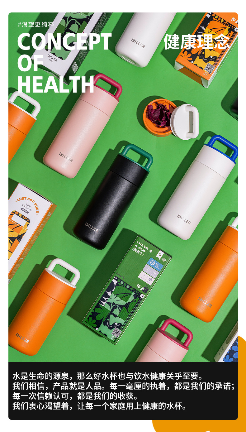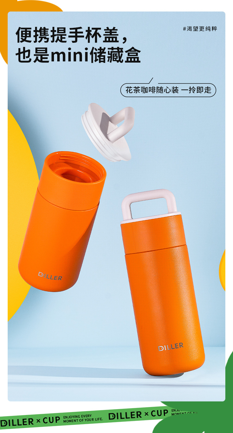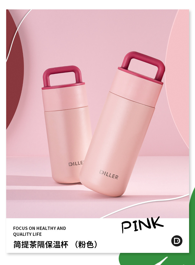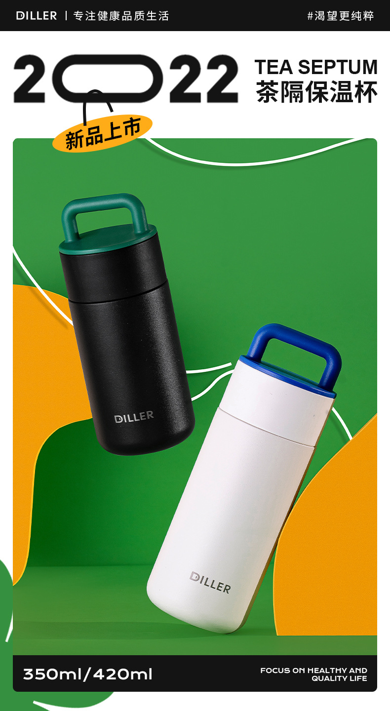 商品名称:迪乐贝尔新款带茶隔保温杯成人高颜值316不锈钢直饮杯女士花茶杯学生可爱便携水杯礼品