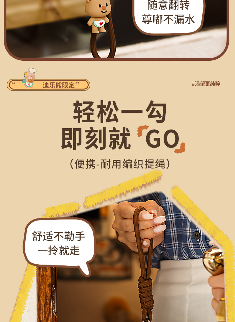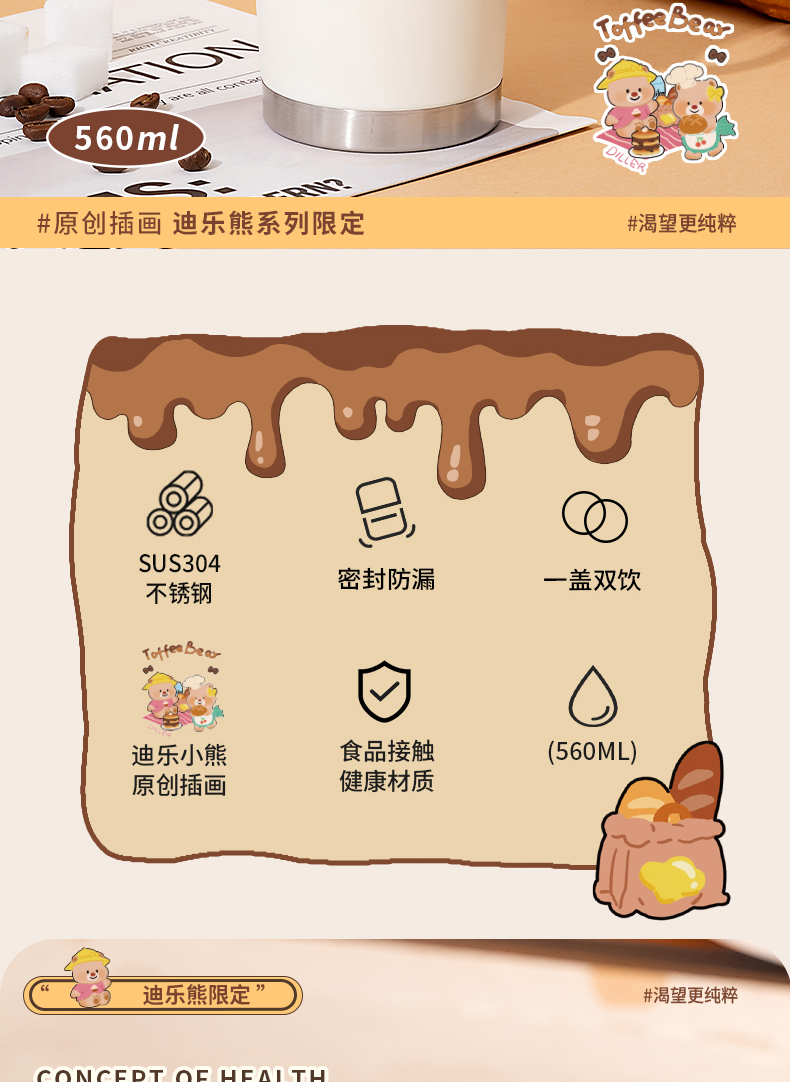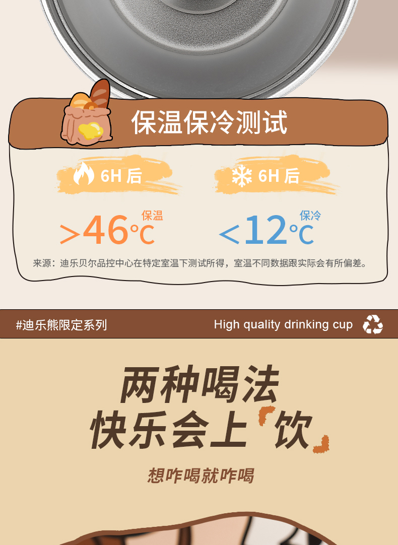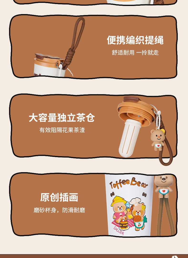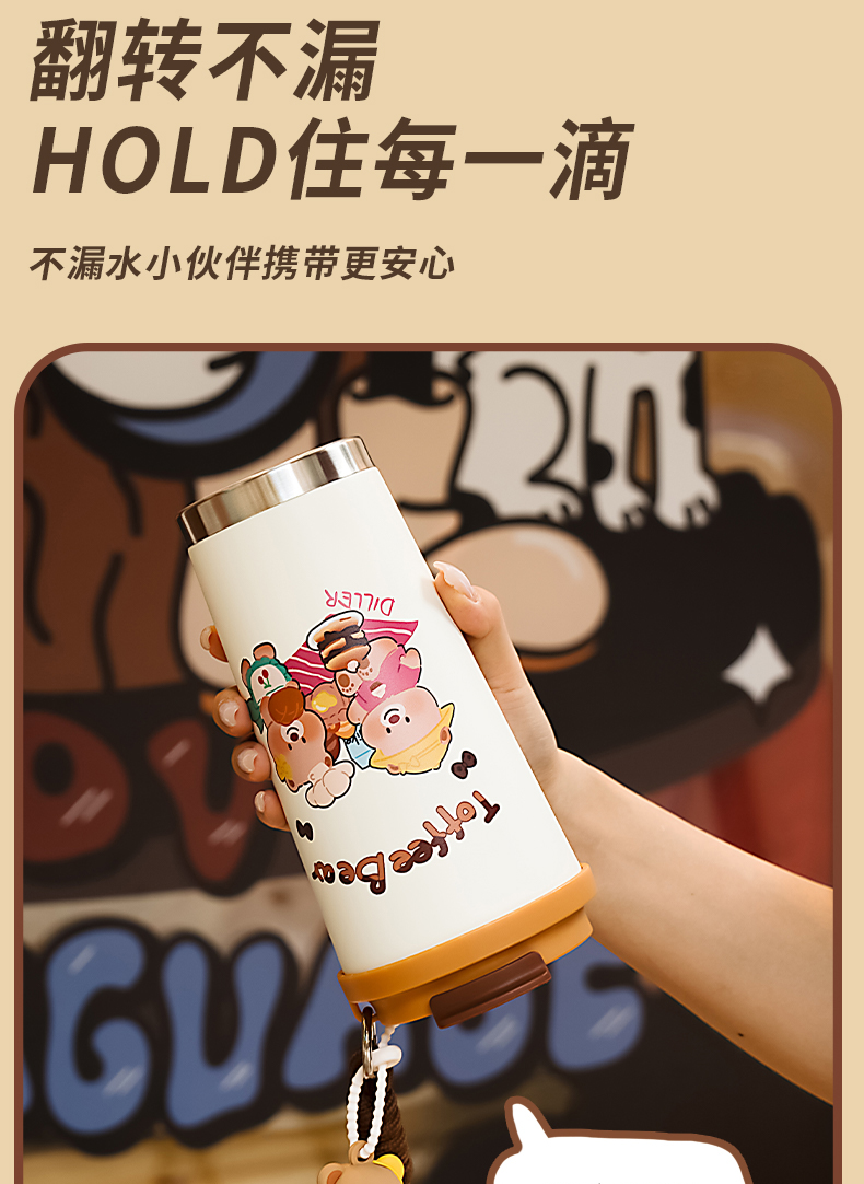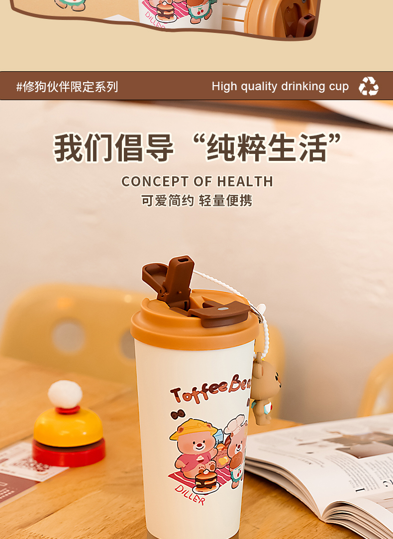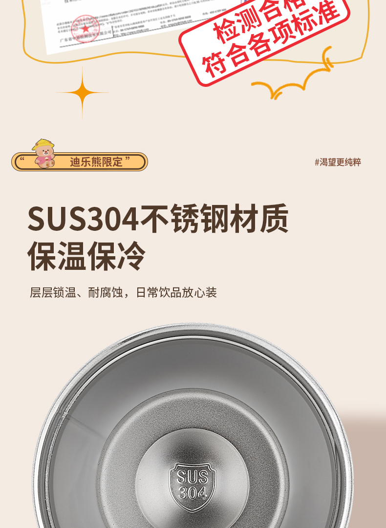 迪乐贝尔新品小熊系列水杯学生高颜值咖啡杯办公室吸管杯304不锈钢办公室女士花茶杯