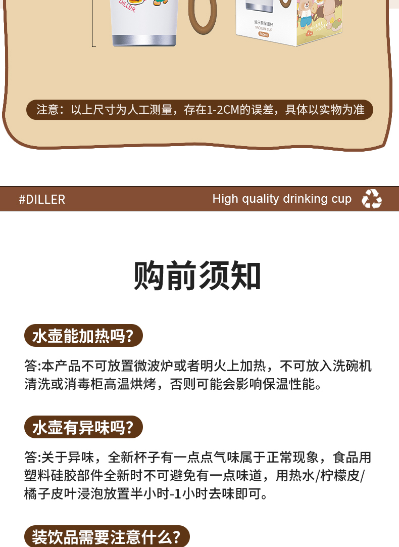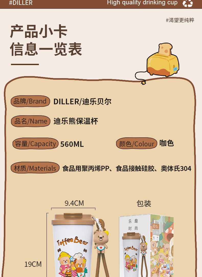 商品名称:迪乐贝尔新品小熊系列水杯学生高颜值咖啡杯办公室吸管杯304不锈钢办公室女士花茶杯