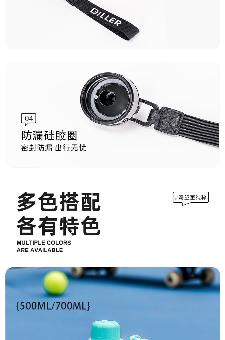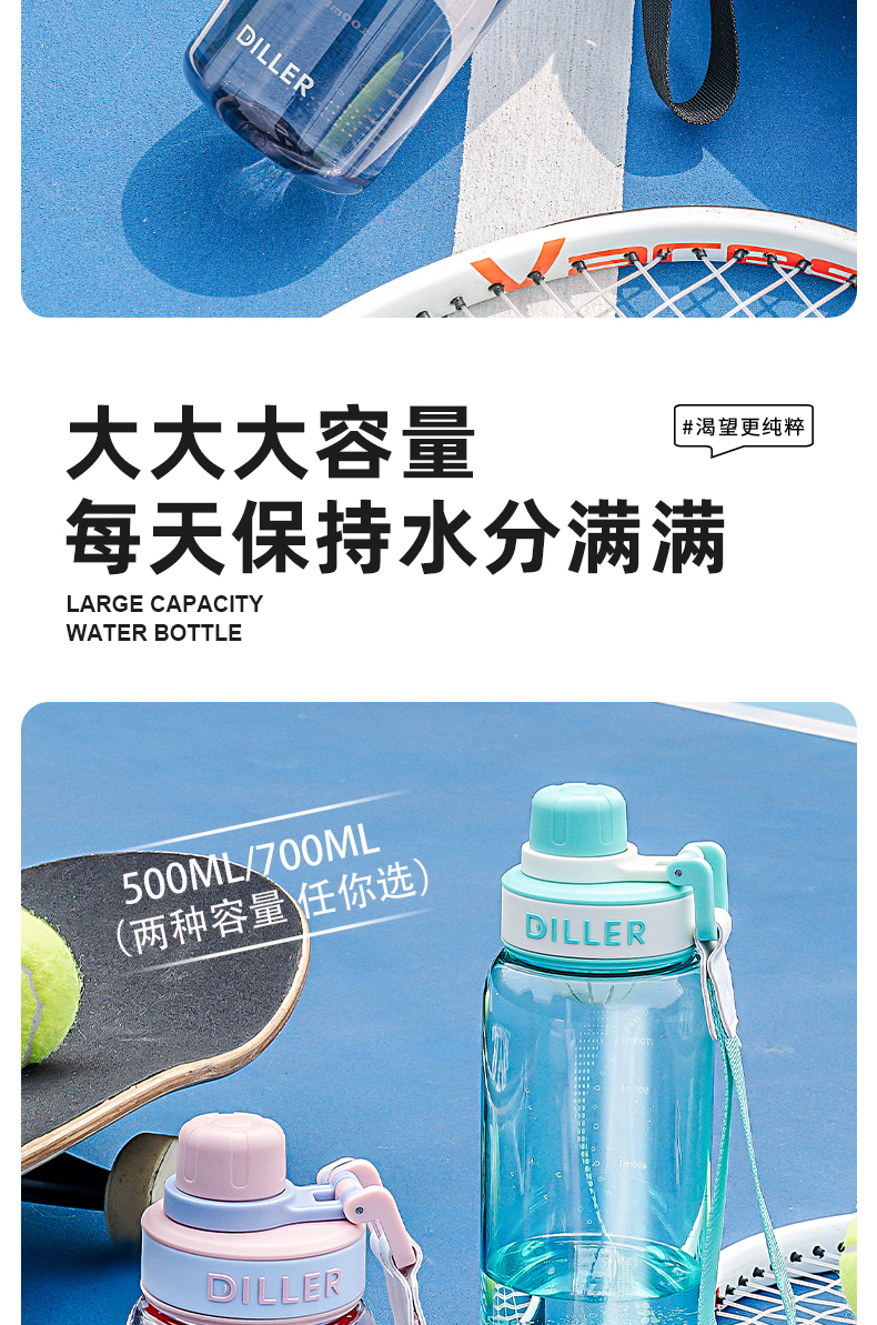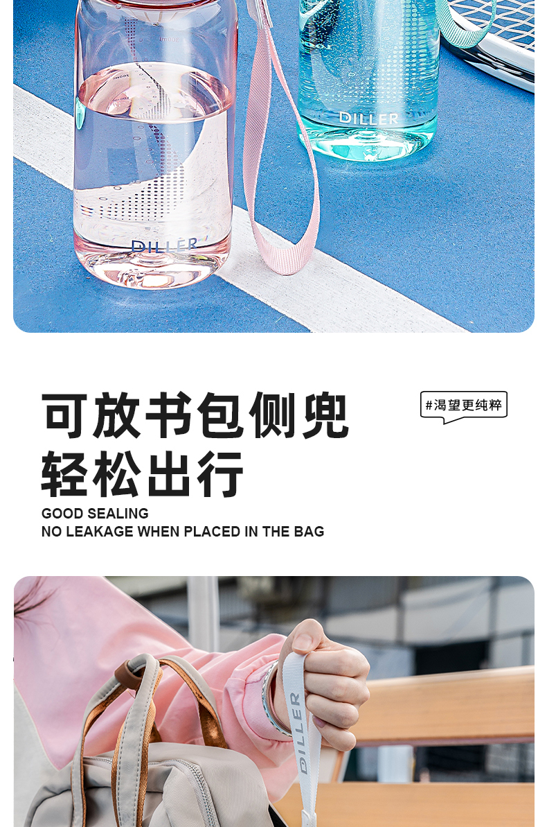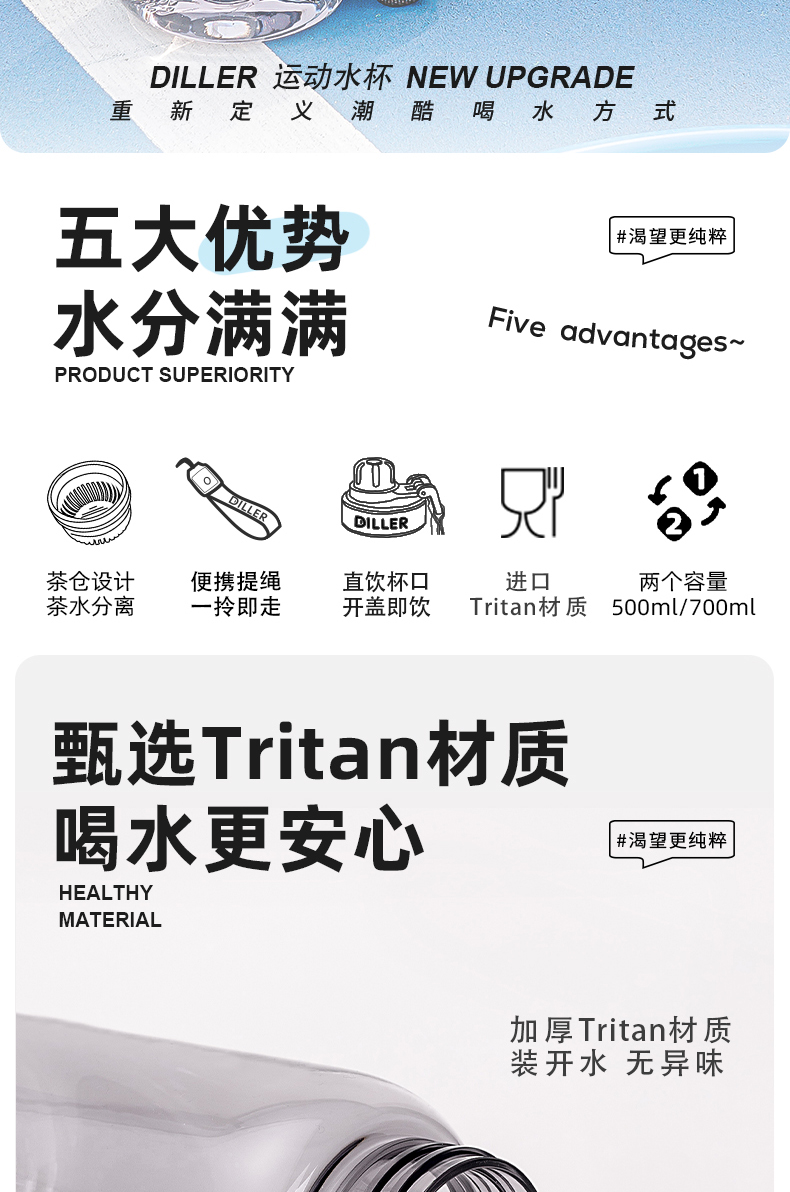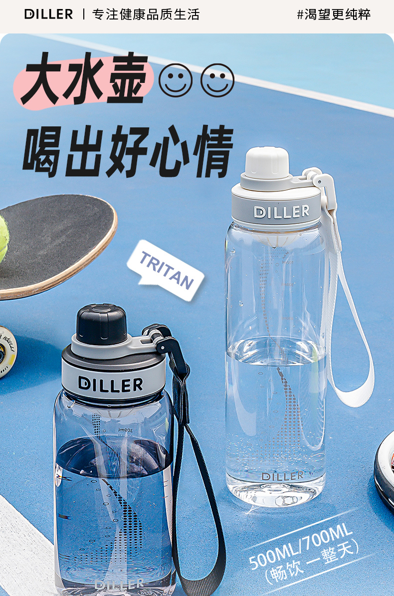 迪乐贝尔新品带茶漏直饮杯成人水杯tritan水壶女士花茶杯户外运动塑料杯学生杯子700ML