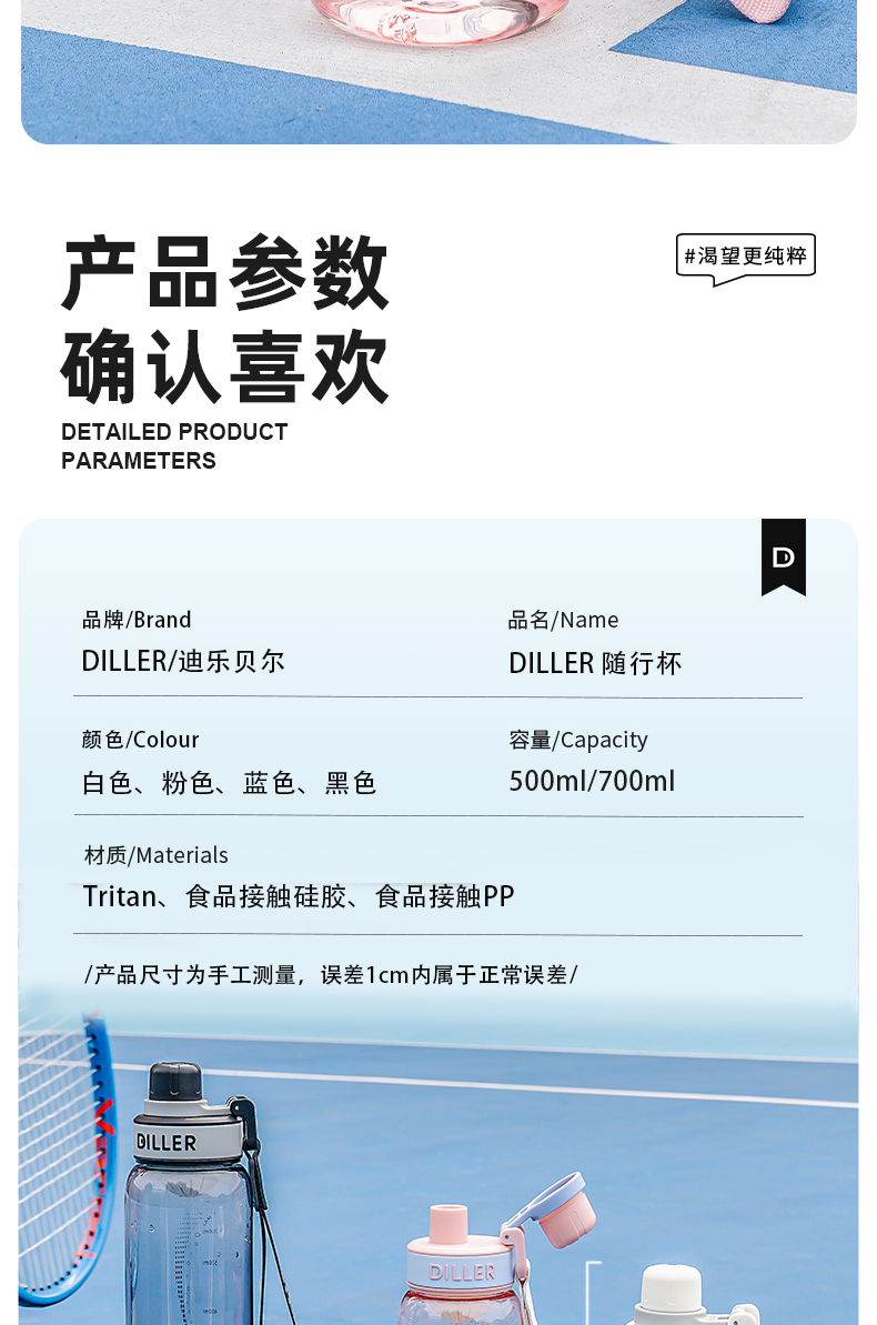 商品名称:迪乐贝尔新品带茶漏直饮杯成人水杯tritan水壶女士花茶杯户外运动塑料杯学生杯子700ML