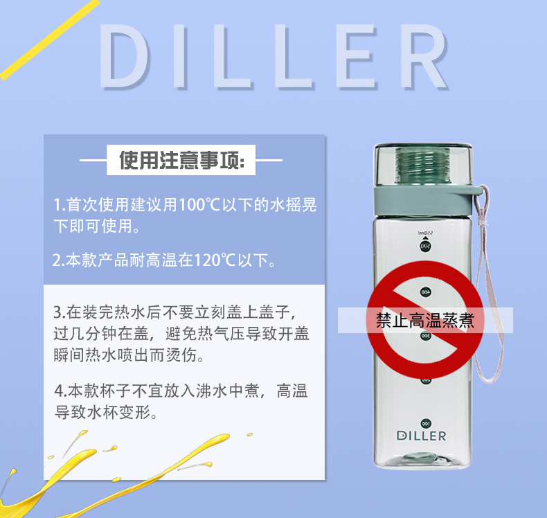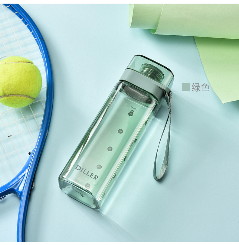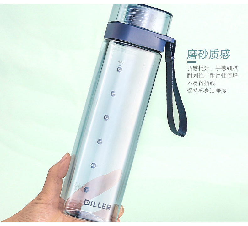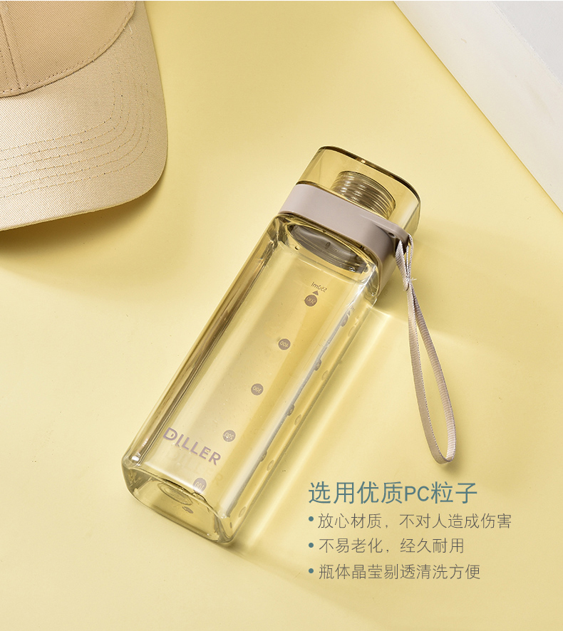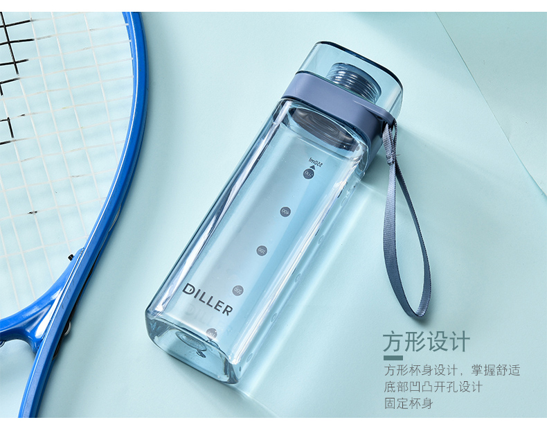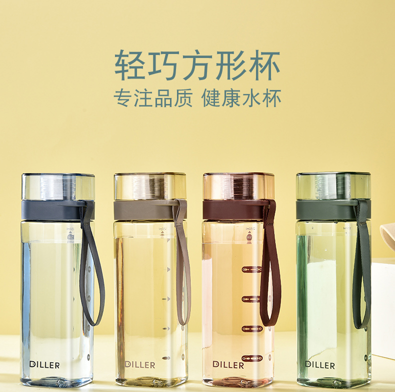 迪乐贝尔/DILLER运动杯水杯方形瓶身塑料杯带刻度喝水杯健身户外学生便携水杯550ML